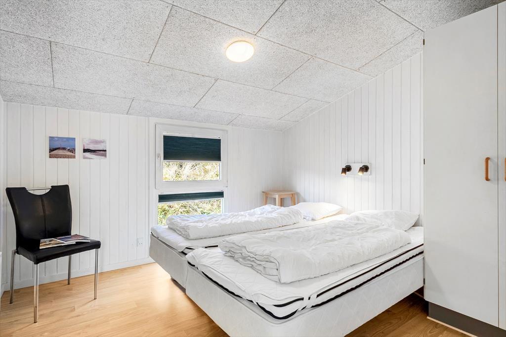 Sommerhus i Houvig, Vestjylland, med plads til 8 voksne og 2 husdyr. Der er en hyggelig indretning med bl.a. brændeovn, og du finder desuden vaskemaskine, opvaskemaskine og tørretumbler i boligen.