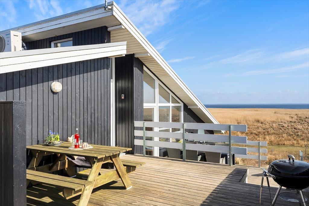 Hyggeligt sommerhus i Houvig med sauna, brændeovn og fjordudsigt tæt på stranden.