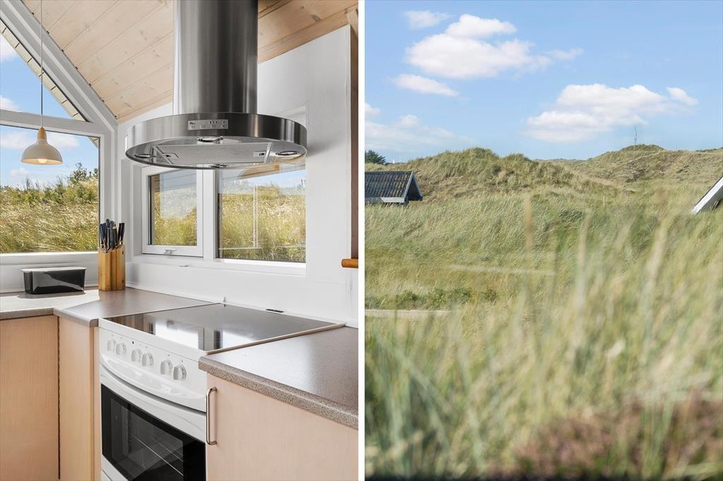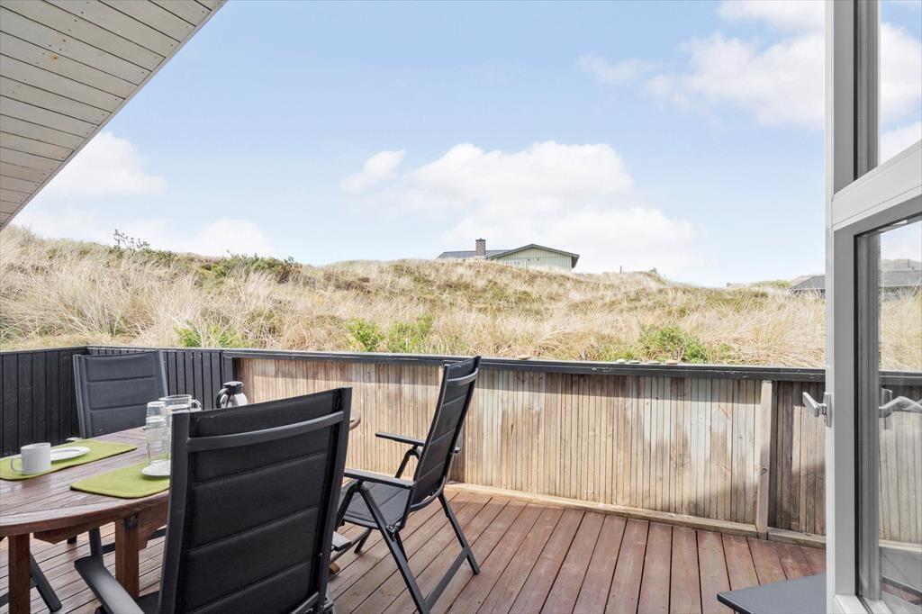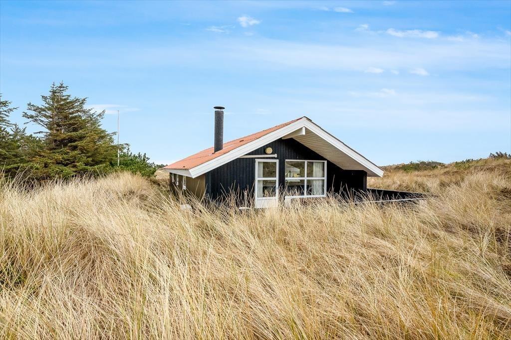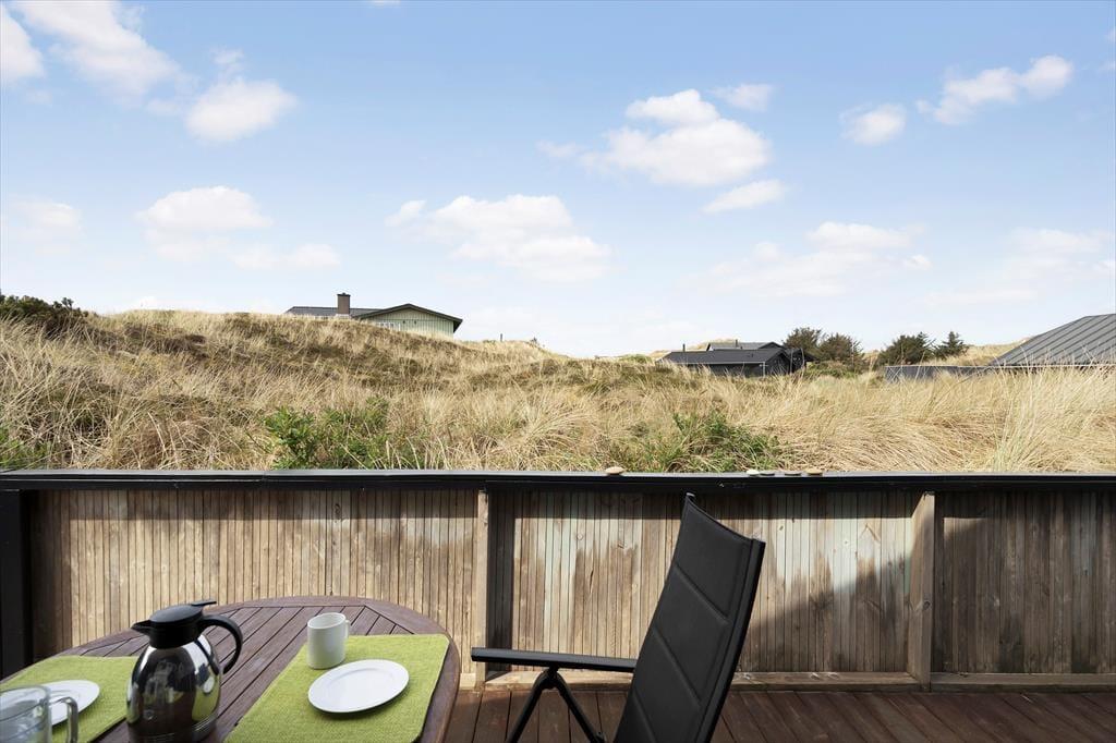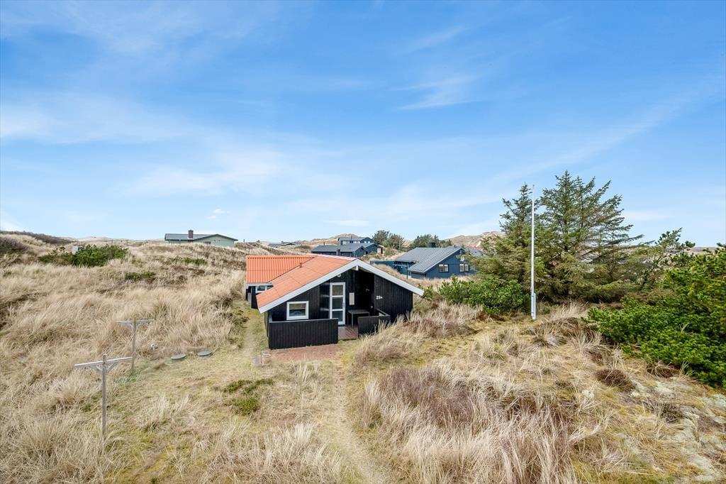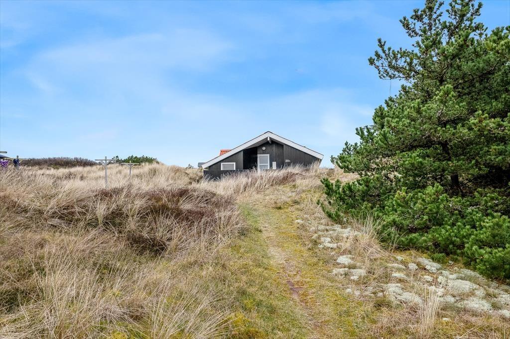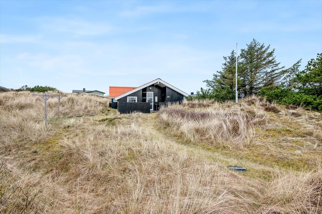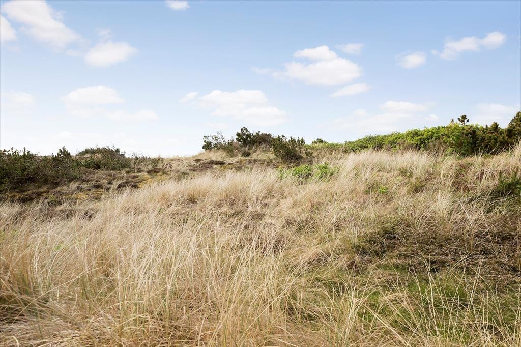 Adressen er skøn, for den kuperede naturgrund ligger dejligt tilbagetrukket på en lille sidevej, og fra grundens parkeringsareal skal du derudover følge en lille sti for at komme helt op til sommerhuset. Selvom huset ligger højt, er klitterne med til at skærme af og give læ, så udearealerne føles ugenerede, selvom du samtidig har udsyn over området. Der er terrasse på begge sider af huset, så hvis du både vil drikke morgenkaffe i solen og slutte dagen af med at grille under åben himmel, kan det sagtens lade sig gøre.