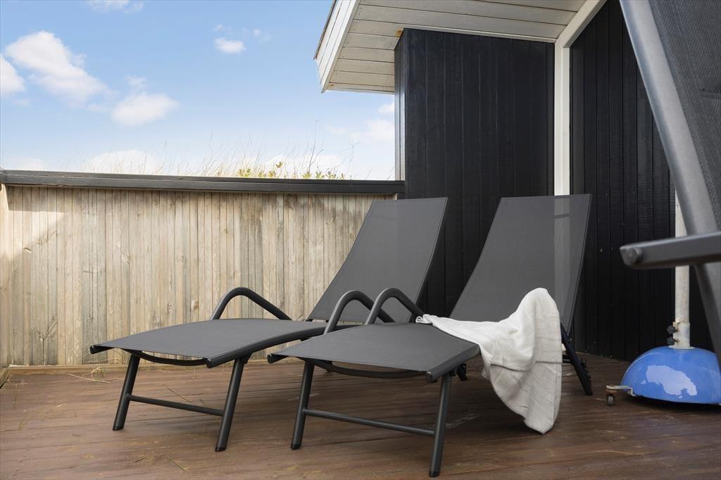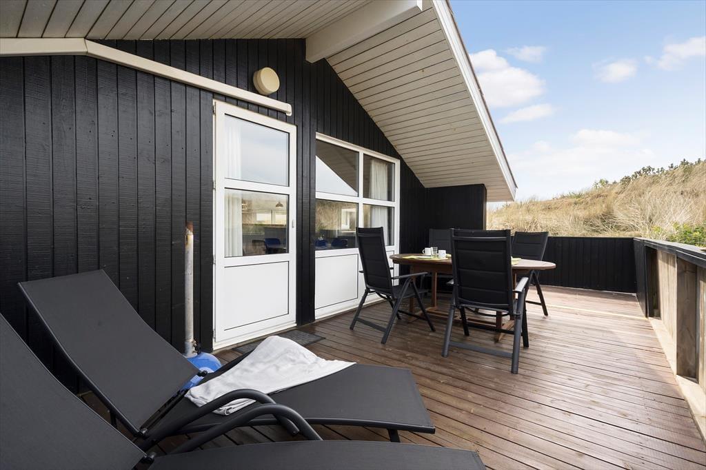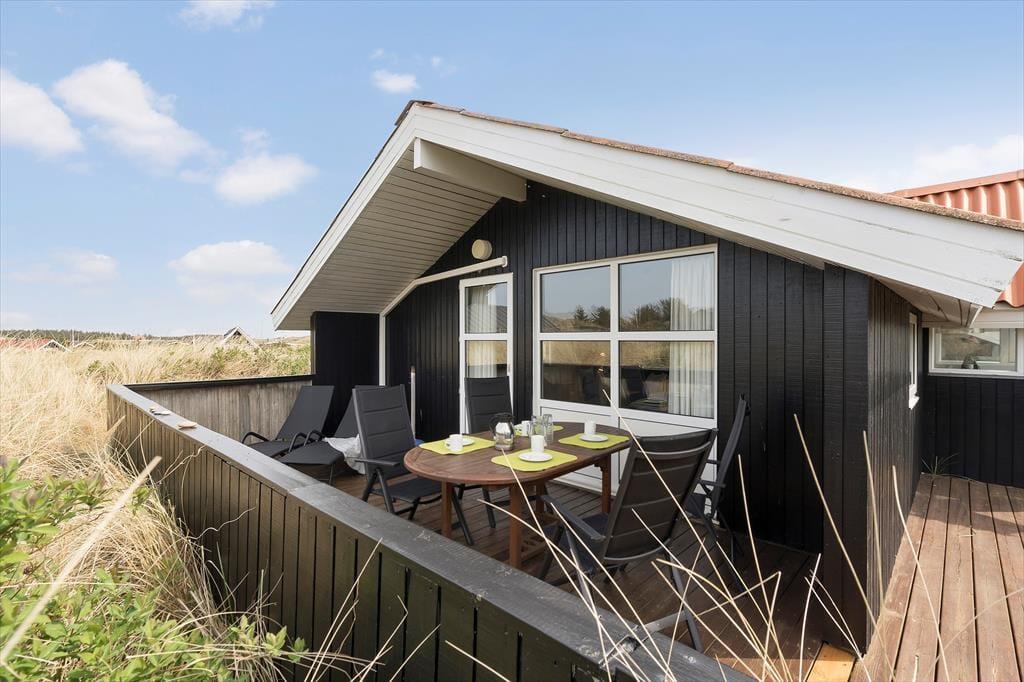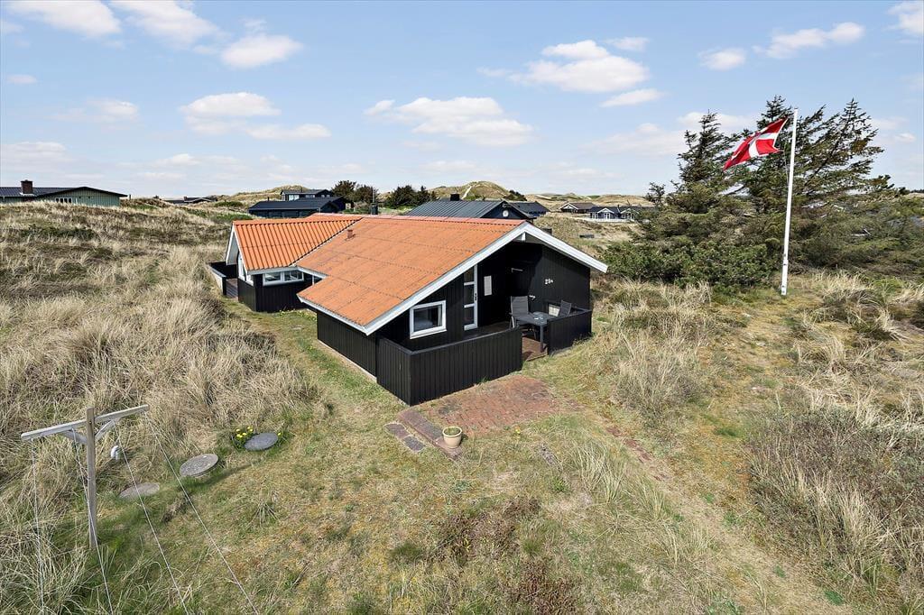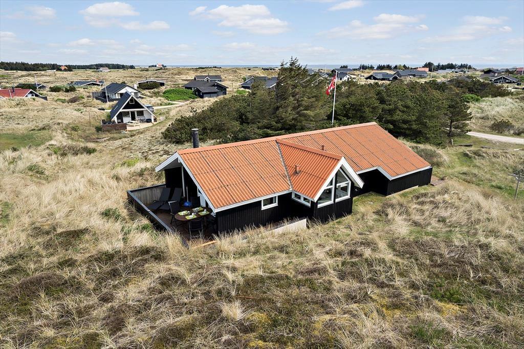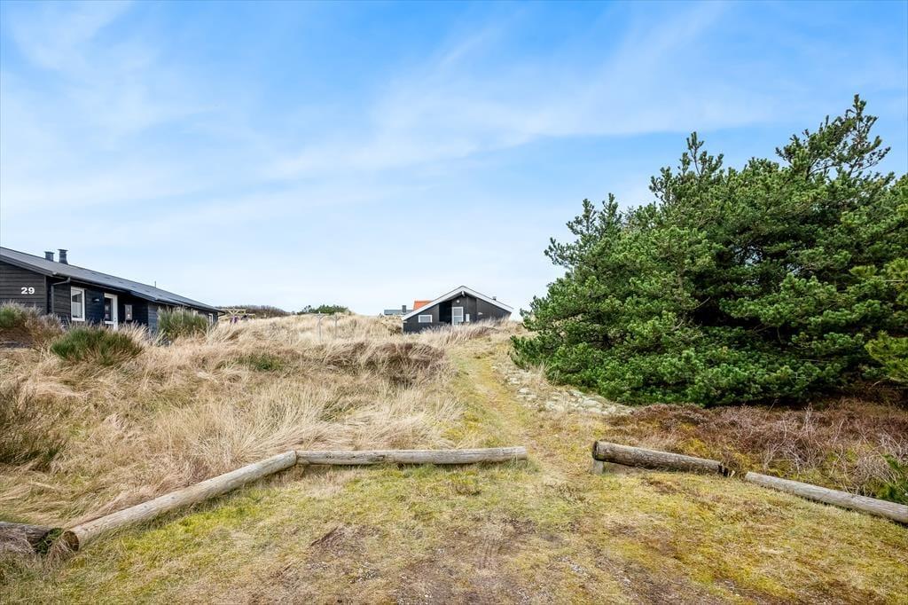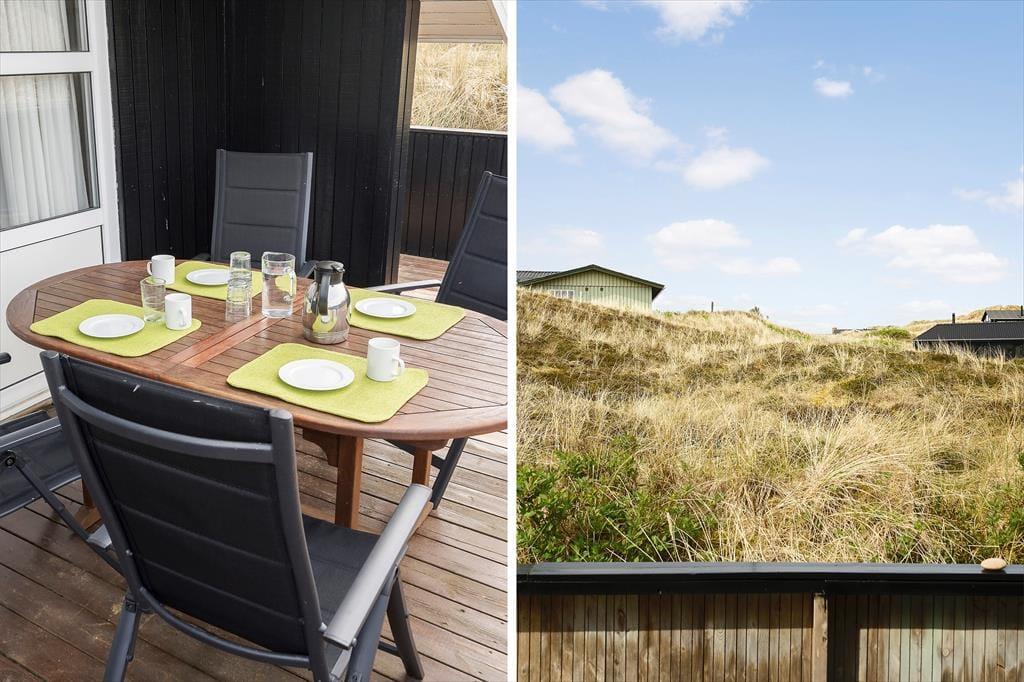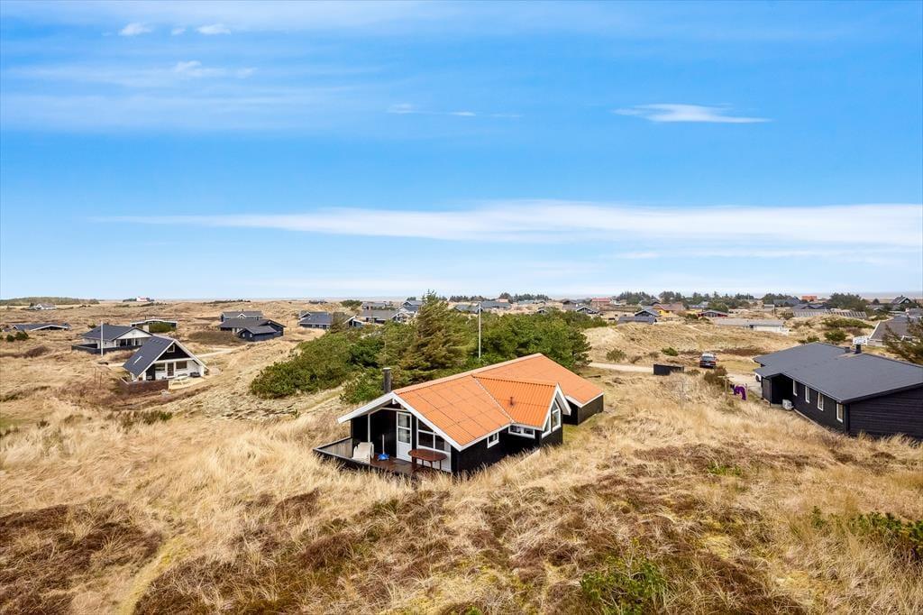 Adressen er skøn, for den kuperede naturgrund ligger dejligt tilbagetrukket på en lille sidevej, og fra grundens parkeringsareal skal du derudover følge en lille sti for at komme helt op til sommerhuset. Selvom huset ligger højt, er klitterne med til at skærme af og give læ, så udearealerne føles ugenerede, selvom du samtidig har udsyn over området. Der er terrasse på begge sider af huset, så hvis du både vil drikke morgenkaffe i solen og slutte dagen af med at grille under åben himmel, kan det sagtens lade sig gøre.