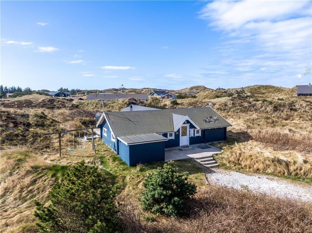 Dette feriehus ligger fredeligt og uforstyrret på fjordsiden i naturskønne Haurvig, og her kan I nyde feriedagene med få skridt til Ringkøbing Fjord. Samtidig har I gåafstand til Vesterhavet, så kort sagt er I omgivet af smuk natur.