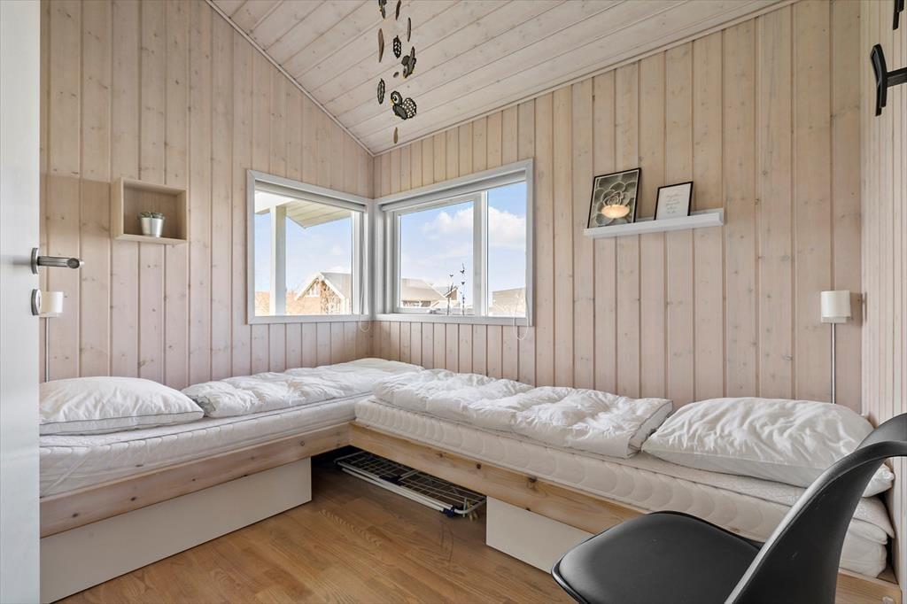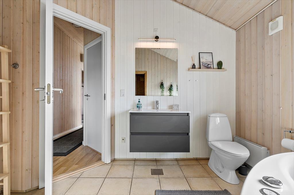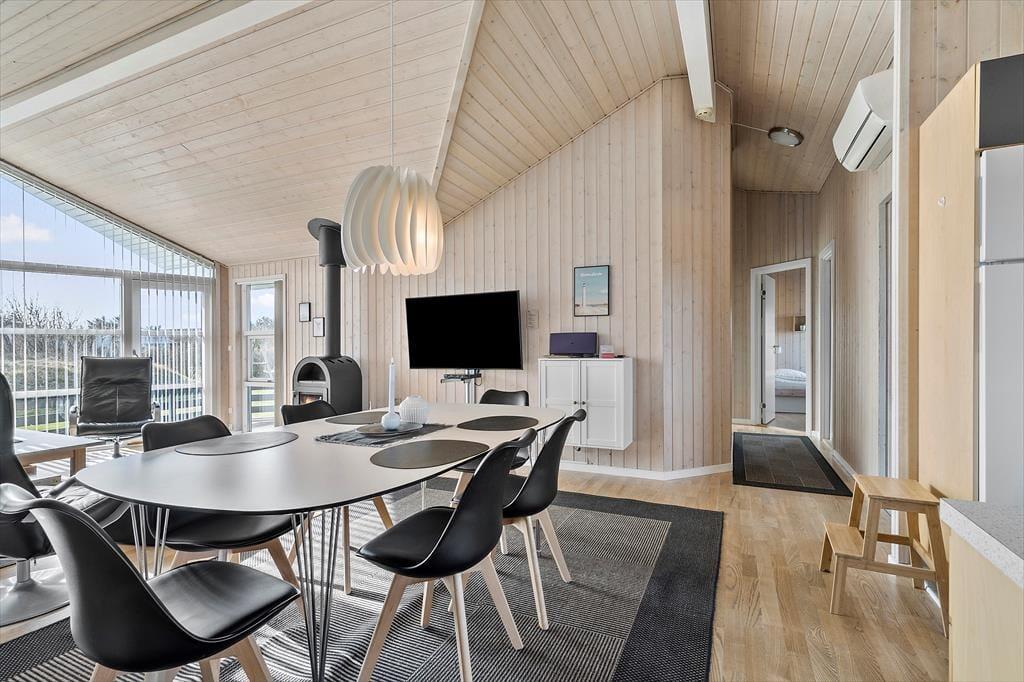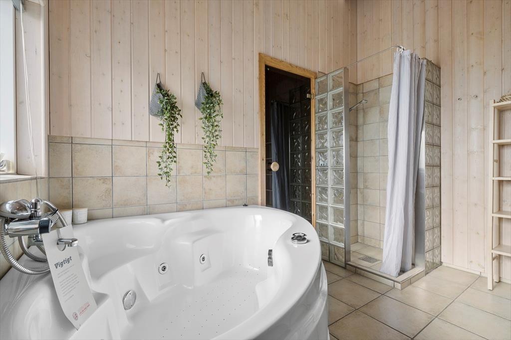 Sommerhuset har en velgennemtænkt indretning, så seks voksne og to børn kan sagtens holde ferie sammen. Tre soveværelser ligger godt fordelt, og i stuen finder I en komfortabel alkove med madras. Derudover er der madrasser på hemsen, så den egner sig også til overnatning eller som børnenes privat hyggekrog i løbet af dagen. Hele familien kan samles i stuen, der har et skønt lysindfald, pænt trægulv, brændeovn og andre gode sager – inklusiv et stort fladskærms-tv med parabol, Chromecast og dvd/Blu-Ray-afspiller. I får desuden fine arbejdsforhold i det åbne køkken, og hvis I skal vaske tøj, er der kombivaskemaskine i entréen. Med to skønne badeværelser kommer I formentlig ikke til at stå i kø for at få et brusebad. Dog kan der være rift om det store badeværelse, der er lækkert indrettet med spabad og sauna.