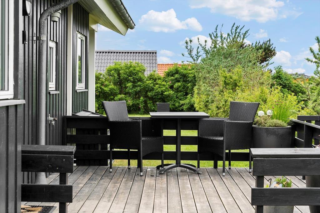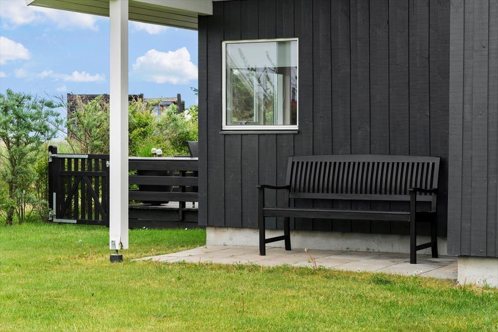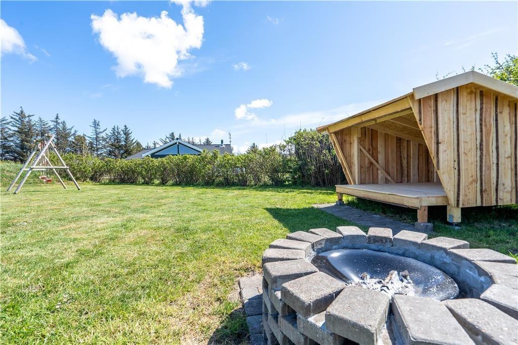 Ude i det fri er der taget hensyn til små børn og hunde, for den store havegrund er helt aflukket med hegn og beplantning. Børnene kan gynge og lege i sandkassen, og hele familien kan spille bold på græsplænen. Om aftenen er det hyggeligt at samles ved bålstedet for at bage snobrød, og naturelskerne kan overnatte i shelteret, der har plads til tre personer – bare husk at medbringe soveposer! På en solrig sommerdag kan driverlivet foregå i havemøblerne på den store sydvendte terrasse eller på den nordvendte morgenterrasse, der har flot udsigt mod Haurvig Kirke.