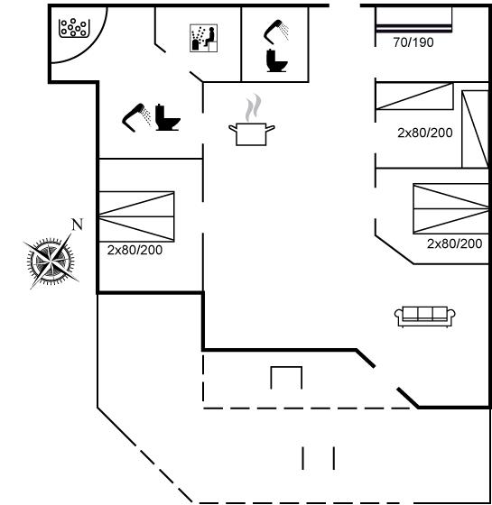 Der er i alt 4 soveværelser. Sovepladserne fordeler sig på: 4 sovepladser i dobbeltsenge. 2 sovepladser i enkeltsenge. 2 sovepladser i køjeseng.