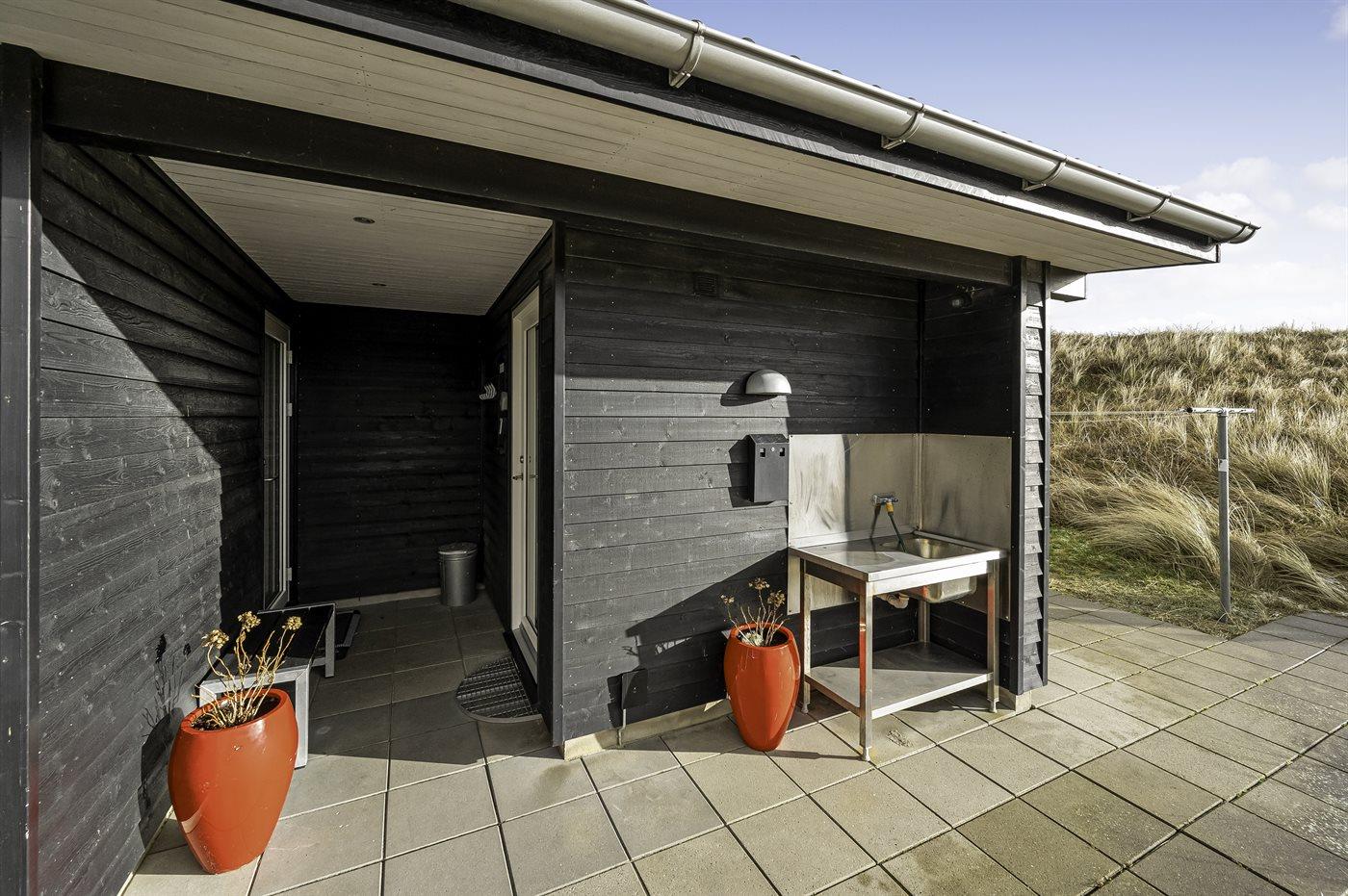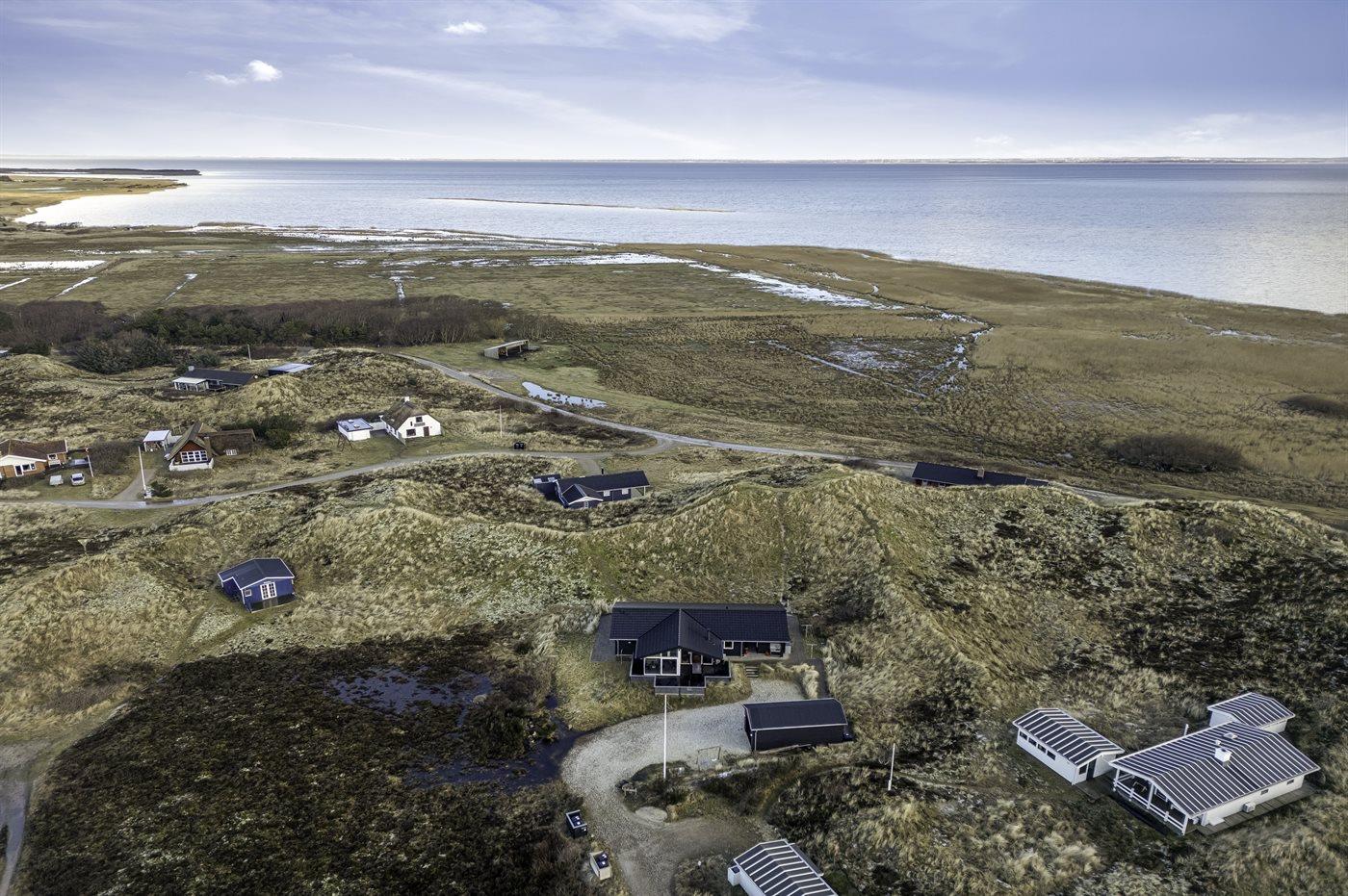 Udenfor: klitgrund på 2200 m2., p-plads på grunden med 4 parkeringspladser, sandkasse samt fiskerenseplads med bord og rindende vand.