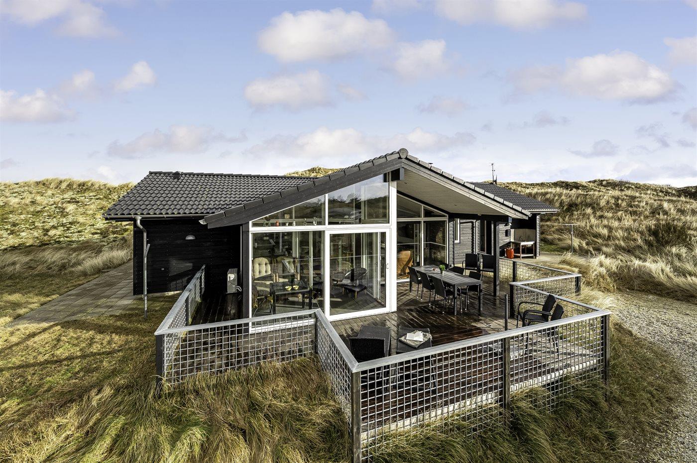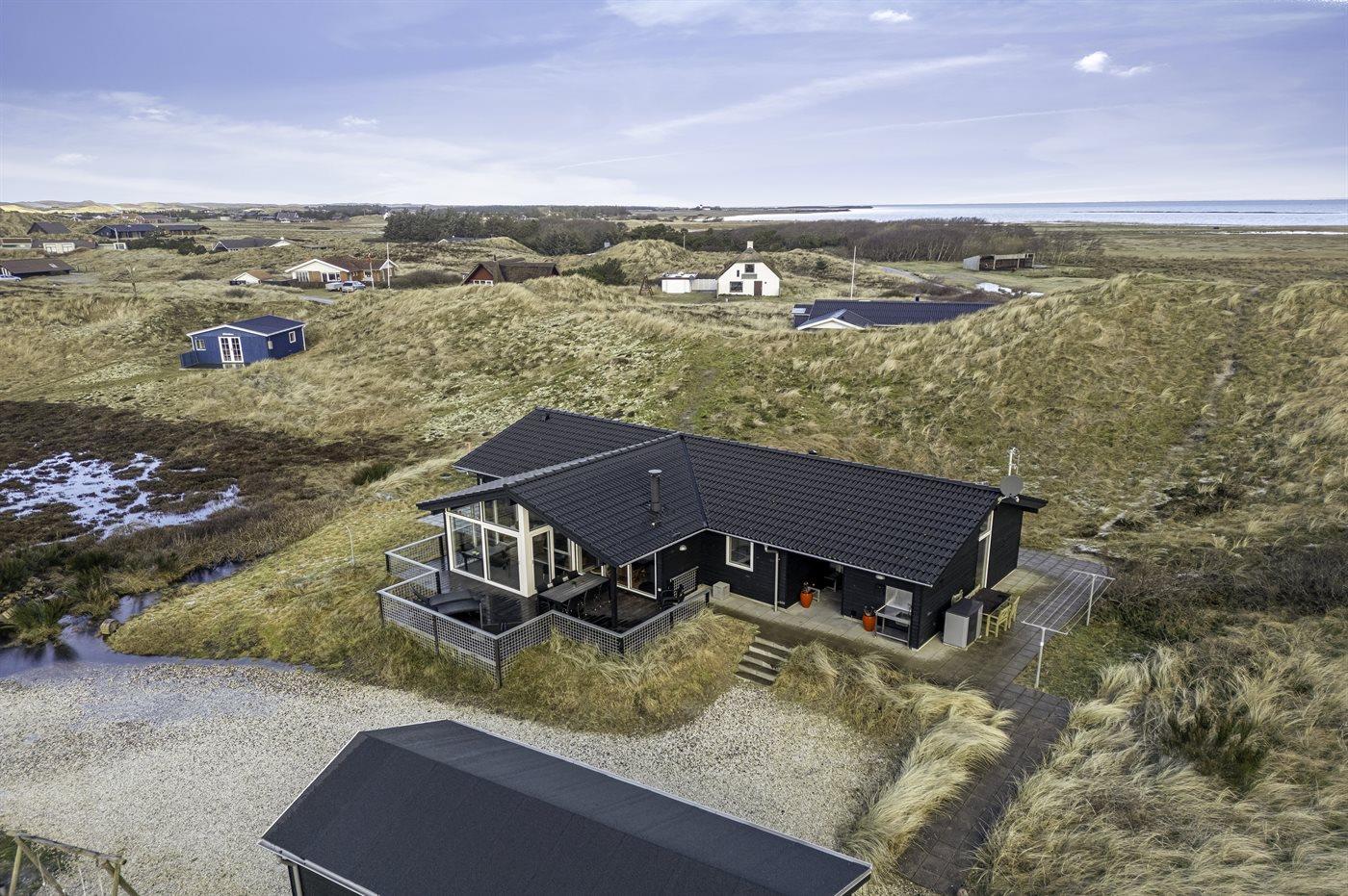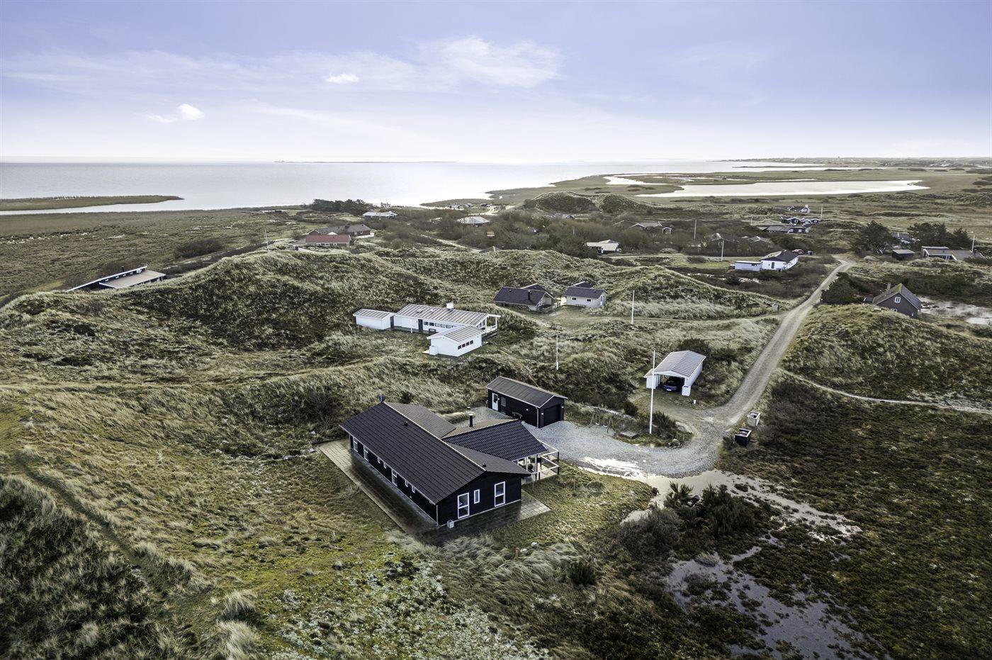 Dette feriehus ligger på Tornbjerrevej i Haurvig, på en skøn naturgrund mellem hav og fjord og med udsigt fra grunden til Ringkøbing Fjord og lyngbeklædte klitter. Der er sågar egen klit lige i "baghaven". Et hus med flot og moderne indretning. Vægge og lofter er hvidmalede, og sammen med de store vinduer skabes en indbydende og lys atmosfære i huset.
