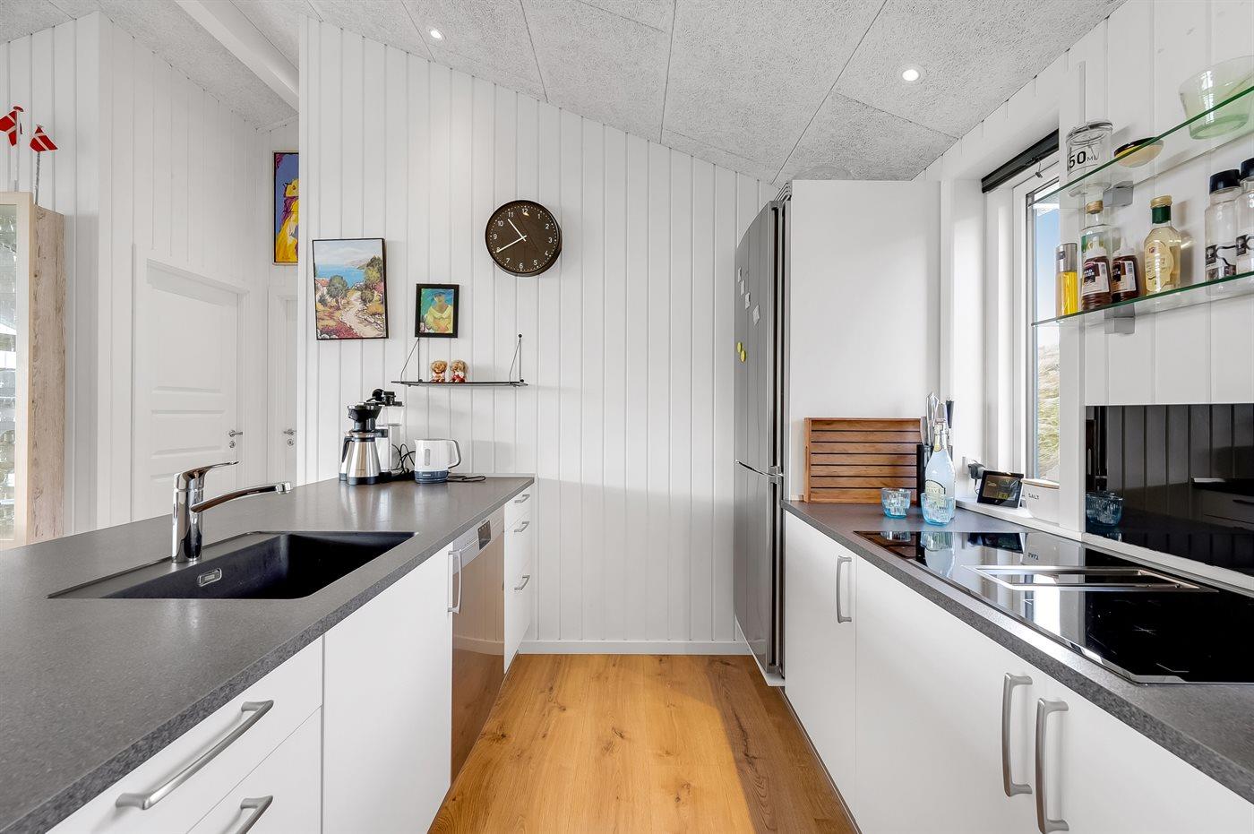 Hårde hvidevarer: induktionskogeplade, køleskab, mikroovn, opvaskemaskine samt vaskemaskine, tørretumbler og støvsuger.