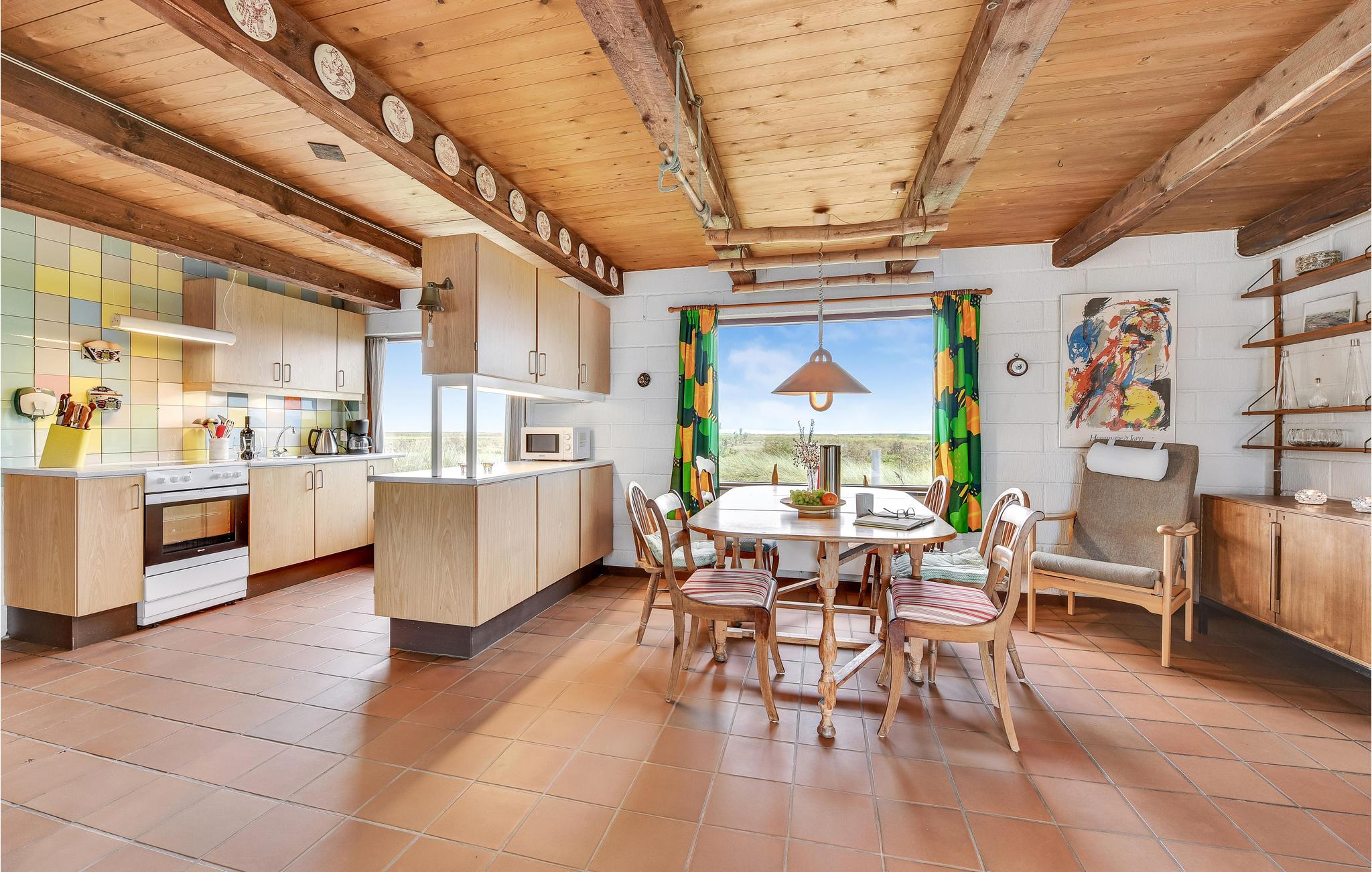 Tilbring en dejlig ferie i dette indbydende sommerhus, som er komfortabelt og smagfuldt indrettet. Her får I derfor optimale rammer om nogle afslappende dage - med den smukke udsigt som en fantastisk kulisse. På kølige dage og aftener kan I finde jer til foran brændeovnen og læne jer tilbage til lyden af de knitrende flammer.
