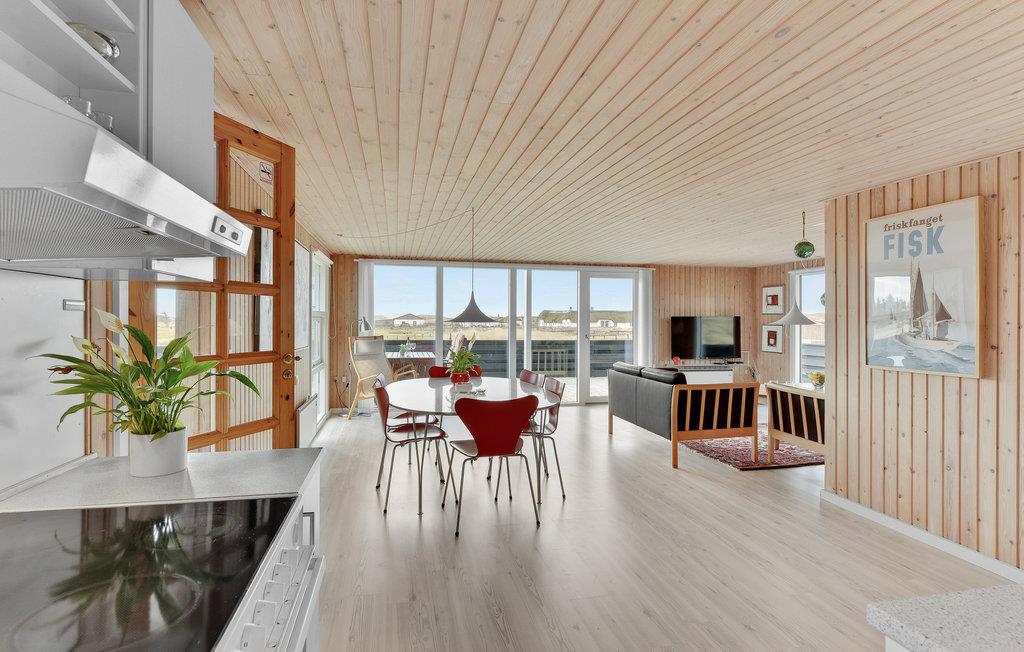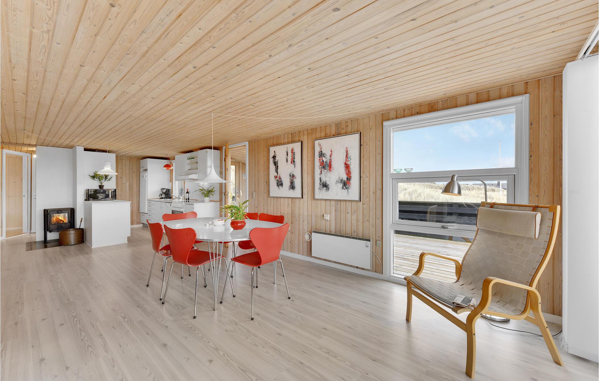 Vil I gerne holde en rigtig sommerhusferie i familen, er dette dejlige feirehus, som er er bygget af træ og praktsik indrettet, et rigtig godt sted at tage hen. Det veludstyrede køkken ligger i åben forbindelse med stuen, hvor I kan slappe af og nyde ferien med en god film, eller et gammeldags brætspil. Terrassen er indhegnet og indbyder til mange timer i den friske havluft, og vil I spise lokalt, så køb frisk fisk på havnen og tilbered den på husets grill. Sommerhuset ligger flot placeret i klitlandskaber, og ophold i de udendørs omgivelser giver en skøn følelse af frihed og luft omkring sig. Besøg desuden de hyggelige byer som Hvide Sande, Nymindegab eller Nørre Nebel, hvis ikke Ringkøbing Fjords sjove vandsportsaktiviteter er nok for jer.