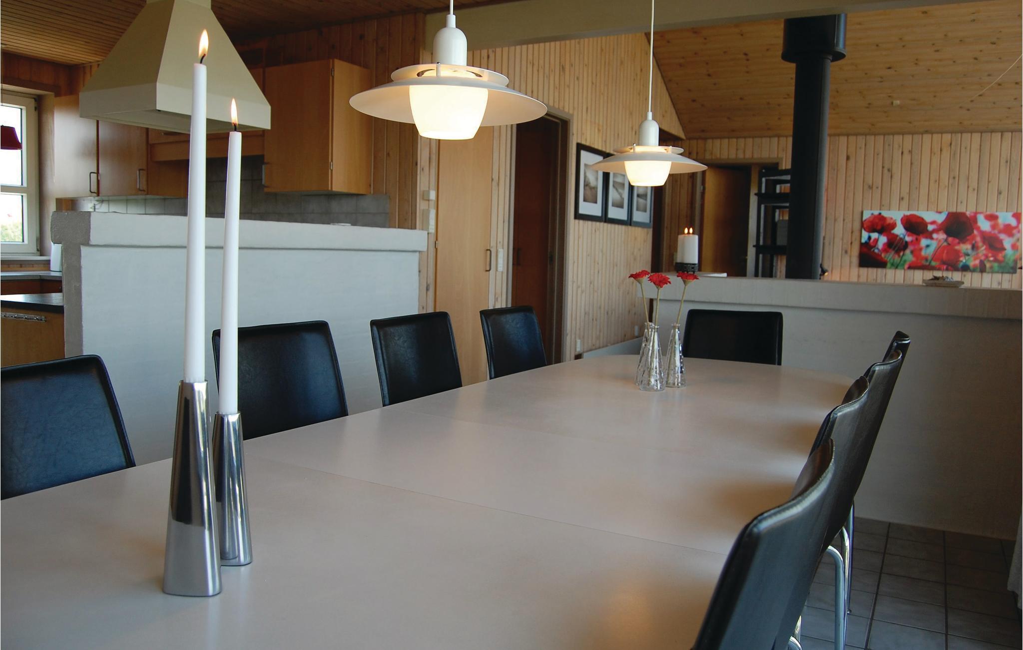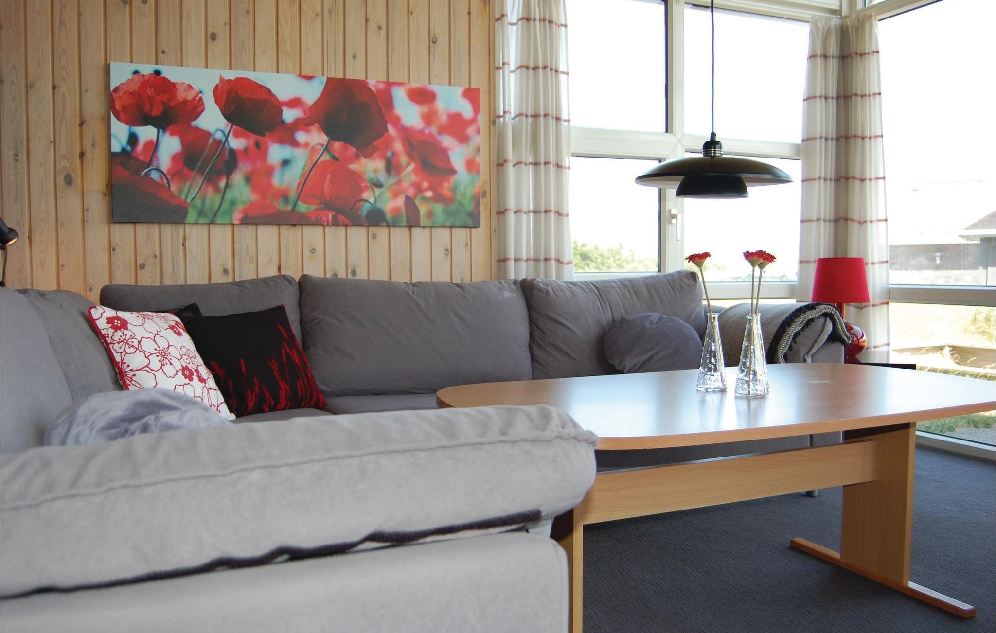 Et dejligt sommerhus af mursten og med store åbne terrasser, hvor I kan nyde solen hele dagen. I stuen sørger de store vinduer, fra gulv til kip mod øst for et skønt lysindfald. Der er en stor badeafdeling, naturligvis med gulvvarme, hvor der er indrettet spabad og der er indgang til sauna. Huset ligger centralt mellem Vesterhavet og Ringkøbing Fjord, som altid er et besøg værd, uanset årstiden. Den aktive fiskerby, Hvide Sande, ligger blot få minutters kørsel mod nord, og her finder I, udover det hyggelige havnemiljø også både restauranter, museum, cafeer og forskellige forretninger.