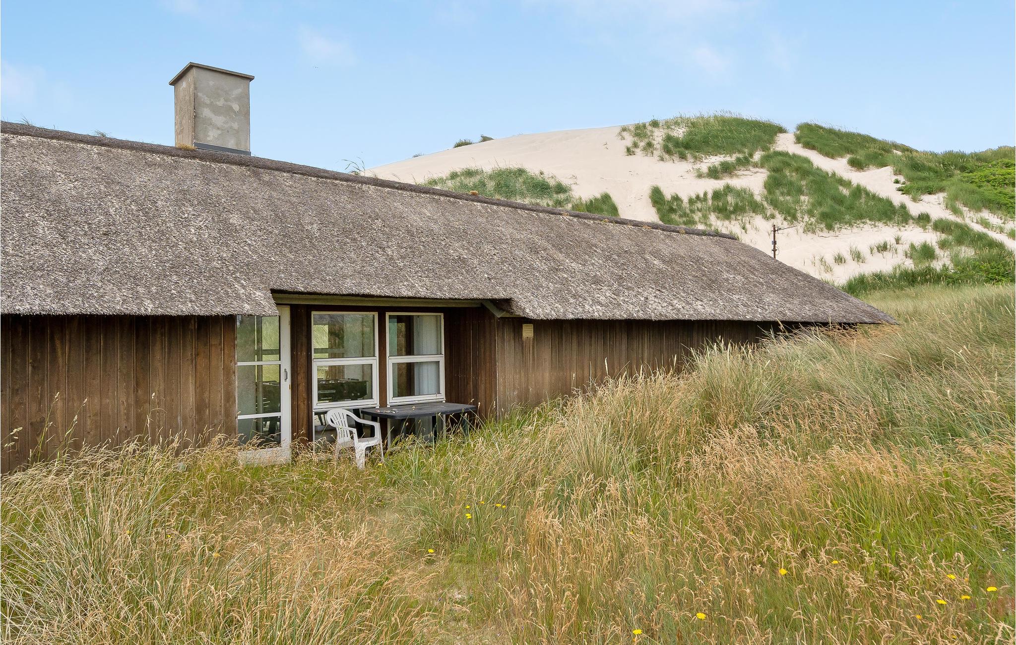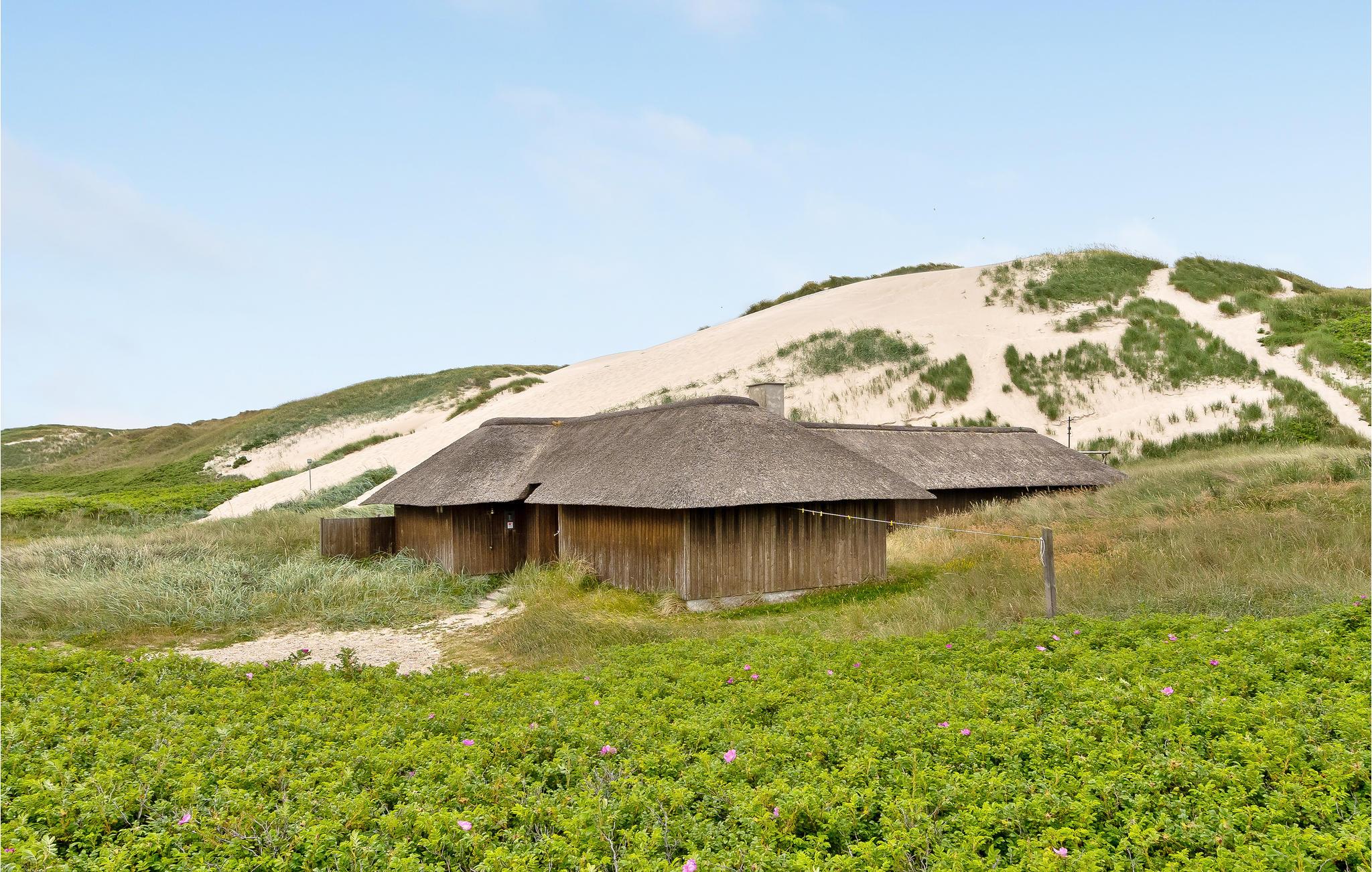Det ligger i første klitrække ved Vesterhavet. Det er indrettet i to afdelinger, hver med to soverum og eget badeværelse samt en hems med yderligere to sovepladser. Husets indretning med synlige loftsbjælker og stengulv får det til at fremtræde rustikt. Udenfor er der læfyldte flere terrasser.