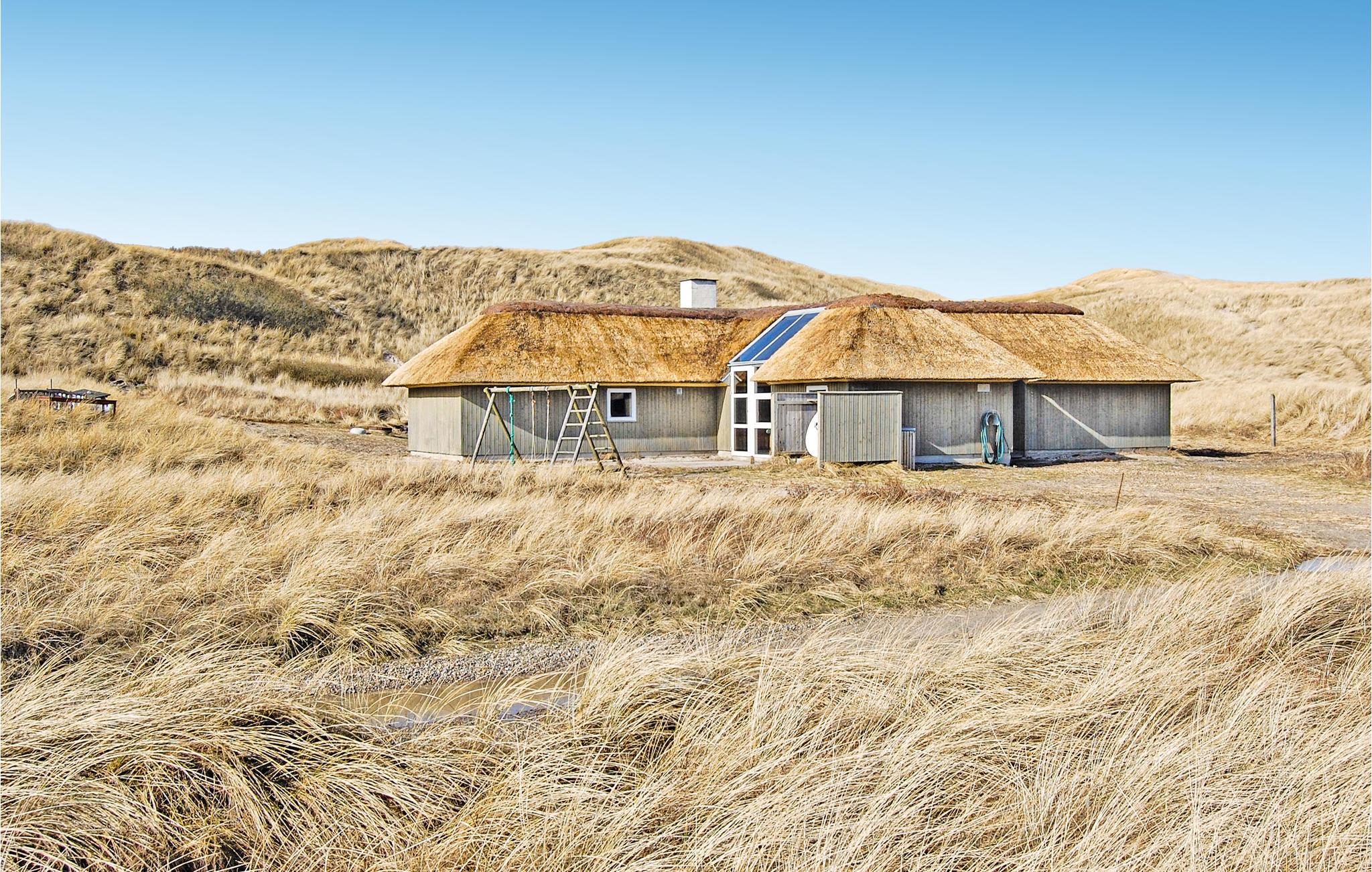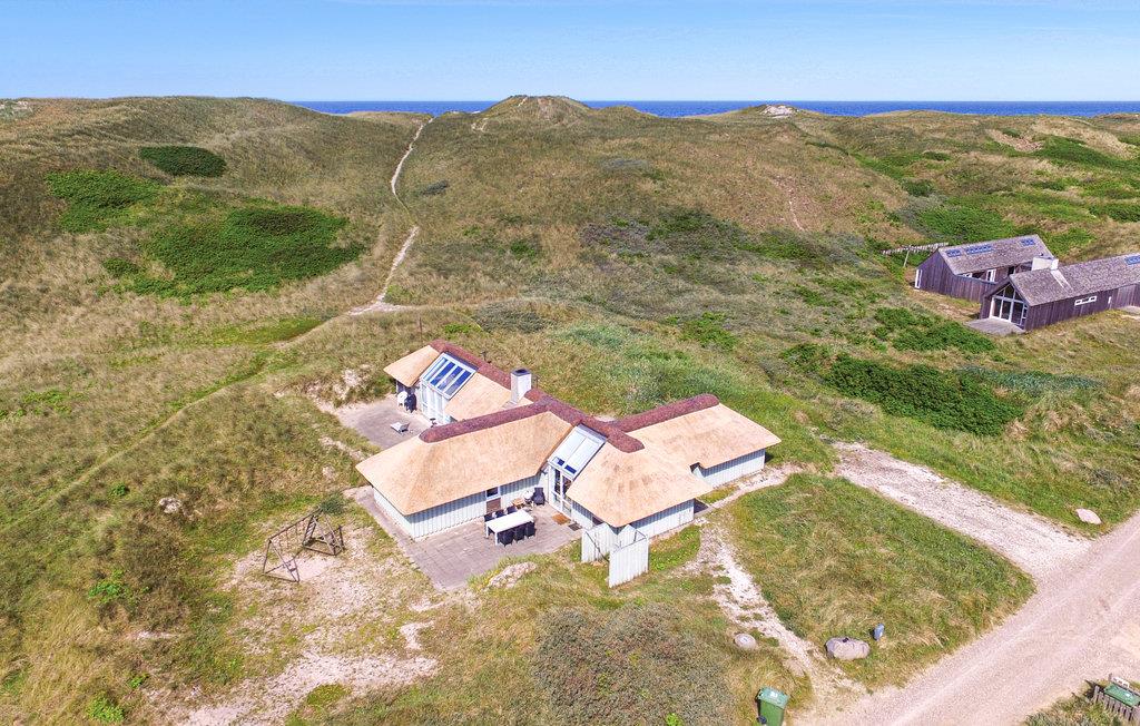 Pragtfuldt sommerhus i klitrækken ved Vesterhavet med pool, sauna og store terrasser tæt på stranden.