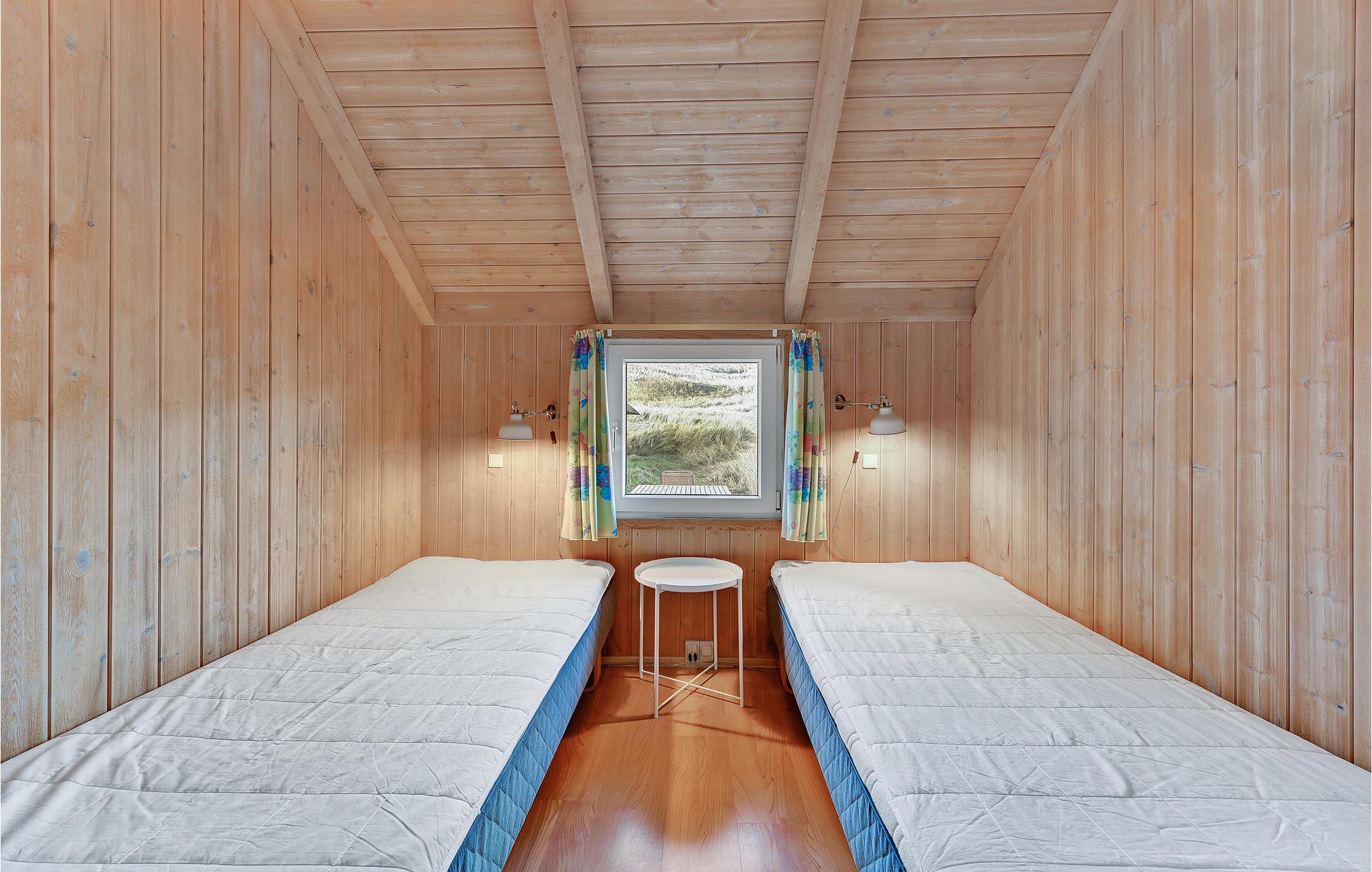 I den yderste klitrække, kun 75 m fra Vesterhavet, ligger dette pragtfulde sommerhus med indendørs swimmingpool og sauna. Husets samlingspunkt er det skønne køkken, der er i åben forbindelse med spisestuen og den store opholdsstue med tv, brændeovn og flotte bjælkelofter. De store vinduespartier sørger for et lækkert lysindfald og god udsigt til klitterne. Soveafsnittene er opdelt i to afdelinger med hver et tilhørende badeværelse. I forlængelse af stuen, kun opdelt af et lille glasparti, ligger swimmingpoolen med sauna og egen bruser. Fra både stuen og poolafdelingen er der udgang til dejlige terrasser med havemøbler, hvoraf den ene er indhegnet. Skønne omgivelser og moderne bekvemmeligheder kendetegner dette sommerhus. Nyd at I bare skal over klittoppen for at komme til stranden, hvor I kan nyde dejlige badedage om sommeren og friske lange traveture om efteråret og vinteren.