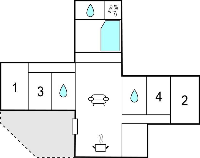 Badeværelse 3m2 (nr. 1) - WC. Varmt og koldt vand. Bruser