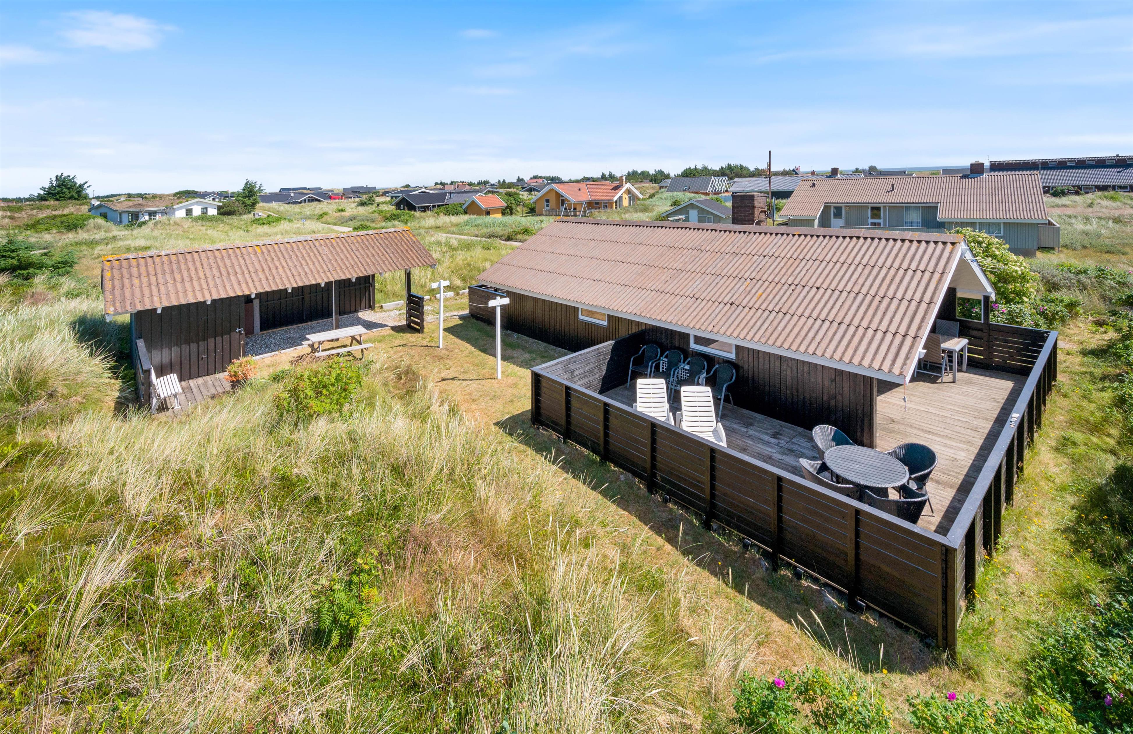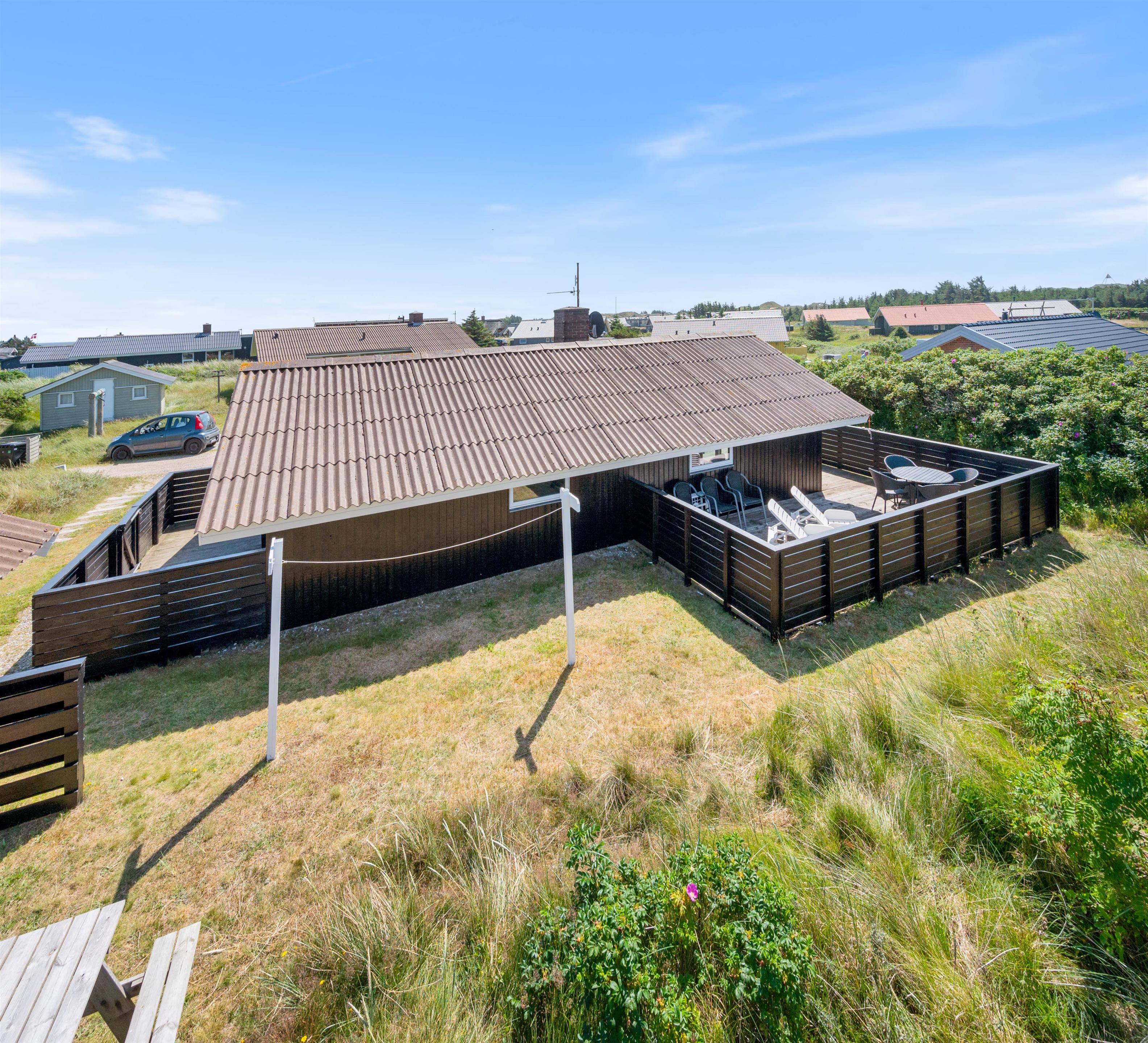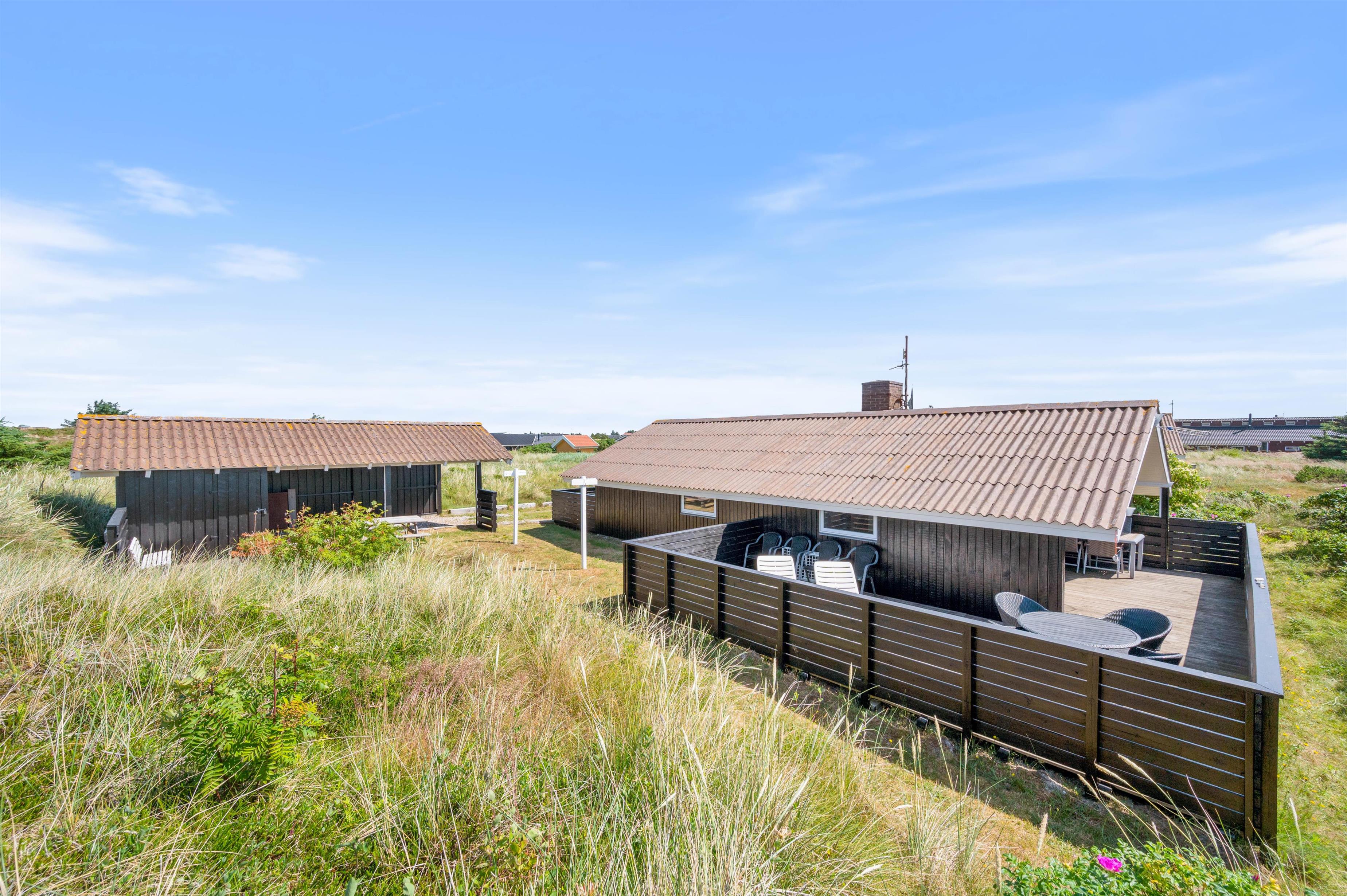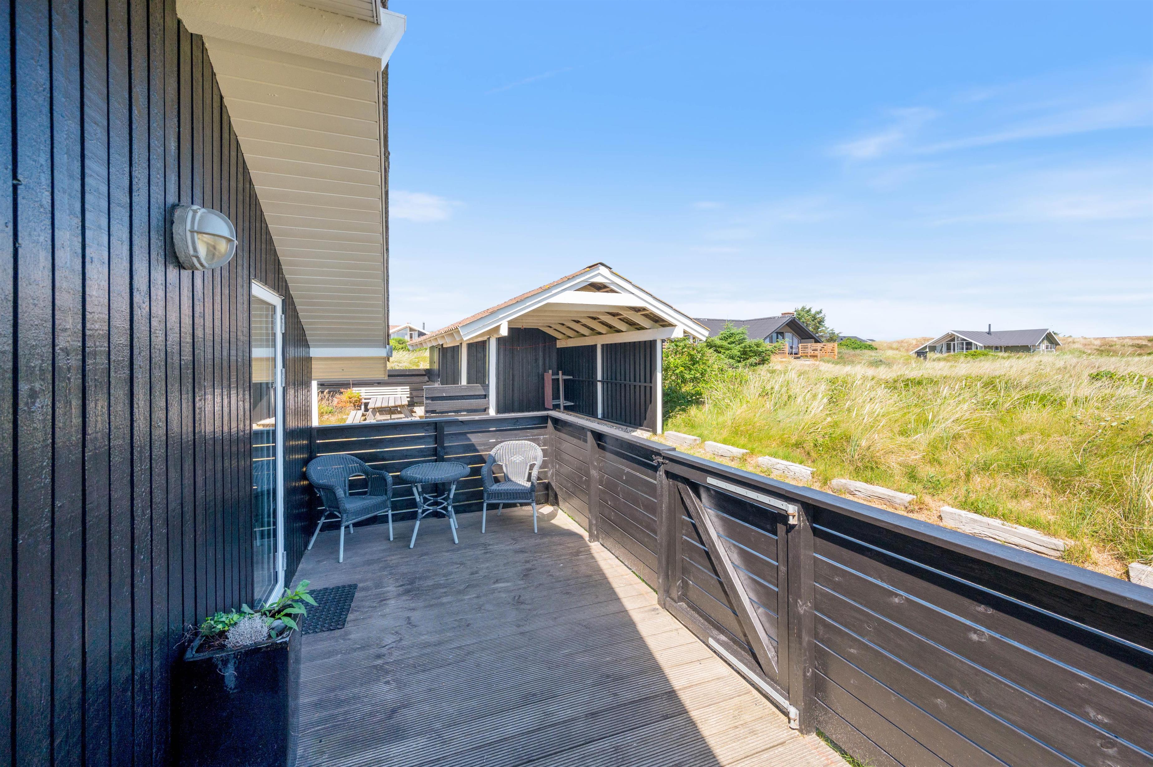 Feriehuset har to helt lukkede terrasser, hvor I kan sidde helt i fred og ro og nyde en lækker middag fra grillen – uden at skulle bekymre jer om, at familiens mindste løber væk – eller at hundene kan smutte væk. En del af den ene terrasse er overdækket. Det er med til at forlænge de dejlige, lyse sommeraftener på terrassen. Samtidig betyder det også, at terrassen ofte kan tages i brug i det tidlige forår.
