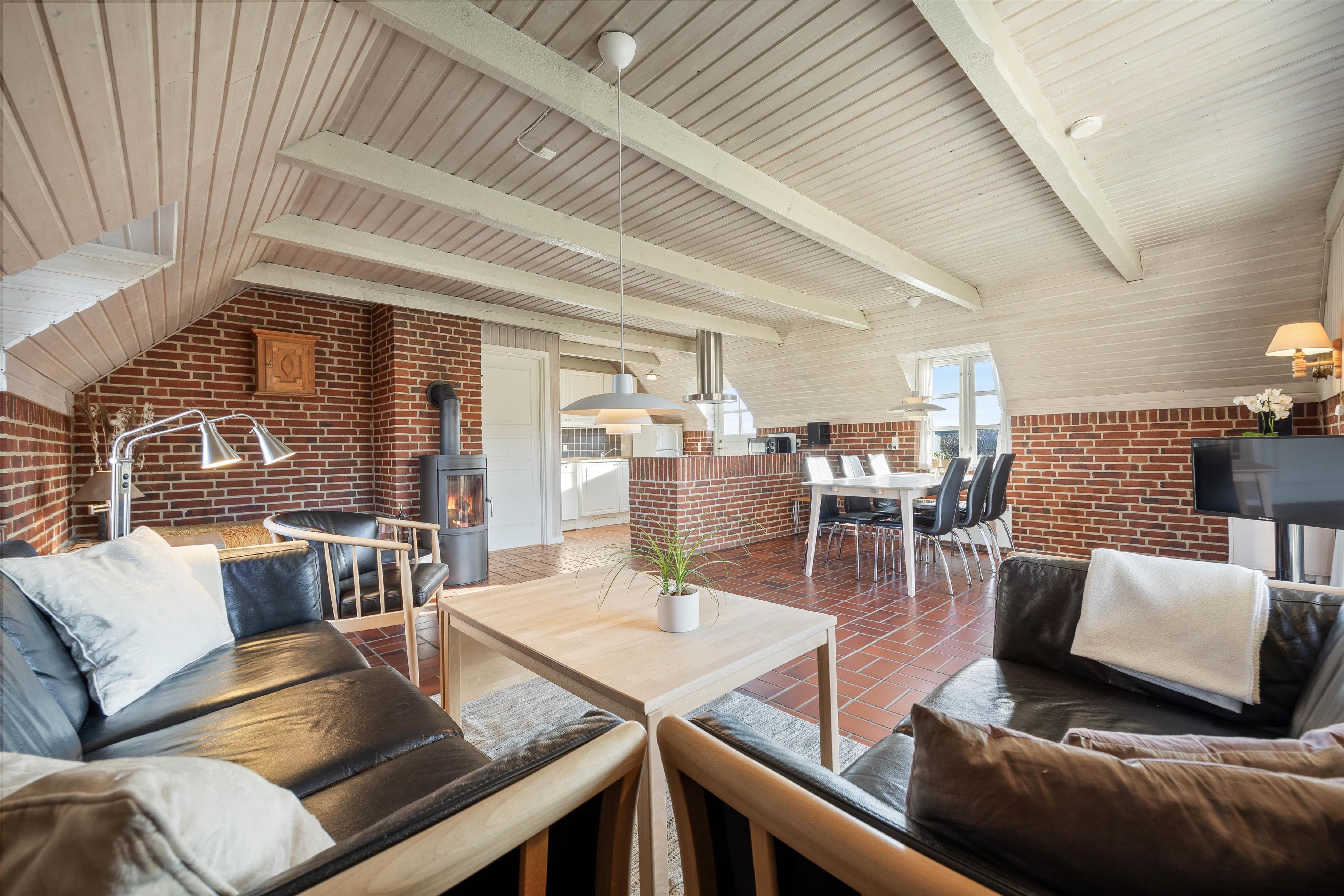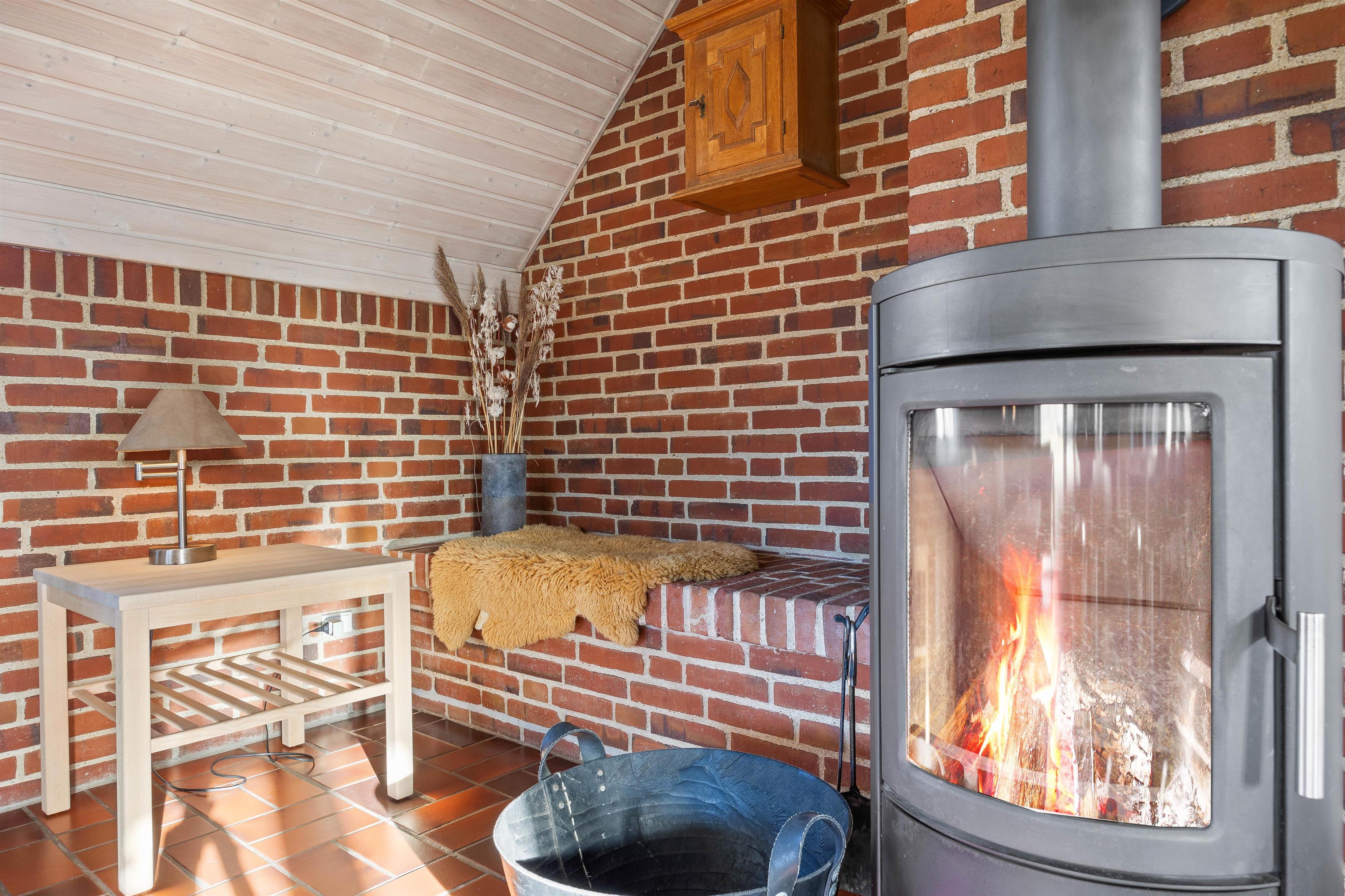 I stuen er der en hyggelig atmosfære med en brændeovn, der spreder varme og en hjemlig følelse på kølige aftener. Ligeså sikrer gulvvarmen på badeværelset en komfortabel oplevelse fra morgenstunden. Efter en lang dag med eventyr og udforskning er saunaen det perfekte sted til afslapning.