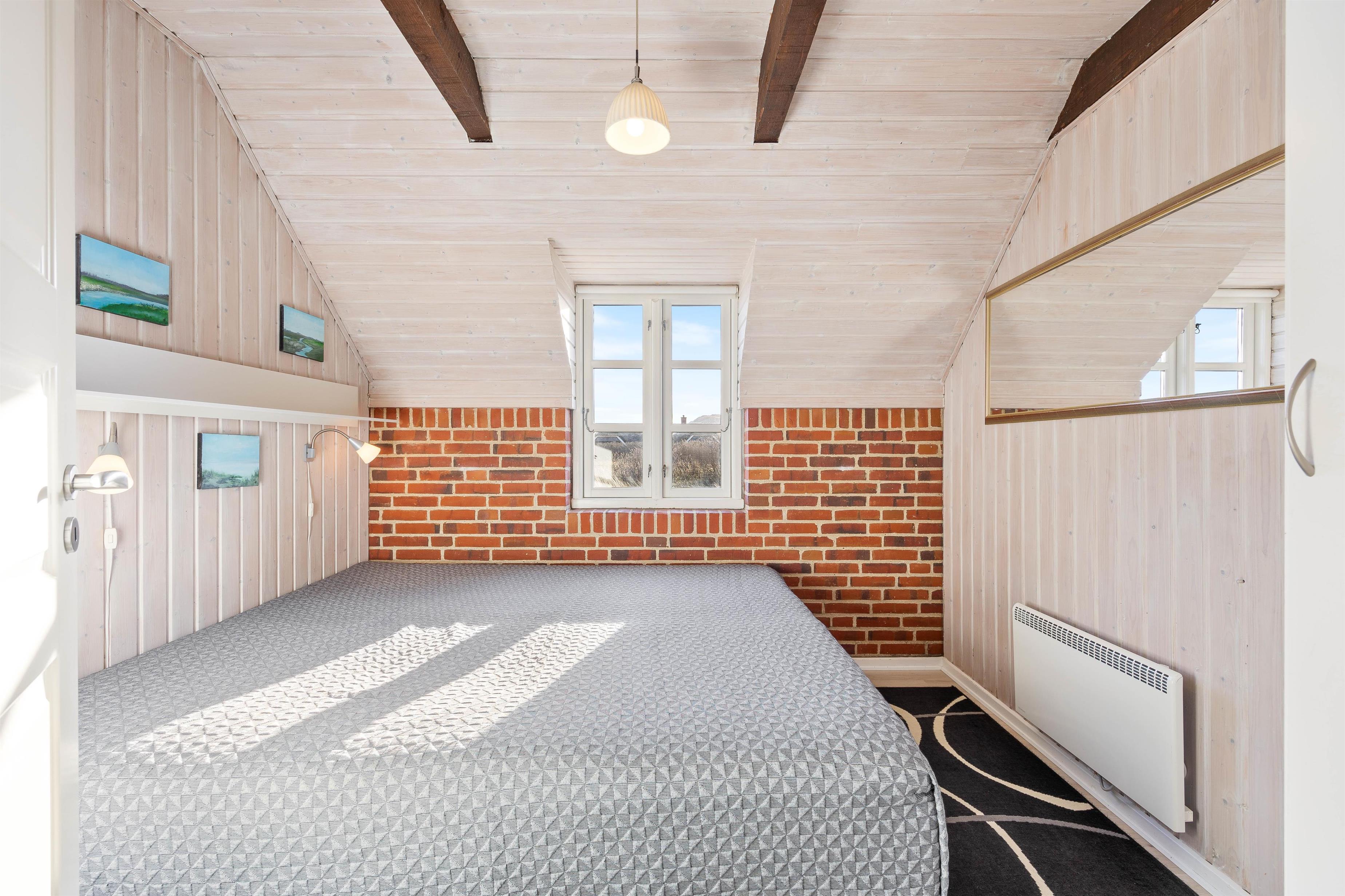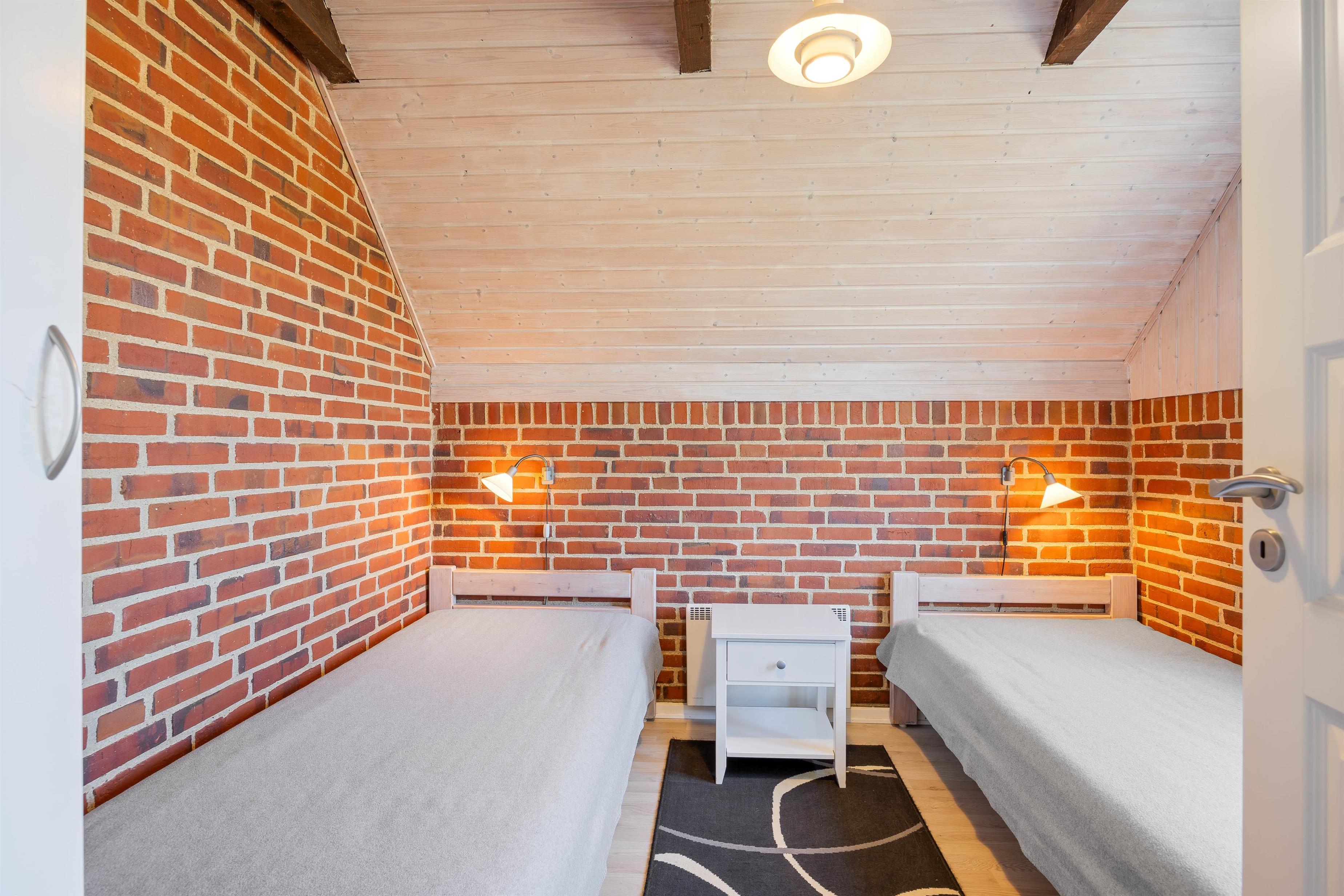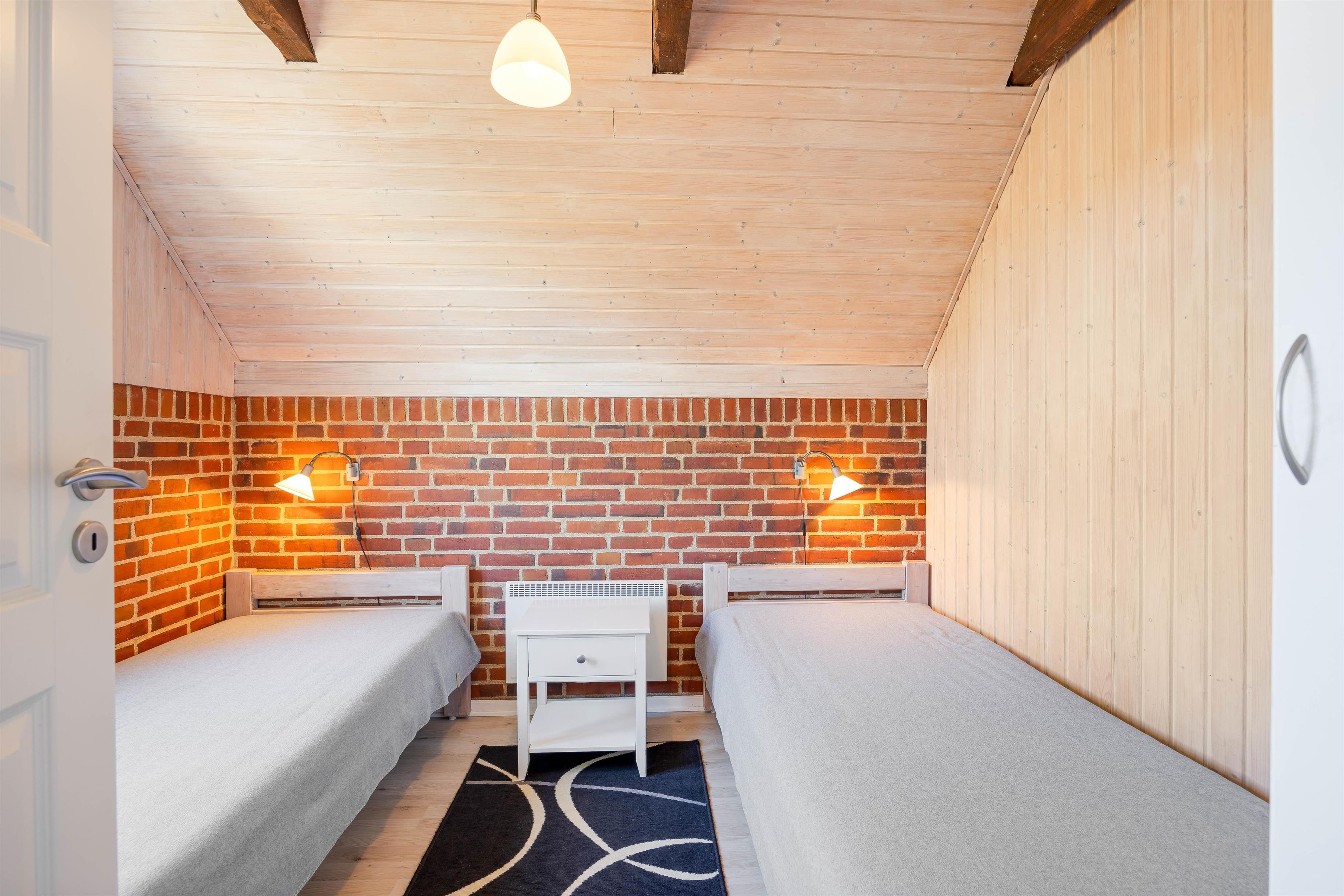 Sommerhuset byder på 3 soverum, som er indrettet med 1 dobbeltseng og 4 enkelte senge. Dette giver plads til 6 personer, så både familie og venner kan nyde samvær i de indbydende omgivelser.