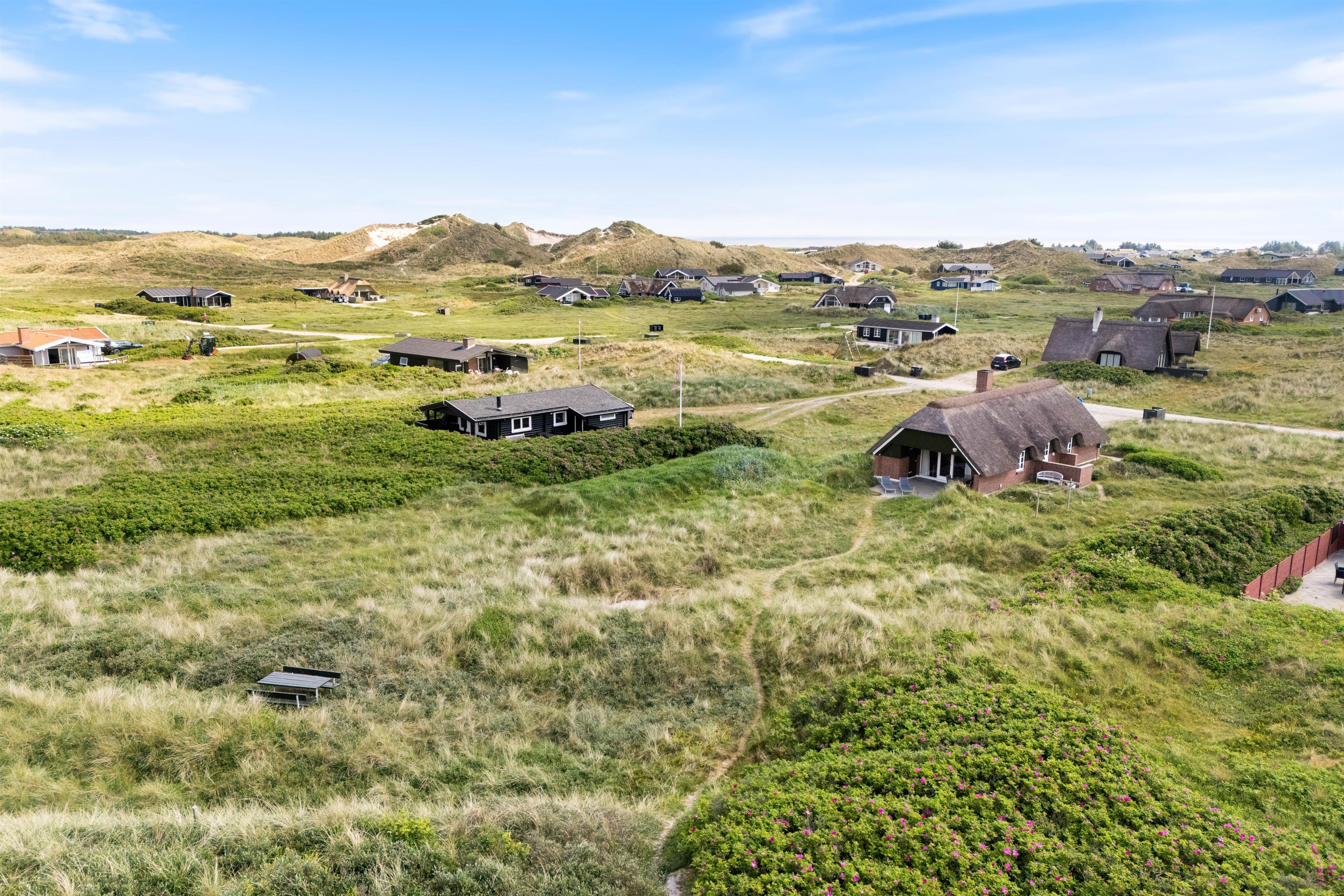 Beliggenheden byder på en kort gåtur på blot 100 meter til stranden, hvor I kan nyde det brusende Vesterhav til fulde. Stranden er perfekt til både morgenløb, en soppetur og aftenstunder, hvor solen går ned i horisonten.
