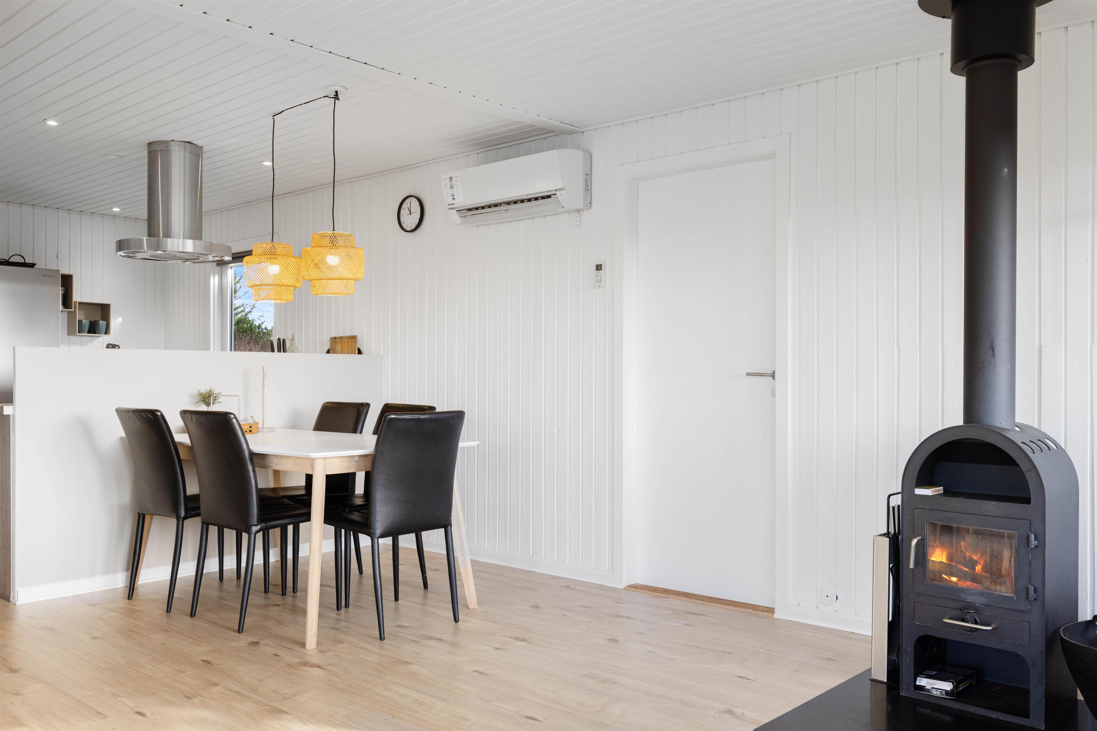 Ankommet til jeres feriedomicil, kan I stille jeres ting ind på et af de 3 værelser og gå på opdagelse i feriehuset. Sommerhuset er senest renoveret i 2024 med et flot og lyst køkken med både opvaskemaskine og mikroovn. Køkkenet ligger i åben forbindelse med stuen og på den måde kan I stadig være sammen, selvom børnene måske har lagt sig i den store og lækre sofa med deres medbragte iPads. Stuen har også en brændeovn, og I kan nyde dens gyldne skær på de sene aftener.