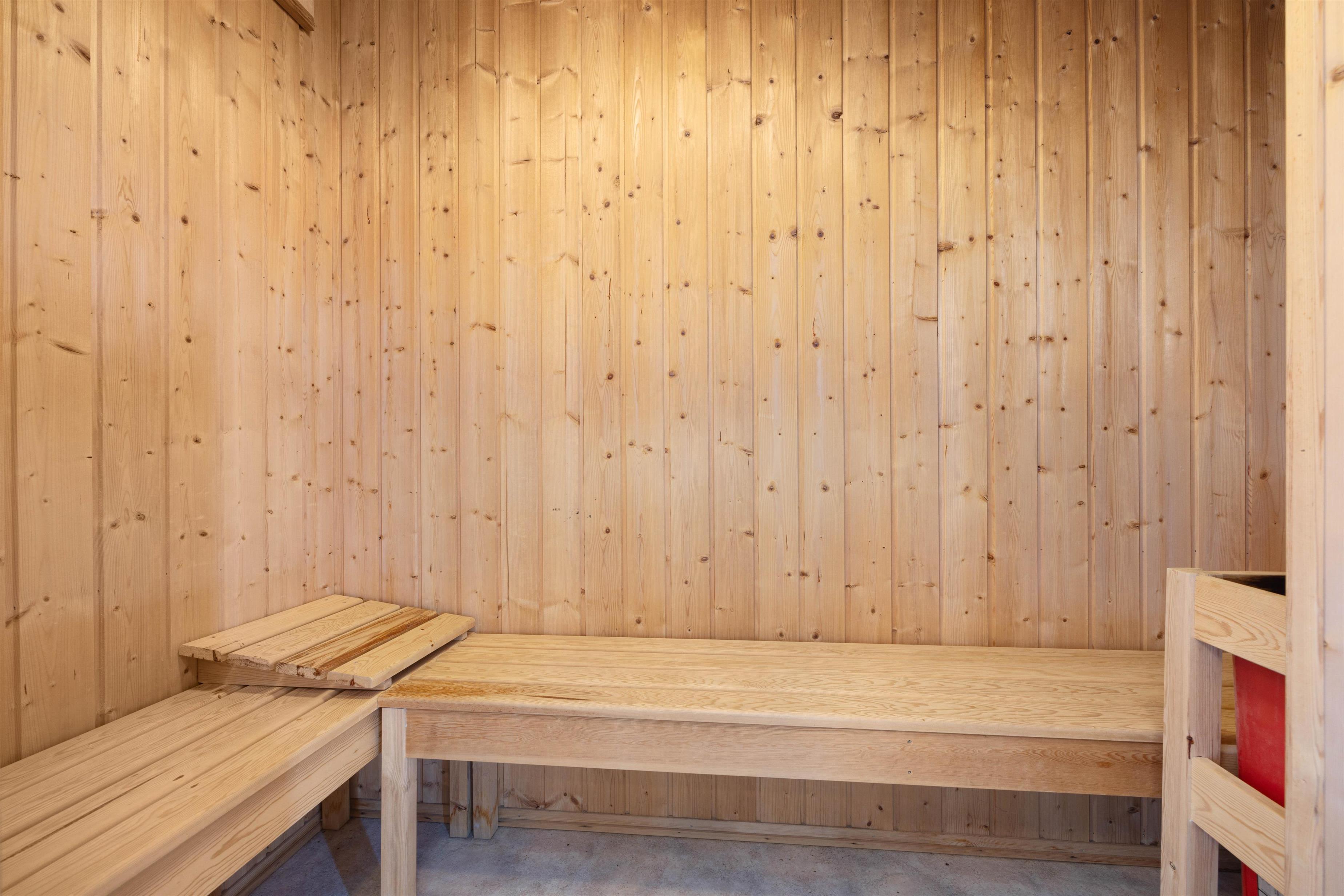 Det moderne badeværelse er indrettet med lyst inventar, og her er både spa og sauna – mon ikke børnene vil elske en tur i spabadet sidst på aftenen, efter en aktivitetsrig feriedag.