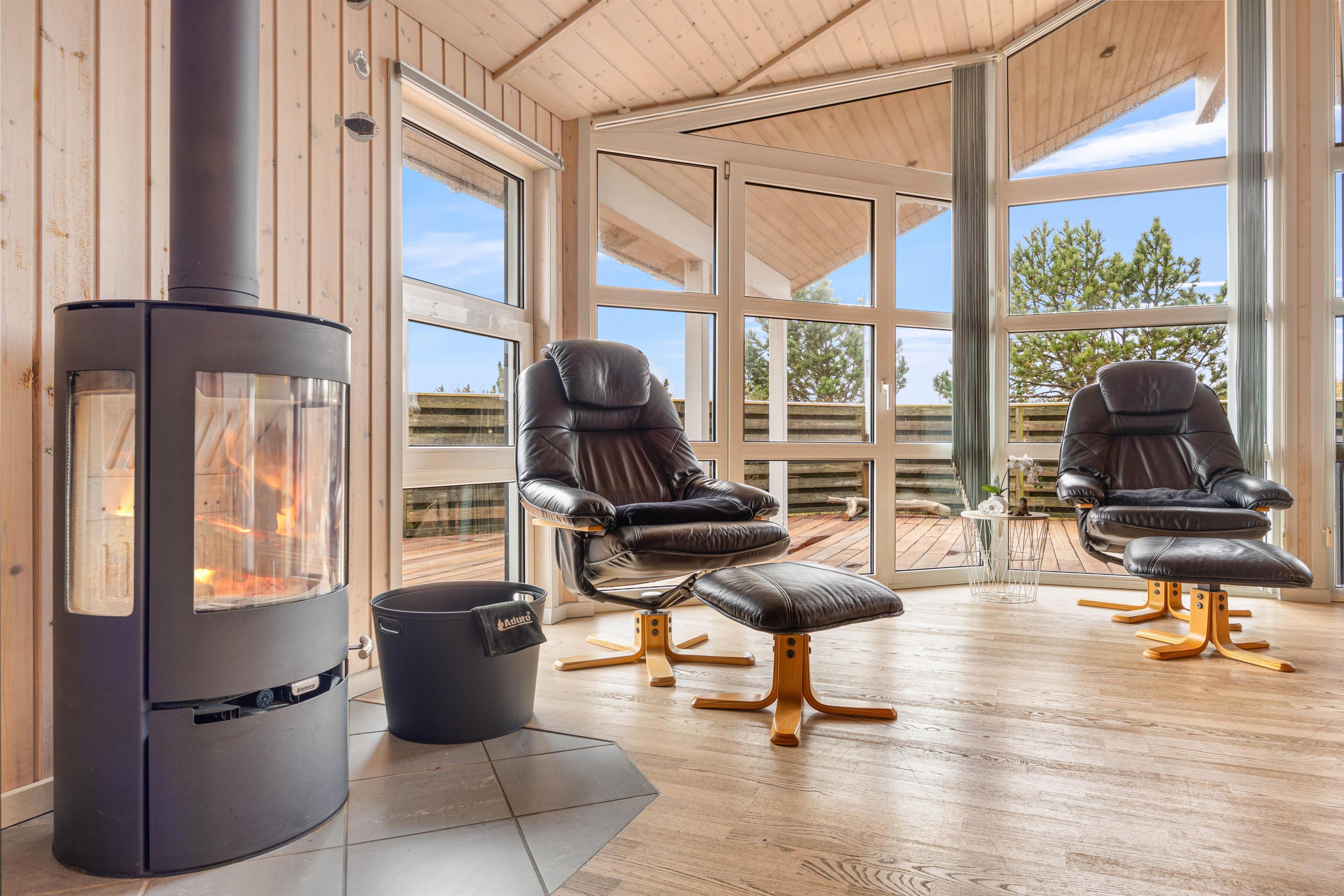 I det lyse, veludstyrede køkken er der god plads til fælles madlavning. Sommerhusets store vinduesparti og høje, lyse lofter i køkken/alrummet skaber de perfekte rammer om en dejlig aften i sofaerne eller en brætspilsaften ved det lange spisebord. Brændeovnen sørger året rundt for en hyggelig varme, der breder sig ud til alle feriegæster. Det giver energi til et spil bordfodbold eller en dejlig udflugt til stranden.