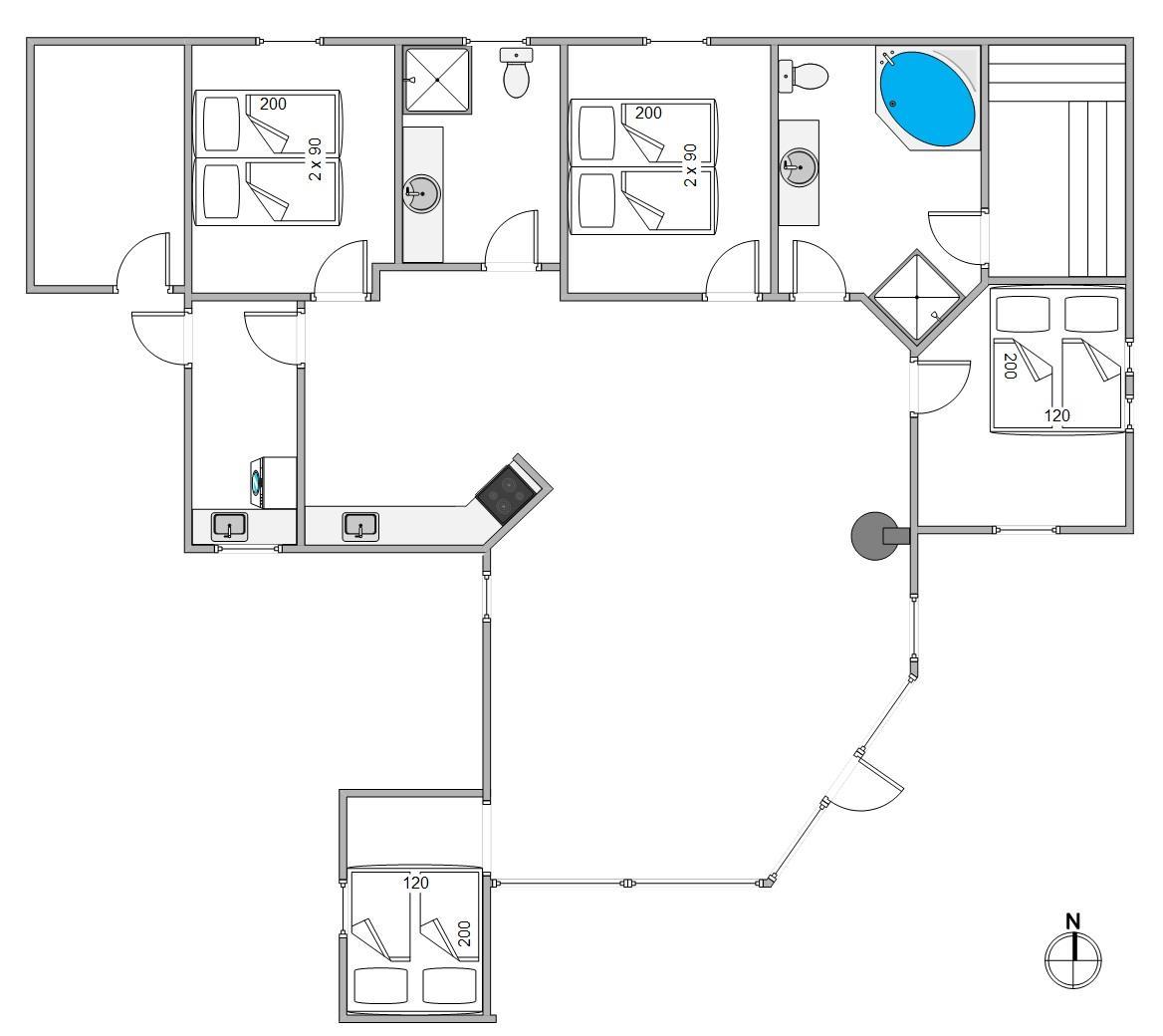 I feriehuset på Tornbjerrevej 26 er der både tid og plads til masser af afslapning og wellness. Imens vaskemaskinen, opvaskemaskinen og tørretumbleren tager sig af de praktiske gøremål, kan I læne jer tilbage i spabadet eller saunaen og slappe af i hele kroppen. Udendørs kan I fortsætte afslapningen i solen på liggestolene efter en dejlig gåtur med hundene ned til den nærtliggende strand.
