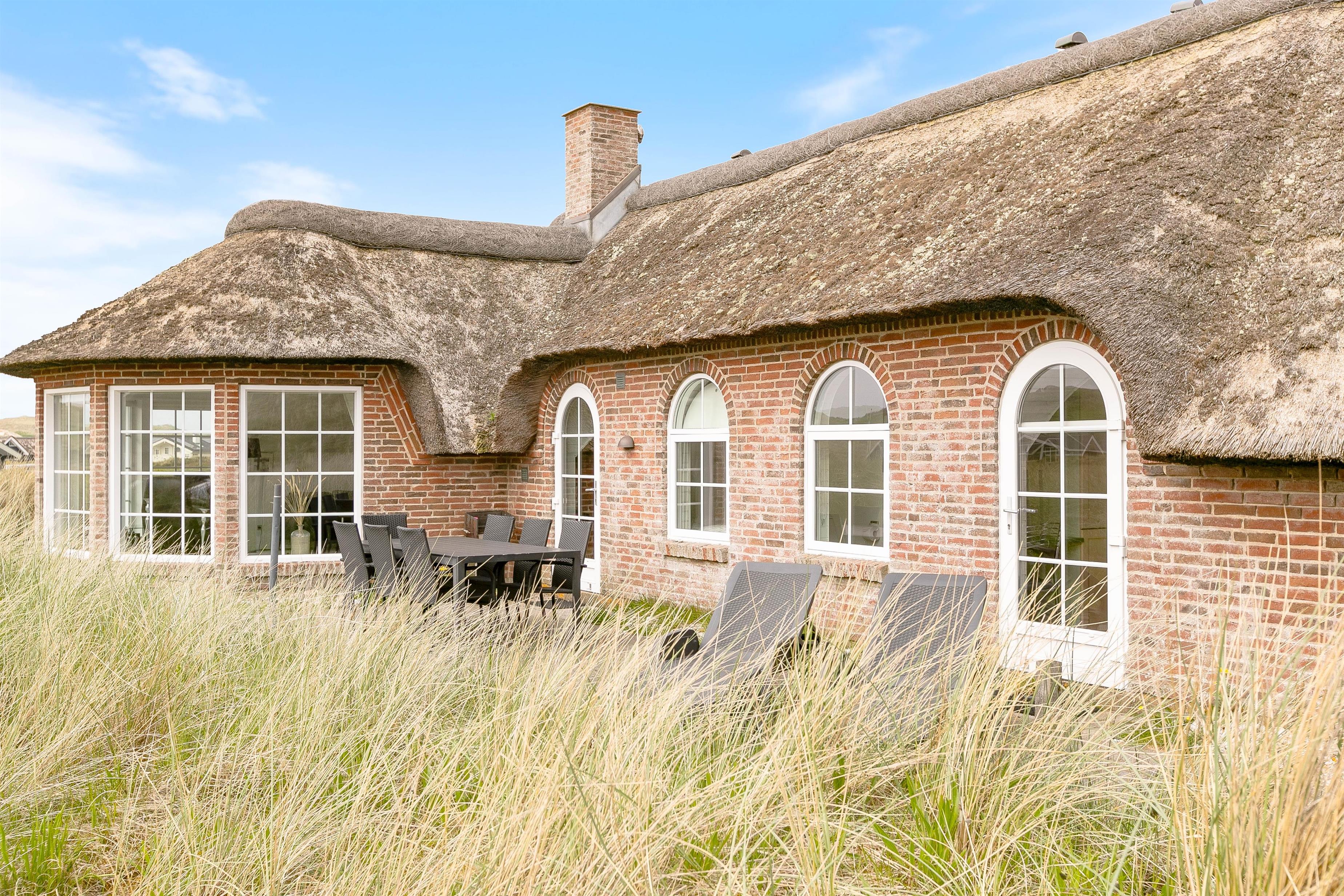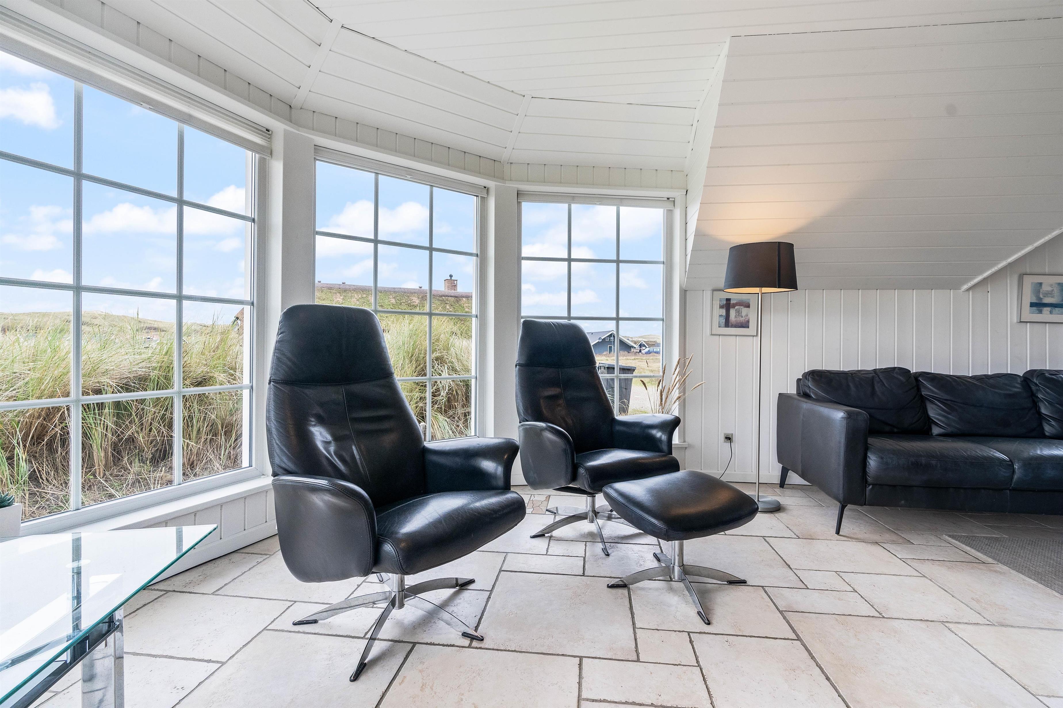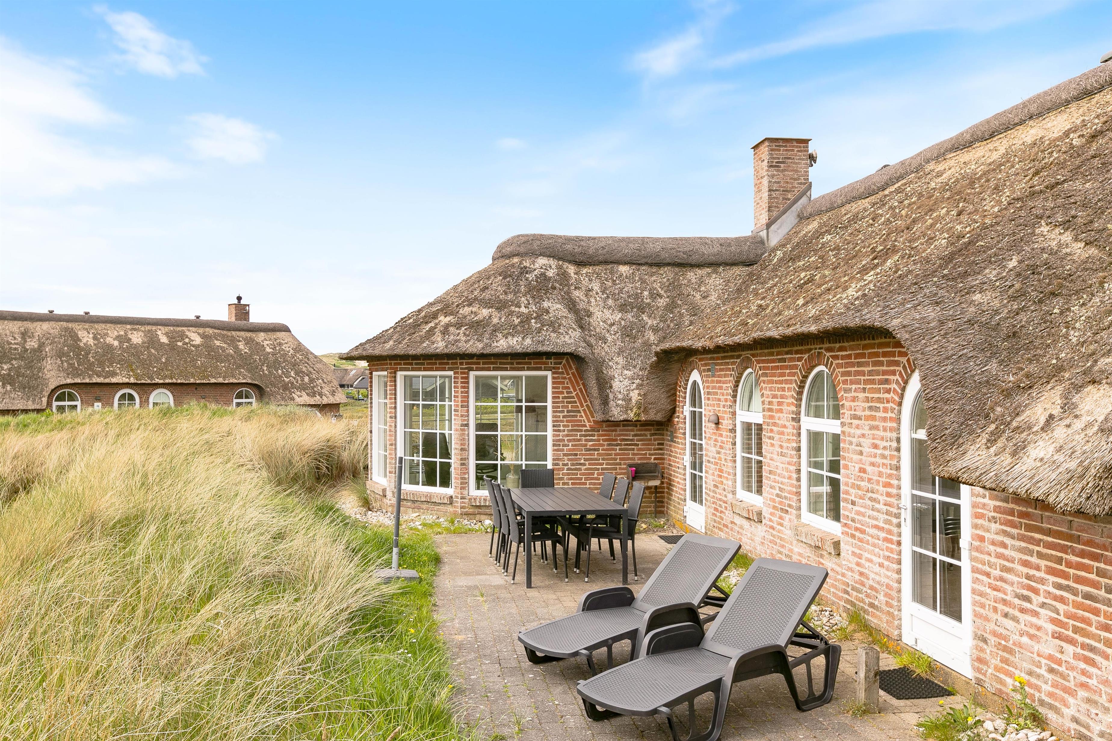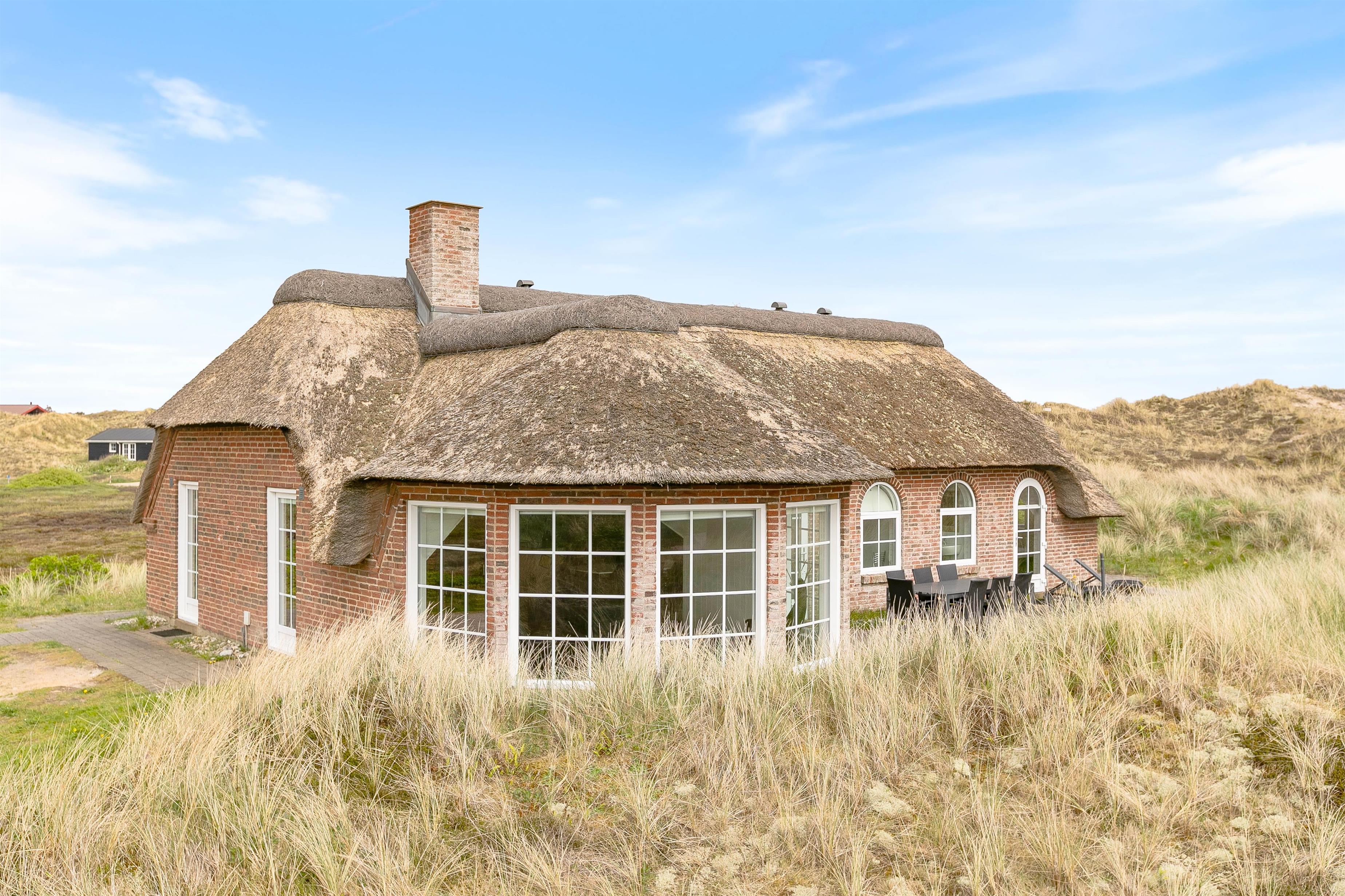 Der er en skøn udsigt både indenfor og fra feriehusets terrasser. Det storslåede klitlandskab er helt unikt, og her er der mulighed for mange lange gåture med børn og hund. Der er flisebelagte terrasser omkring huset mod syd, øst og mod vest. Og dette giver derfor god mulighed for at nyde solen eller at finde læ, hvis vinden kommer fra vest. På naturgrunden er der også en sandkasse til familiens mindste.