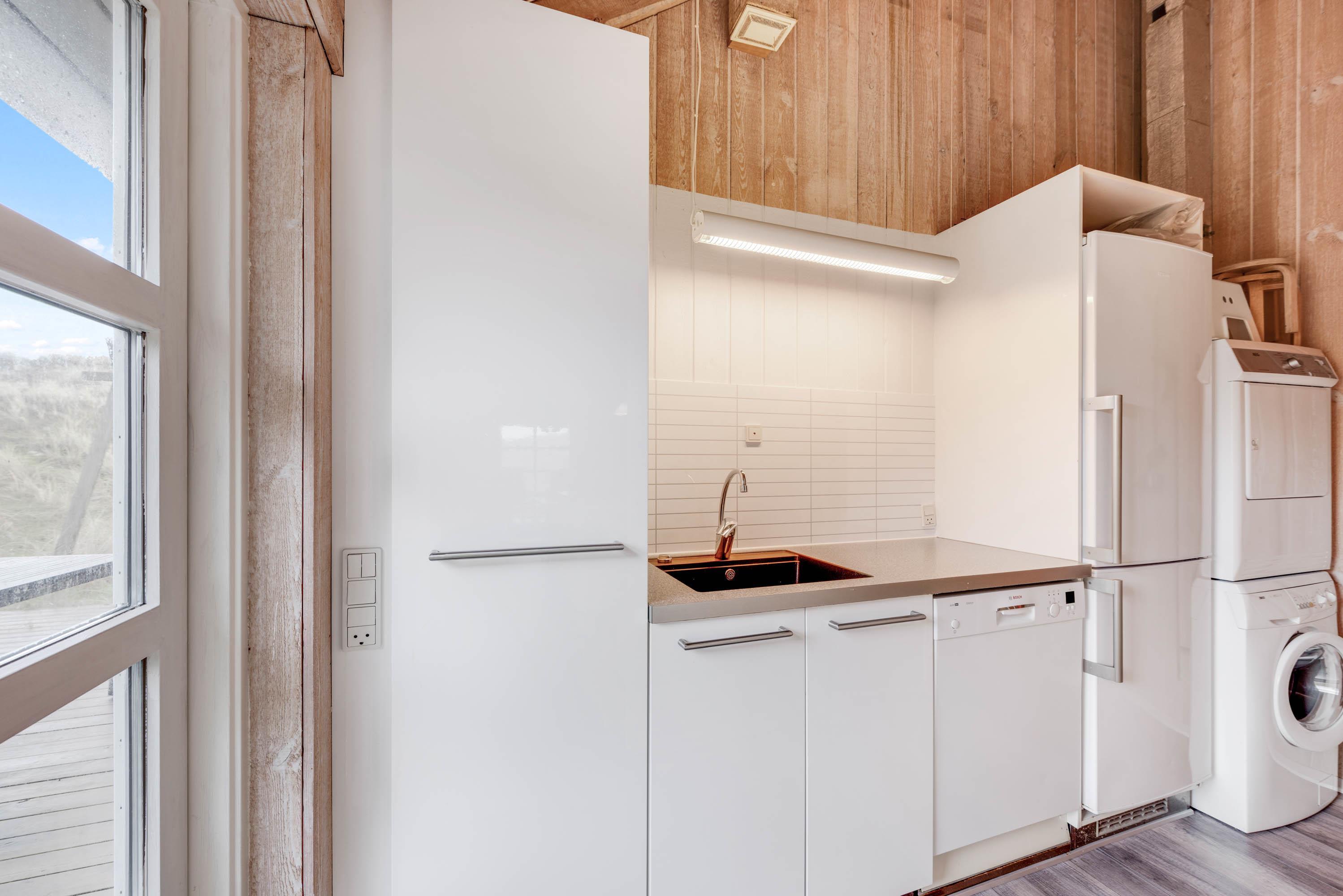 Der er tænkt på alt det praktiske, bl.a. med en baggang med opbevaringsplads og både vaskemaskine og tørretumbler, hvilket gør ferien afslappet og feriepakningen lettere. Desuden er der også en energibesparende varmepumpe i feriehuset.