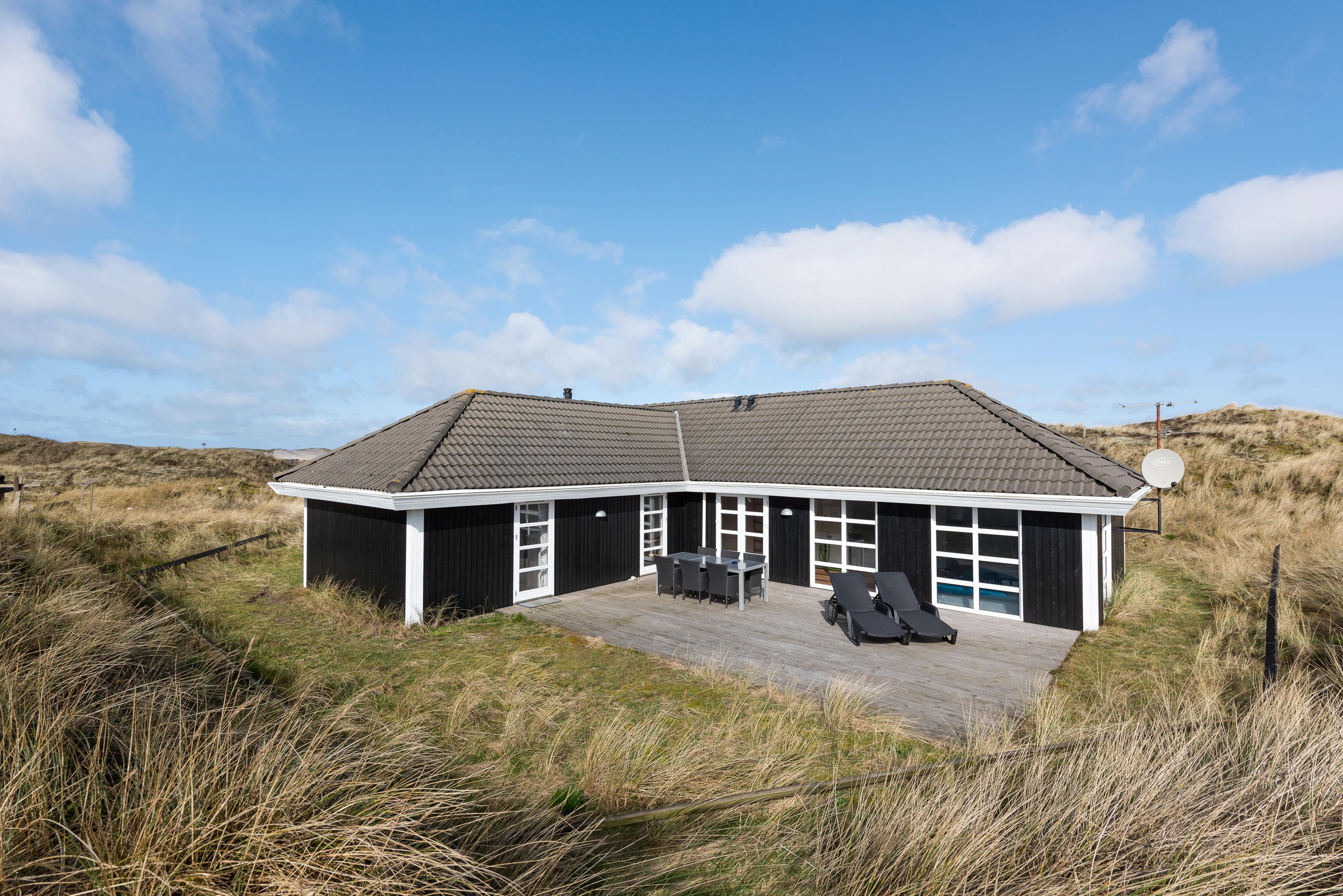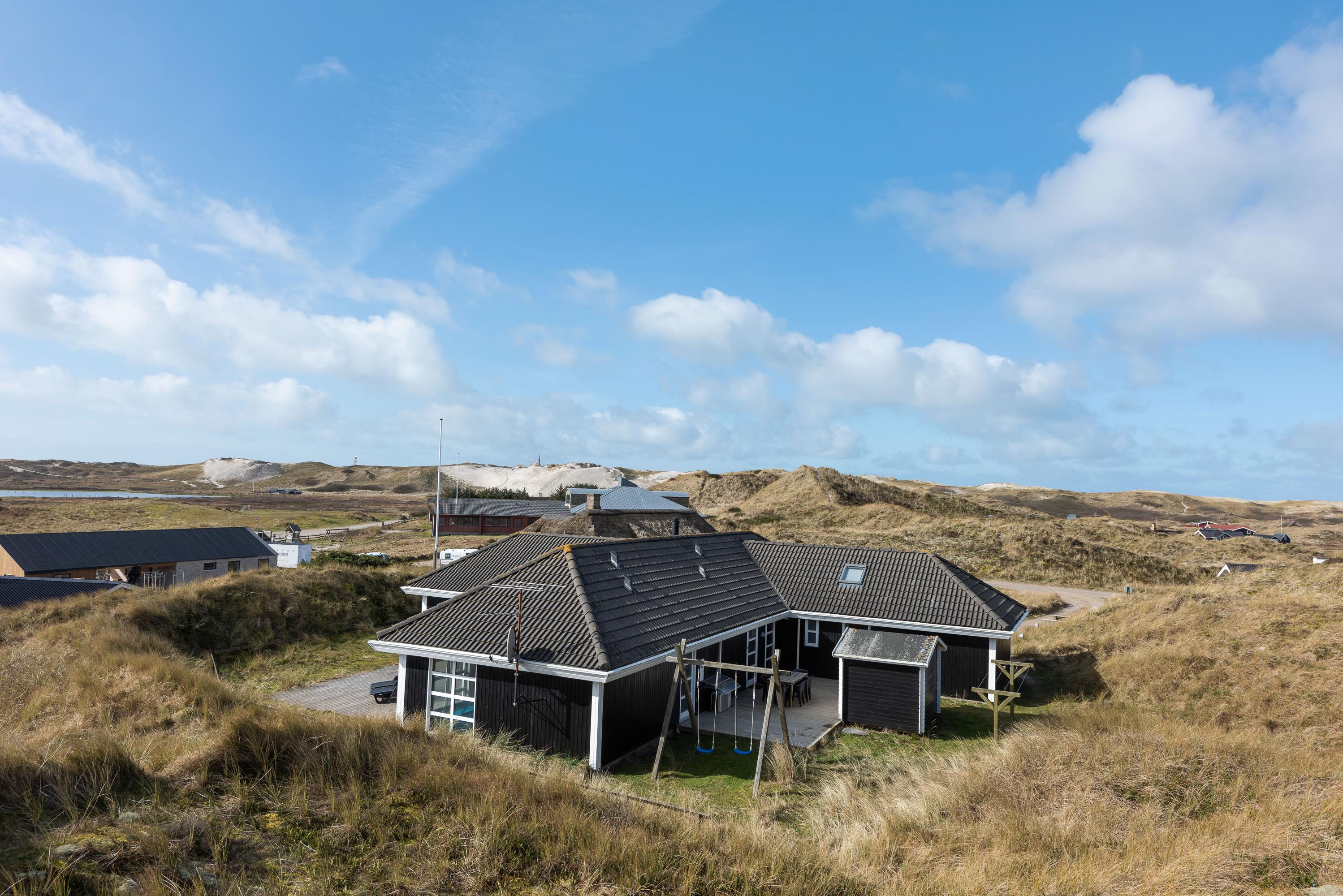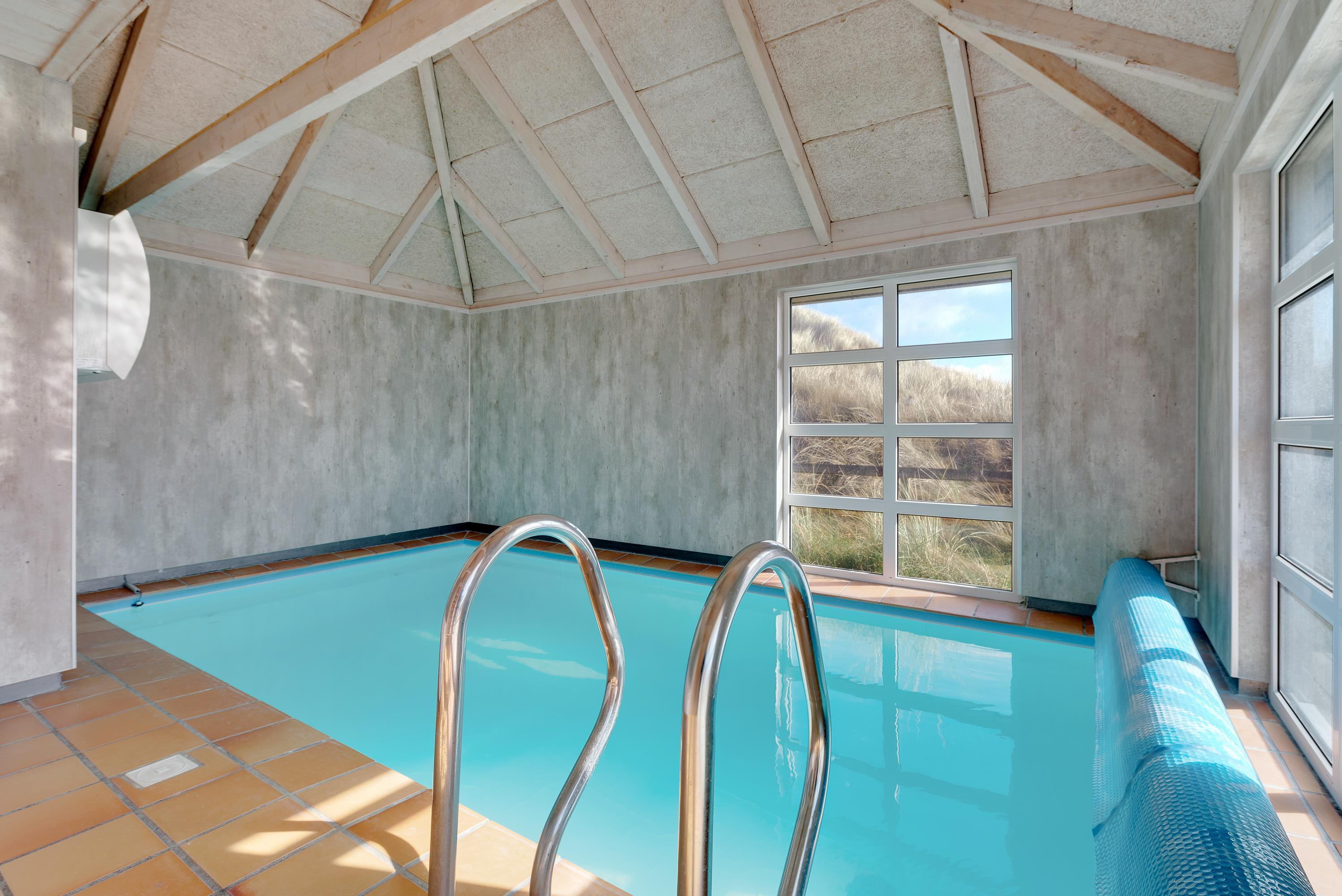 Poolhuset på Riskrogvej 6 er højt beliggende, hvilket giver en ualmindelig flot udsigt ud over klitområdet og Ringkøbing Fjord.