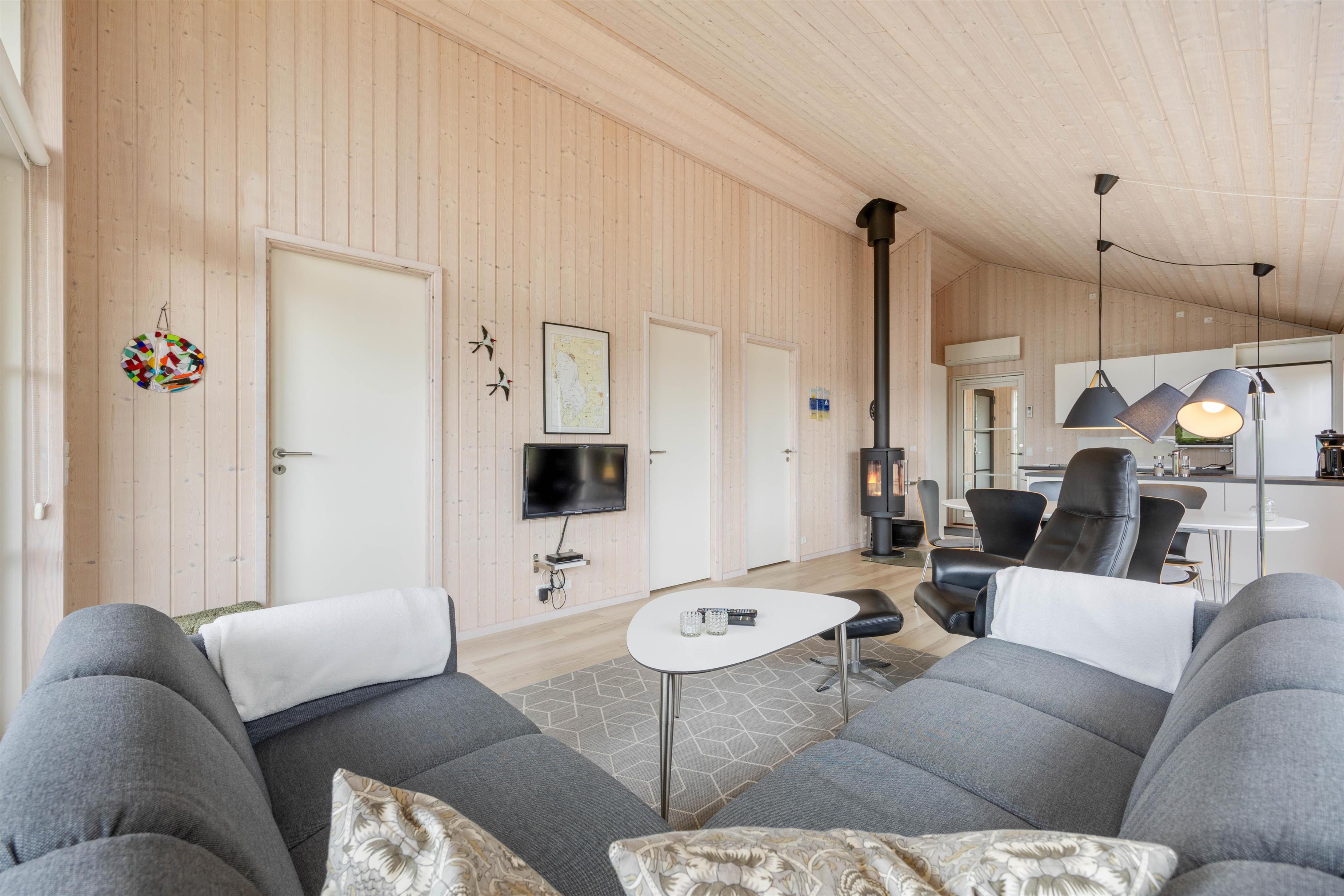 Hvis du er på ferie i de køligere efterårs- og vintermåneder, kan du slappe af foran de knitrende flammer i brændeovnen efter en dejlig gåtur i naturen. Brændeovnen giver ikke kun varme, men spreder også en charmerende atmosfære, mens vinden pifter udenfor døren.
