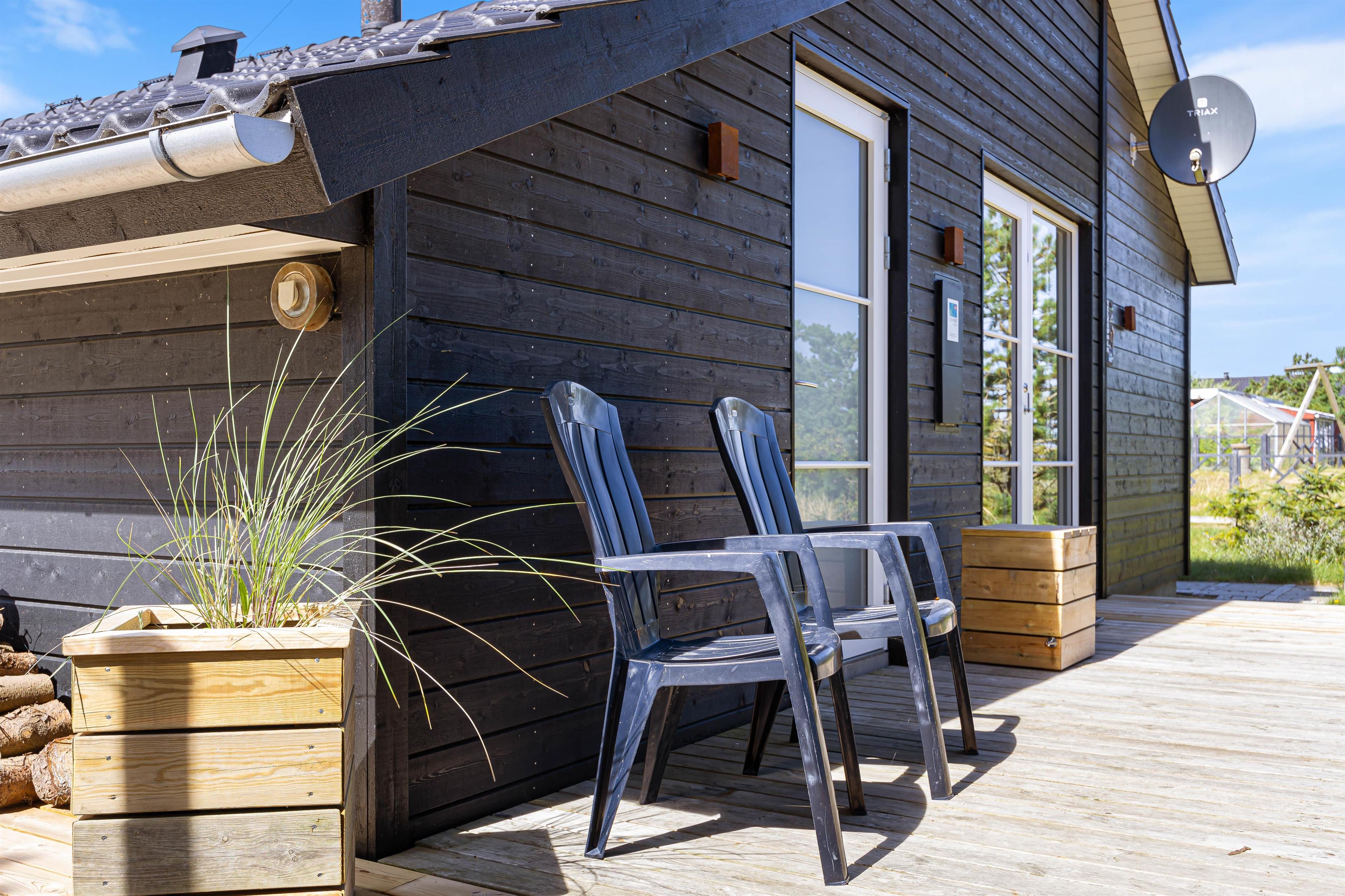 På terrassen kan du virkelig nyde solen og afslutte en perfekt dag. Tænd op for grillen på de lune sommeraftener og nyd et lækkert måltid på terrassen. Du kan slutte aftenen af ved at slappe af med et køligt glas vin, mens solen går ned over klitterne i et smukt farvespil.
