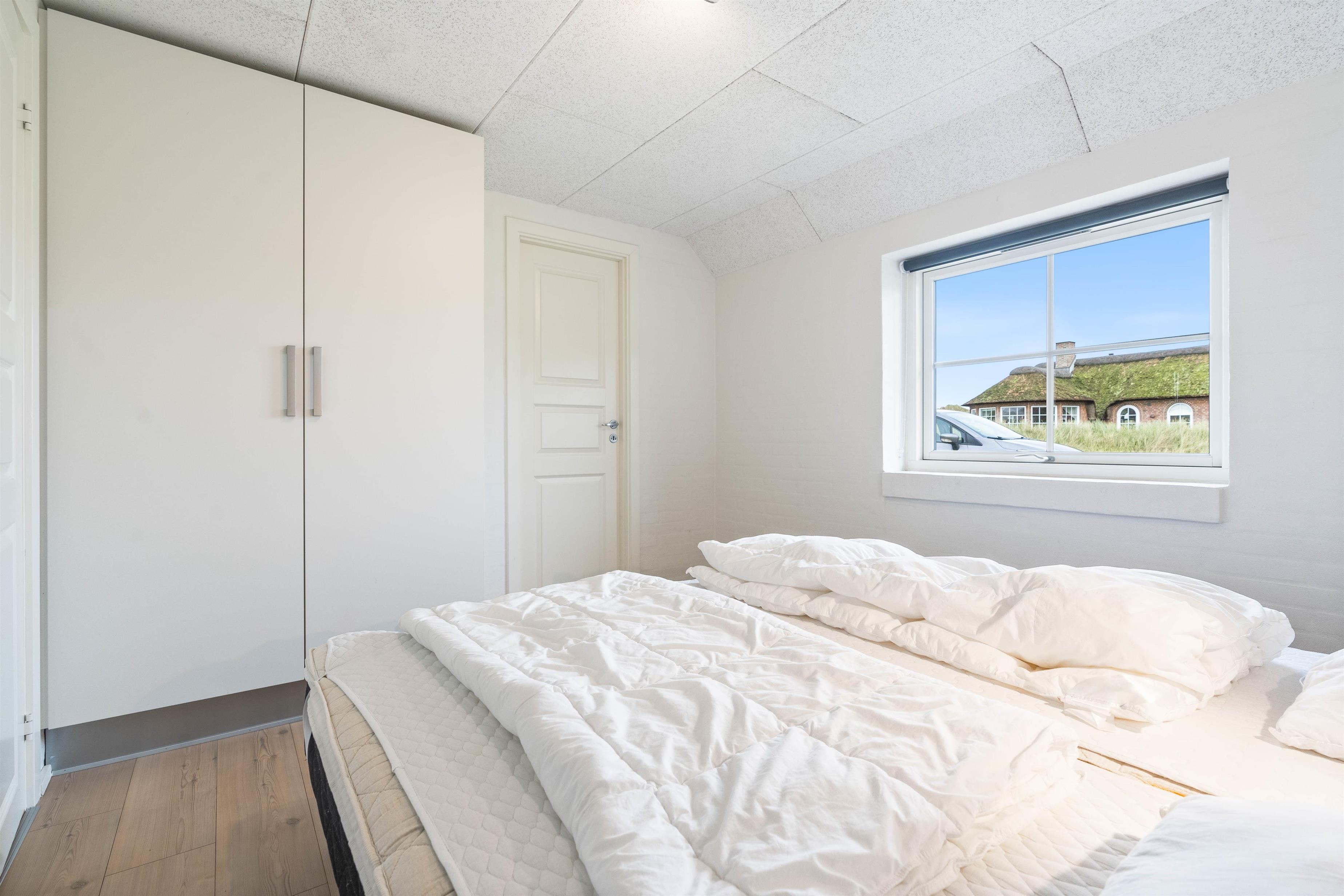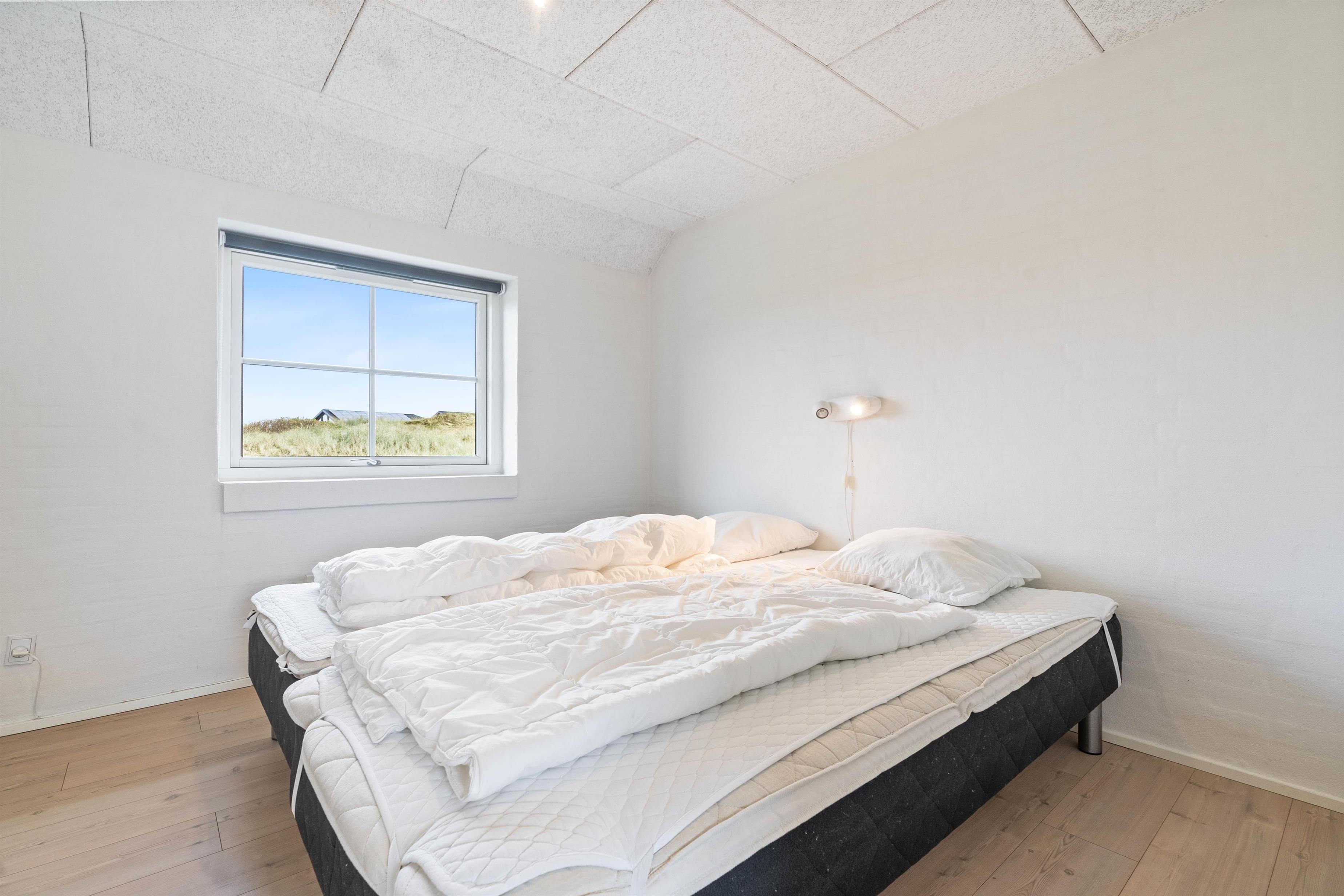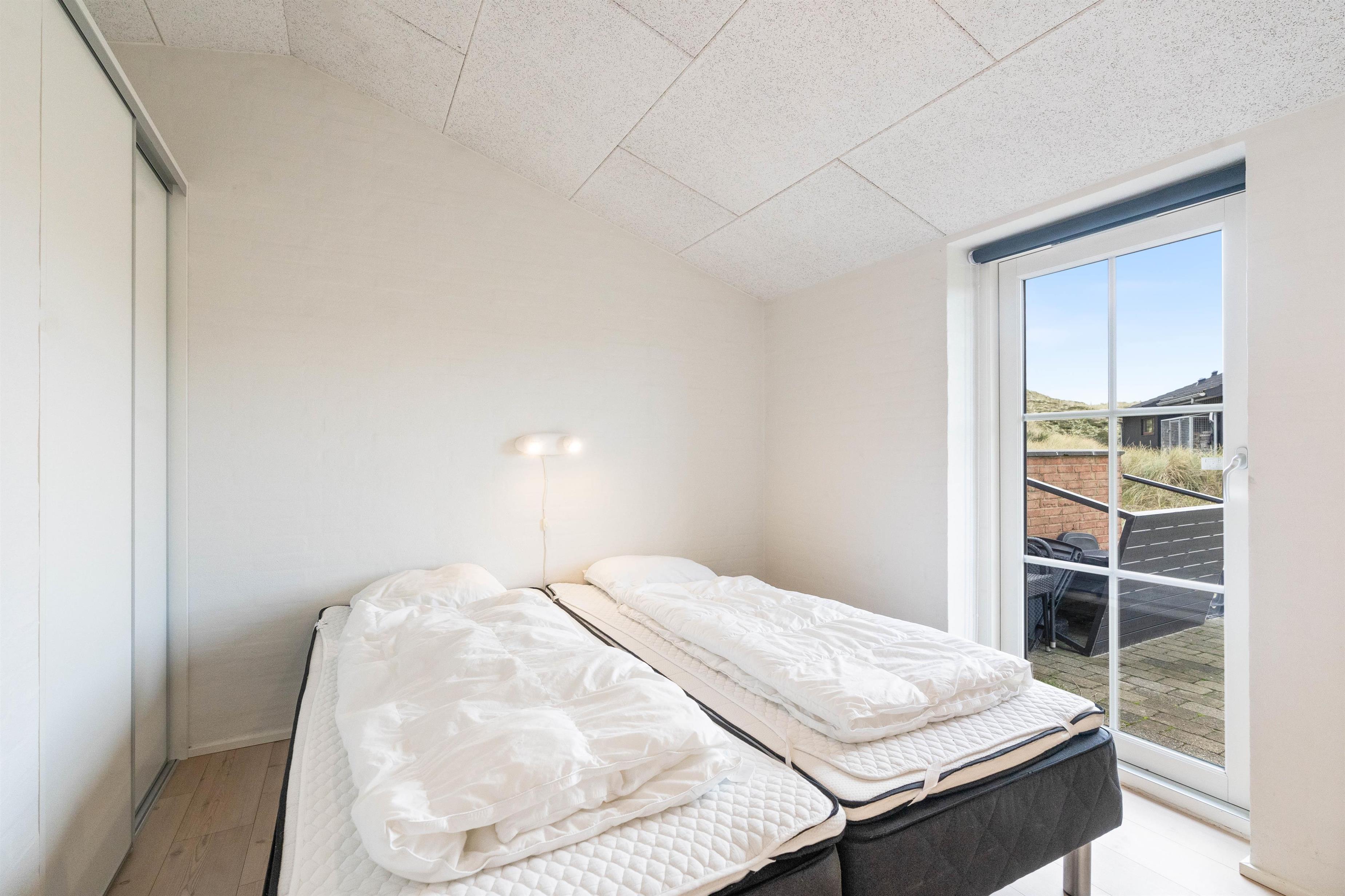 Når I bliver trætte, kan I fordele jer på de to soveværelser. Begge er rummelige, indrettet med dobbeltsenge og med god mulighed for opbevaring. Giv jer selv lov til at sove længe og nyde ferien! Skal I forkæles lidt ekstra på ferien, finder I heldigvis både sauna og spa på det store af feriehusets to badeværelser.