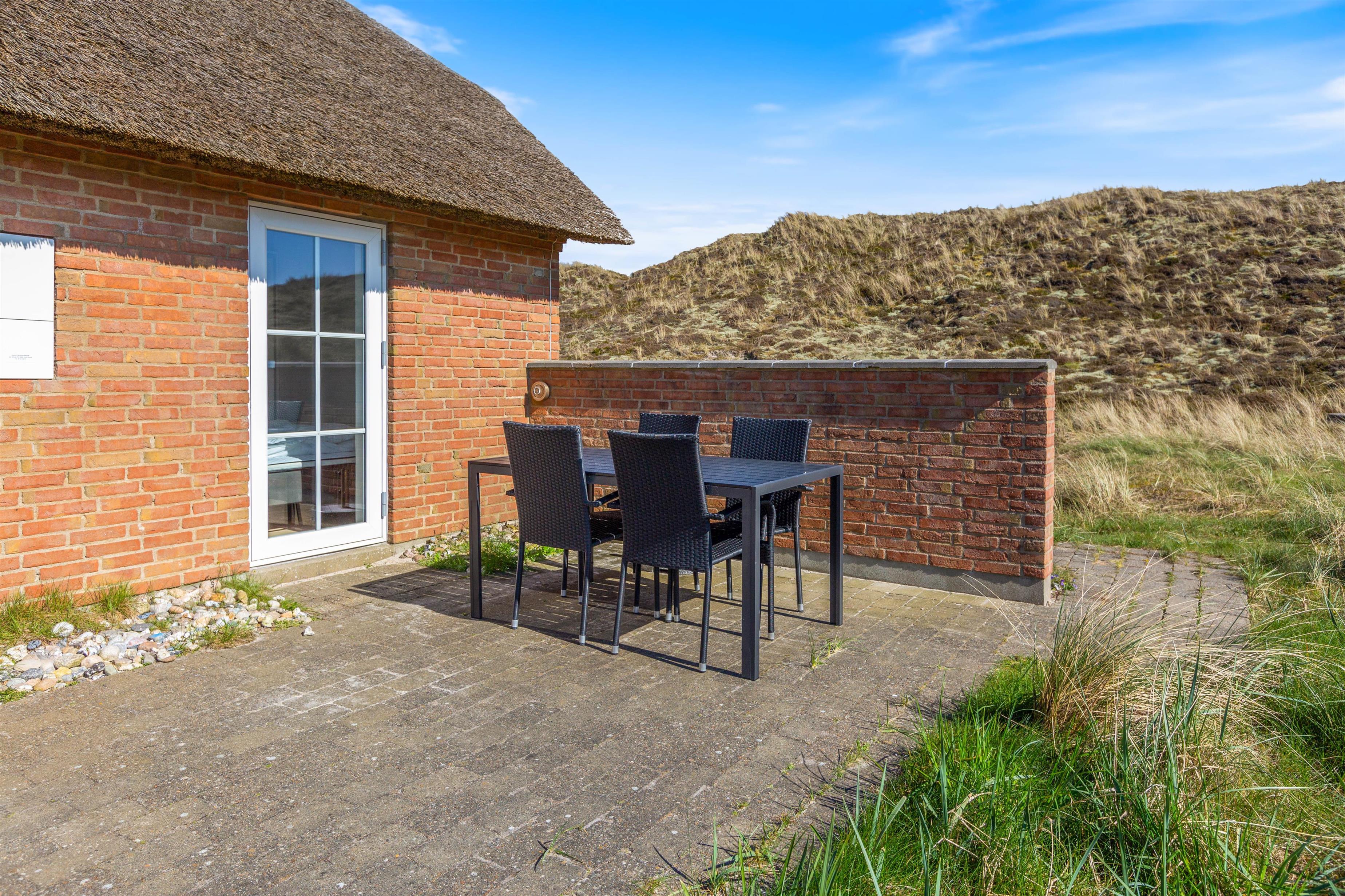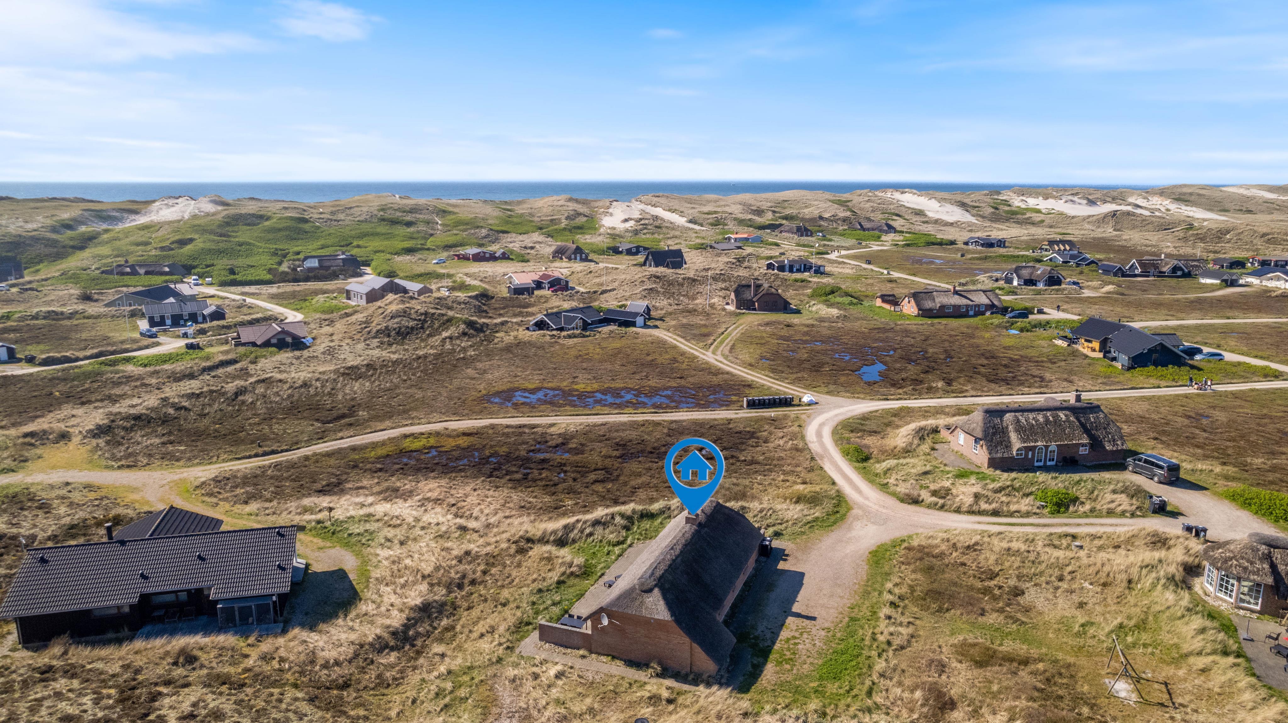 Et charmerende sommerhus med stråtag i naturskønne omgivelser. De perfekte rammer for den lille familie og hund – her møder funktionalitet og hygge hinanden. Stunder foran brændeovnen, solskinstimer på terrassen og lange gåture ved Vesterhavet, er noget af det, der venter jer!