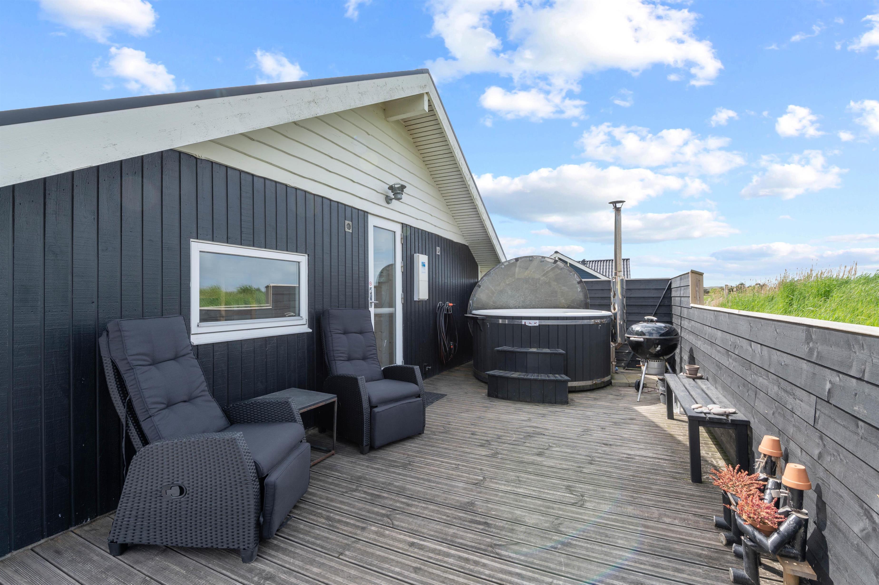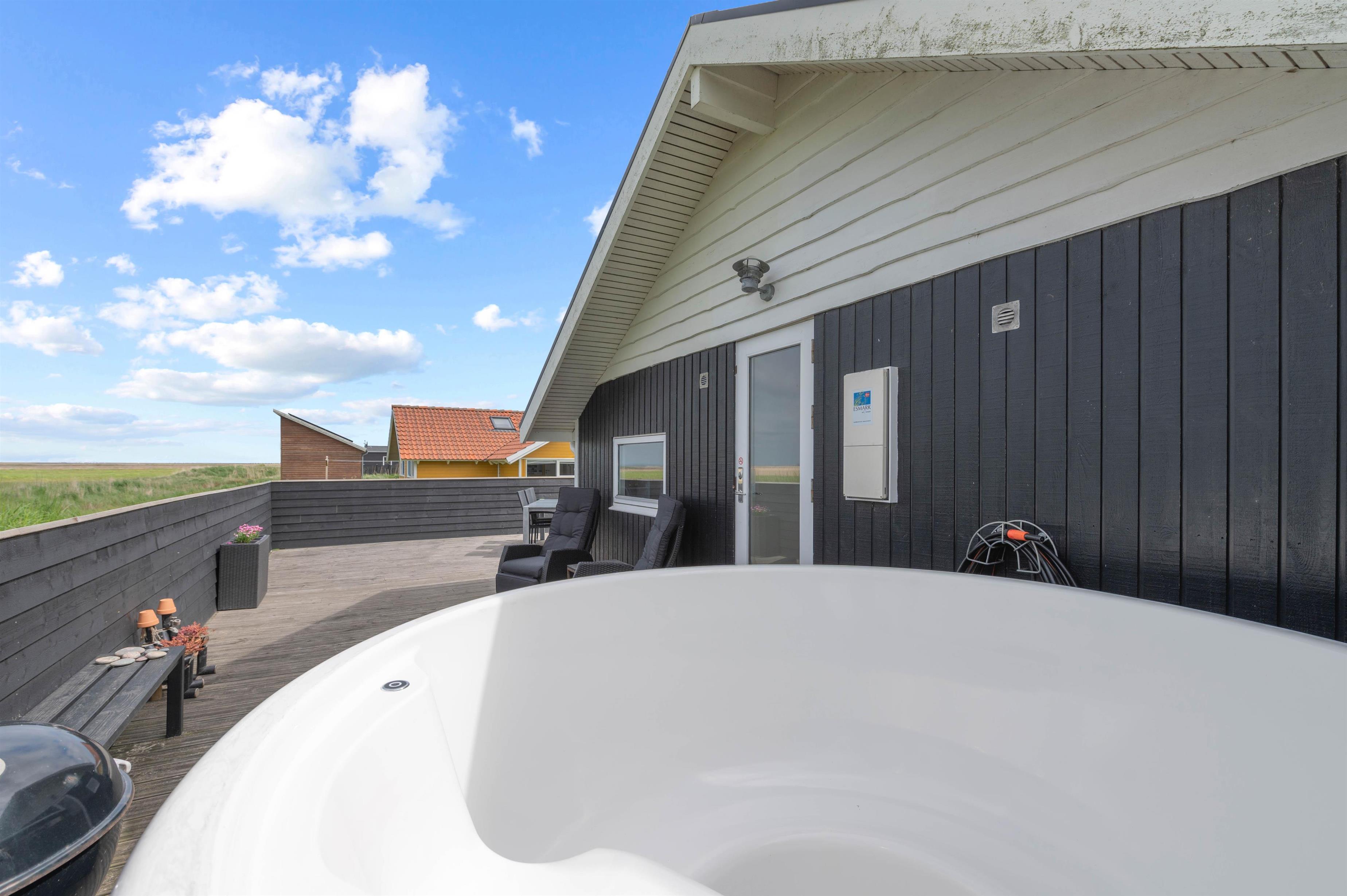 På en ferie i dette sommerhus er der rig mulighed for at komme helt ned i gear og lade kroppen helt op: På husets badeværelset har I både et spabad og en sauna, og udenfor på husets terrasse står et vildmarksbad klar til at varme jer godt igennem.