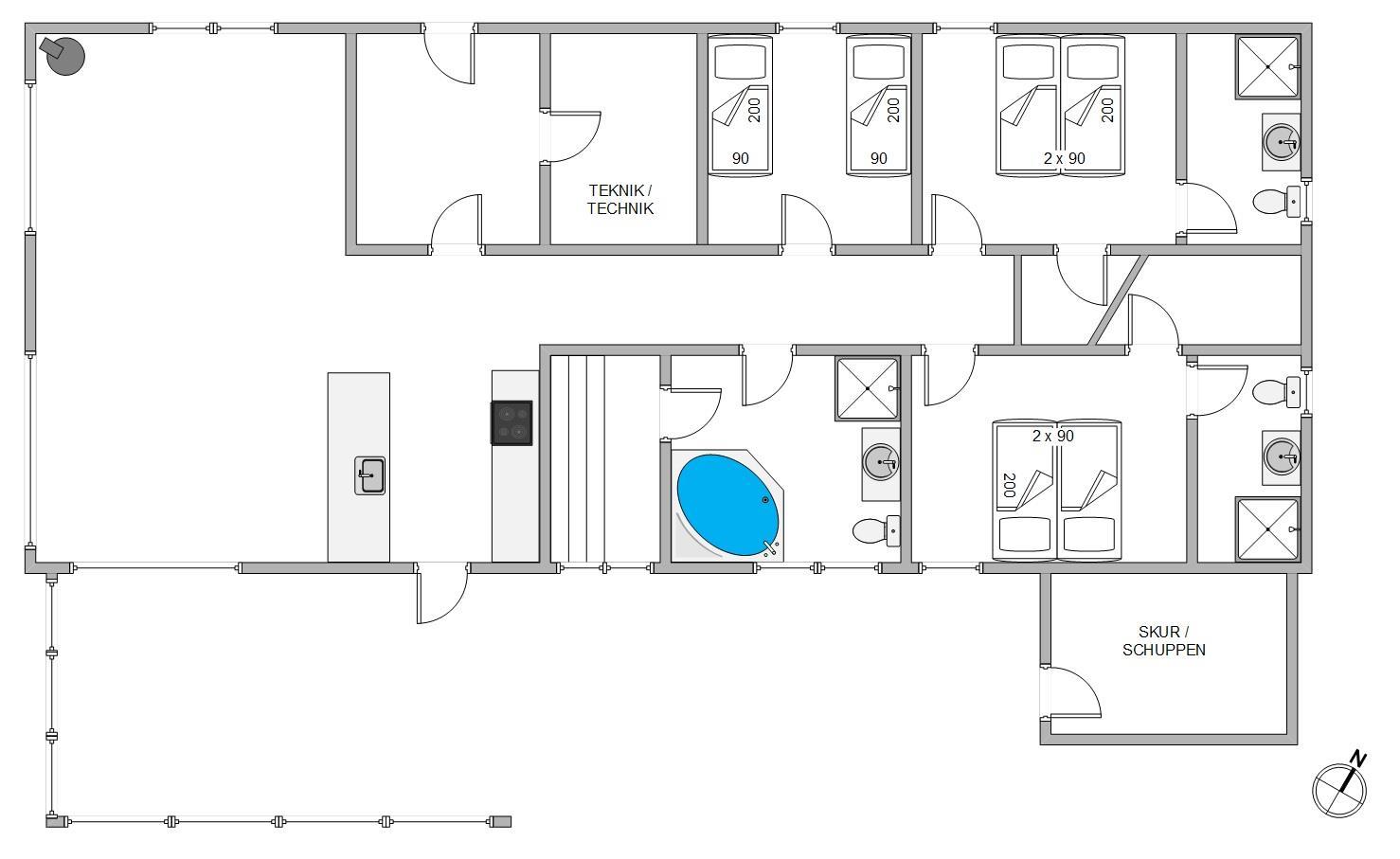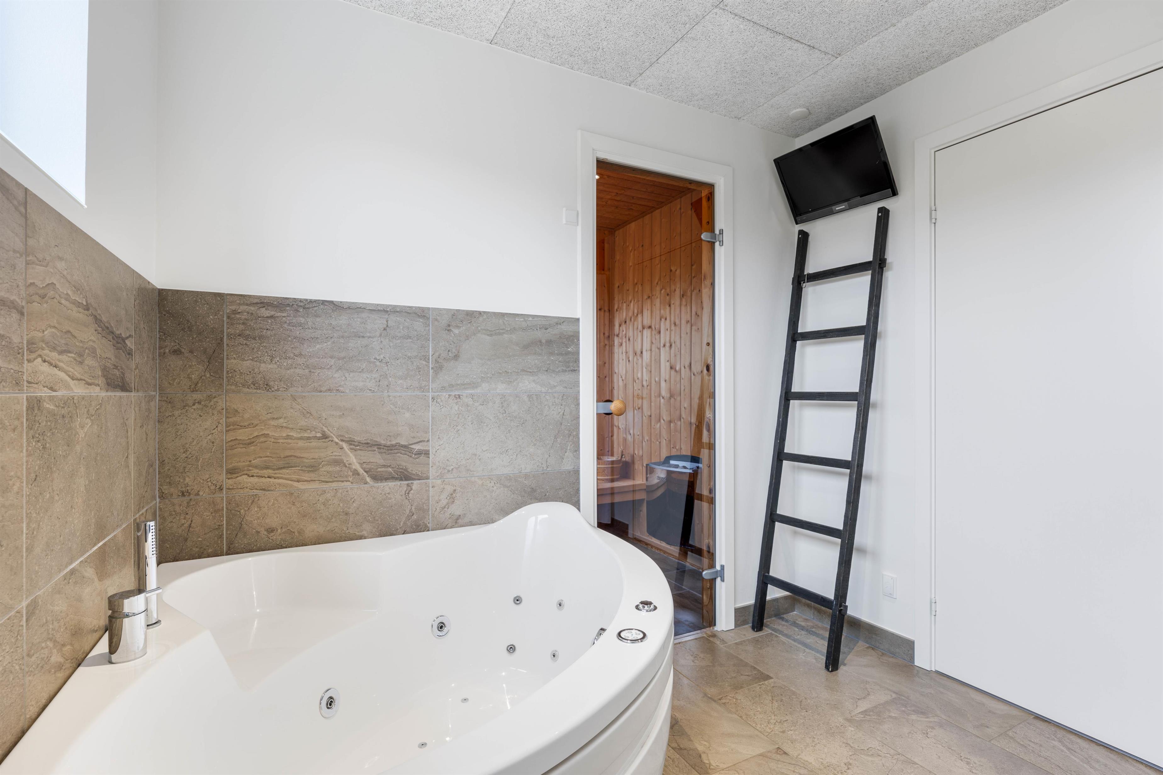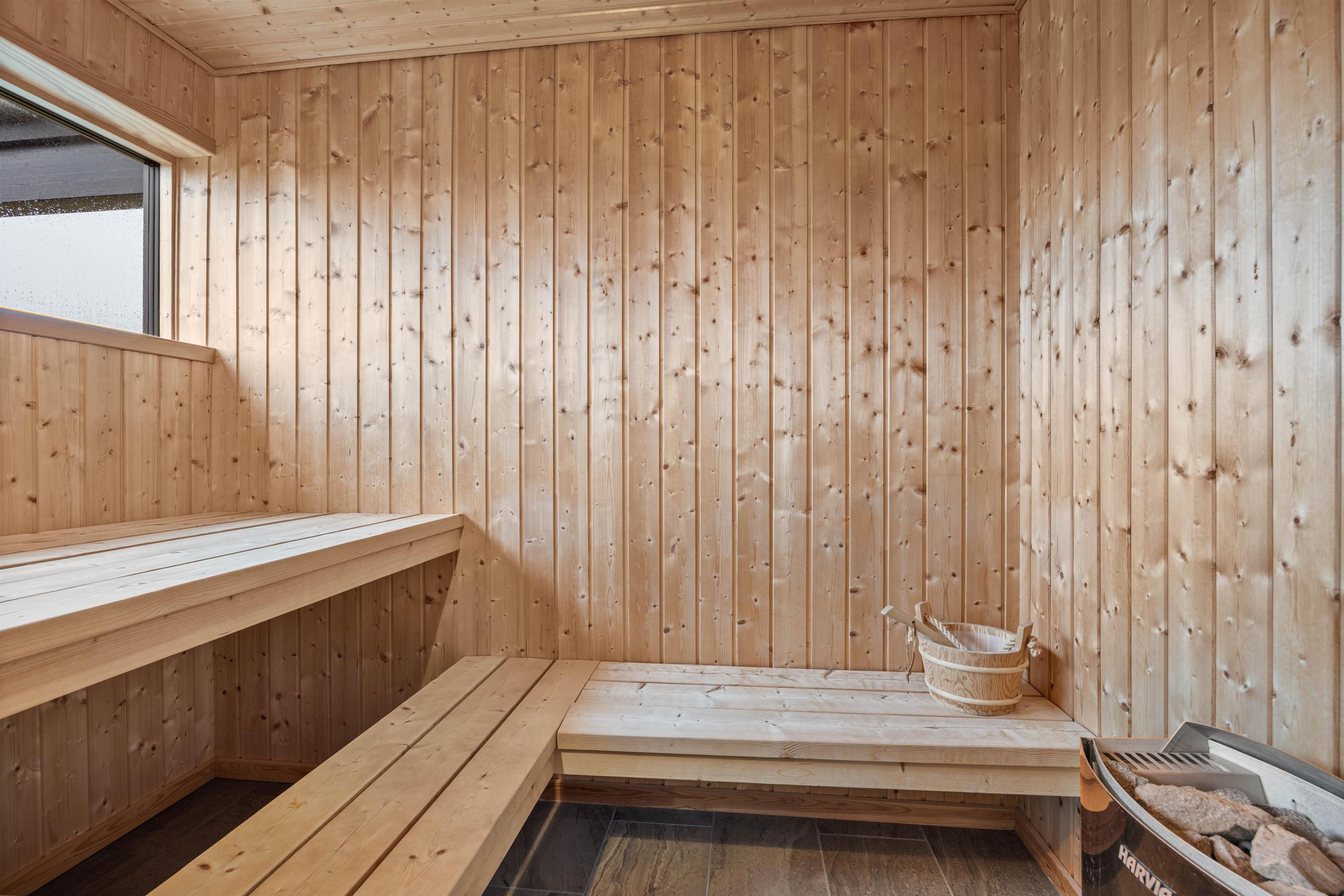 I det moderne feriehjem er der lagt stor vægt på, at I skal kunne nyde den tiltrængte ferie i fulde drag, og derfor er der også sørget for lidt ekstra wellness. Fra det største af husets 3 badeværelser har I adgang til jeres egen private wellnessafdeling med både sauna og spabad, hvor I kan forkæle jer selv og hinanden lidt ud over det sædvanlige.