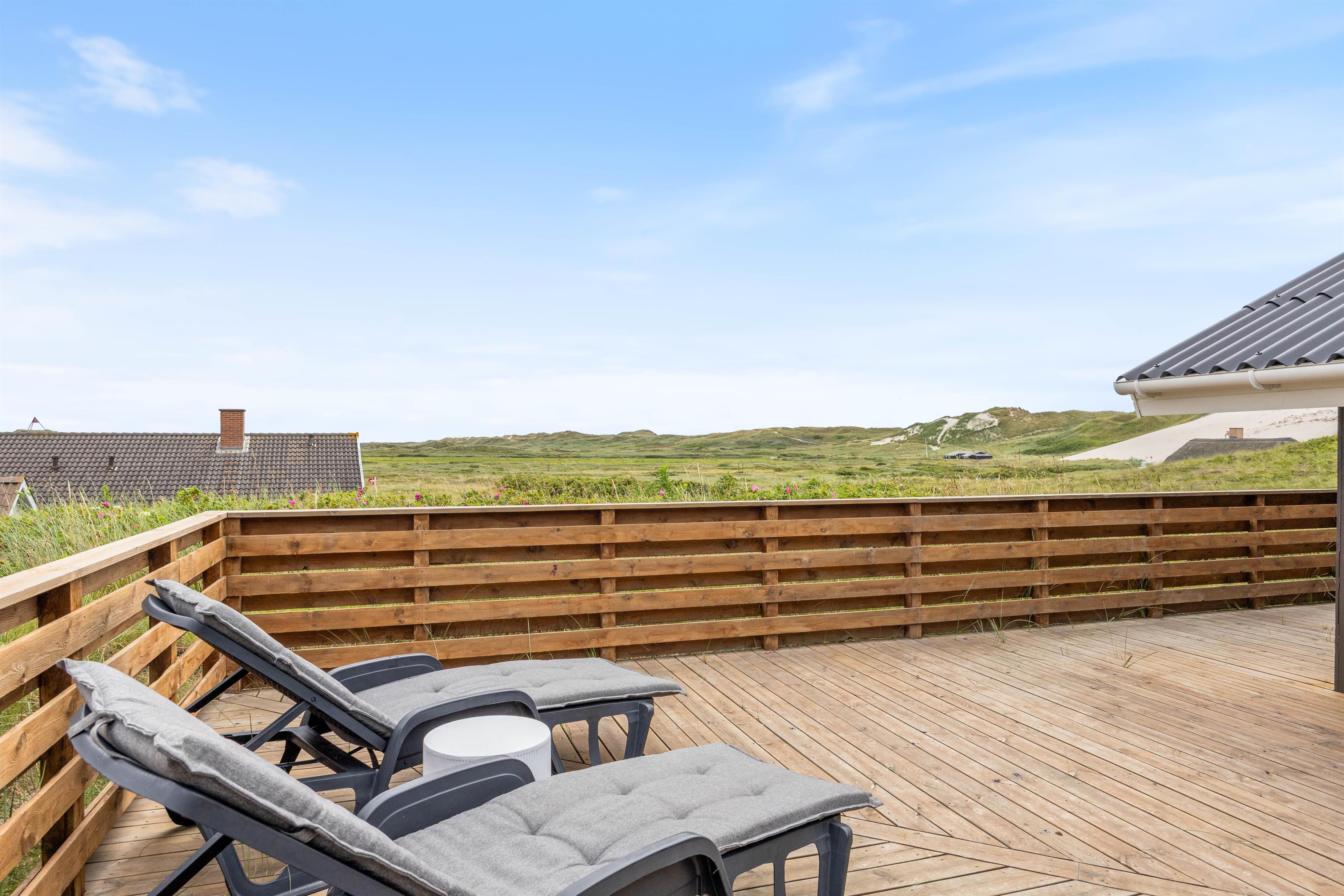 På den lukkede terrasse kan I sidde og nyde naturen på tætteste hold. Her får I virkelig en fornemmelse af det bølgende landskab, som området er kendt for. Her kan I sidde uforstyrret og nyde den friske luft, mens hundene trisser frit omkring. Nyd en lækker frokost, der er tilberedt på grillen, slappe af på langs eller sidde med en god bog.
