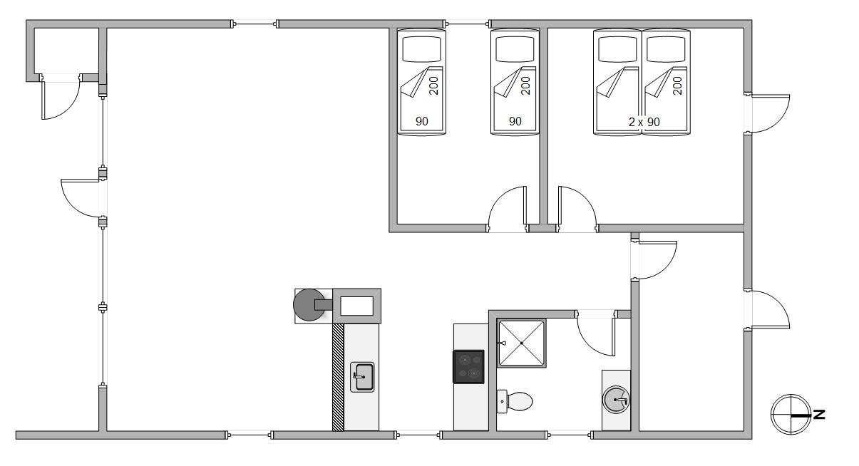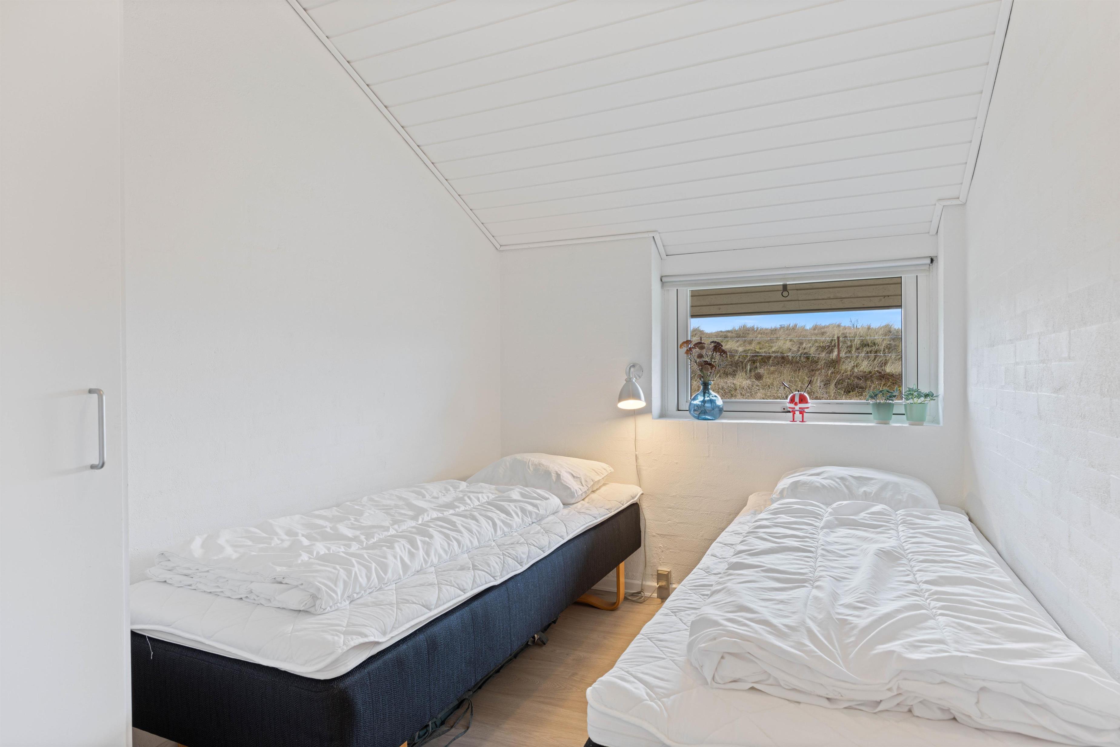 Der er 2 gode soveværelser, den ene med dobbeltsenge, det andet med to seperate senge. Der er laminatgulv i soveværelserne, ligesom i resten af feriehuset.