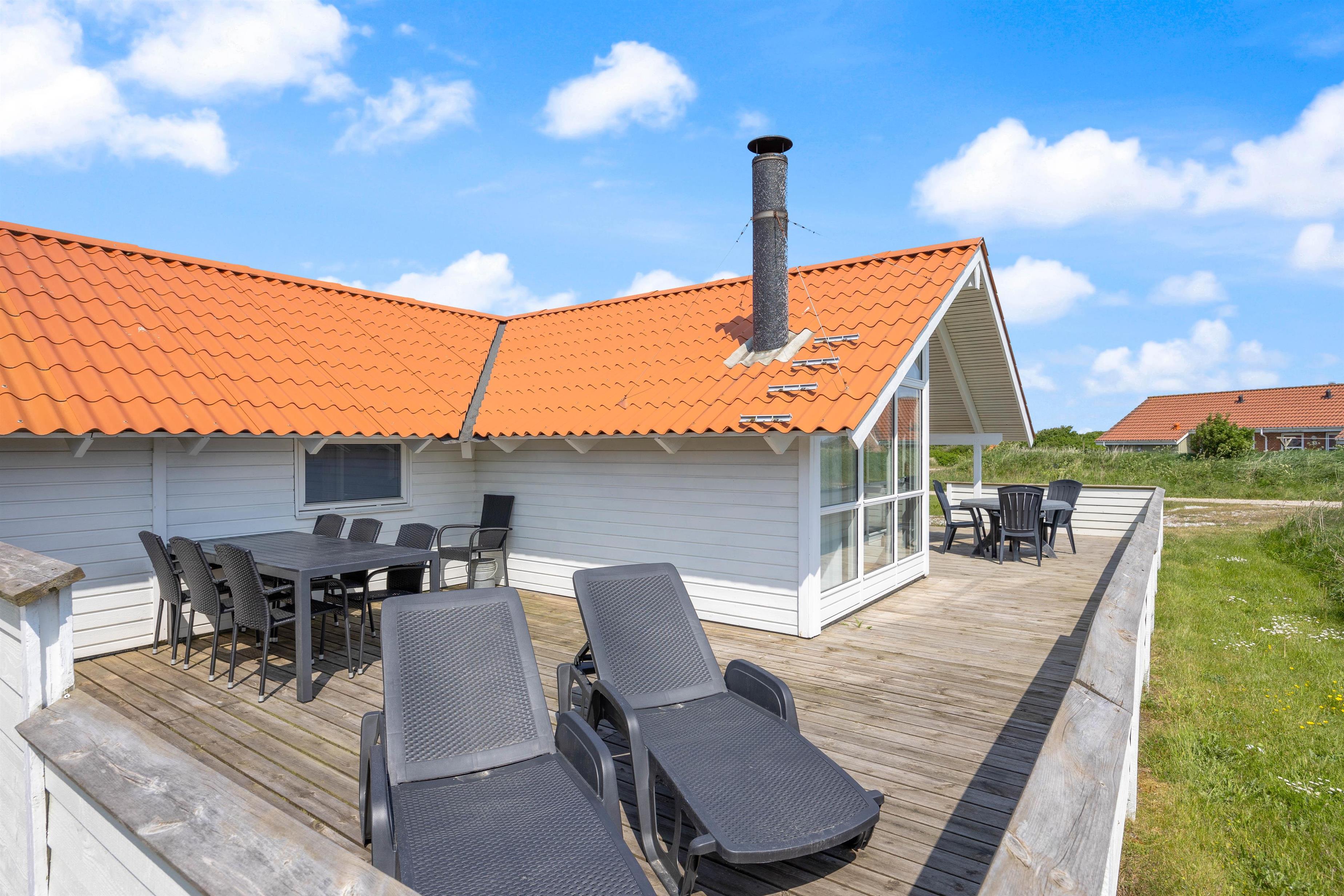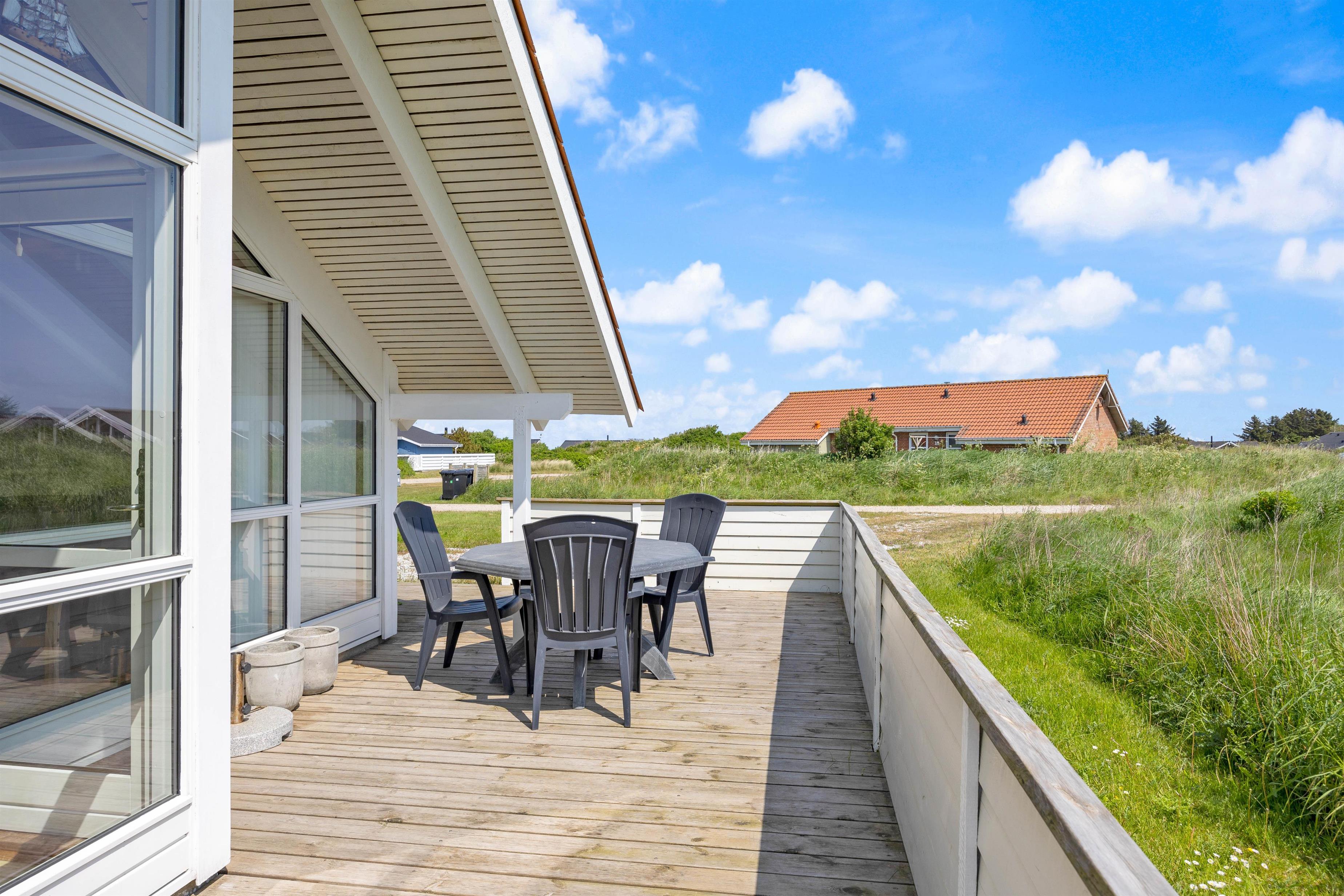 Når vi tager på ferie i et sommerhus, så nyder vi nærværet med hinanden og naturen. Inde- og udelivet smelter sammen. Vi spiser ude. Leger ude. Og går lange ture i naturen. Sommerhuset på Laust Diges Vej 2 ligger midt i den skønne vestjyske natur. Feriehuset har en dejlig stor terrasse, som strækker sig over tre sider af feriehuset.