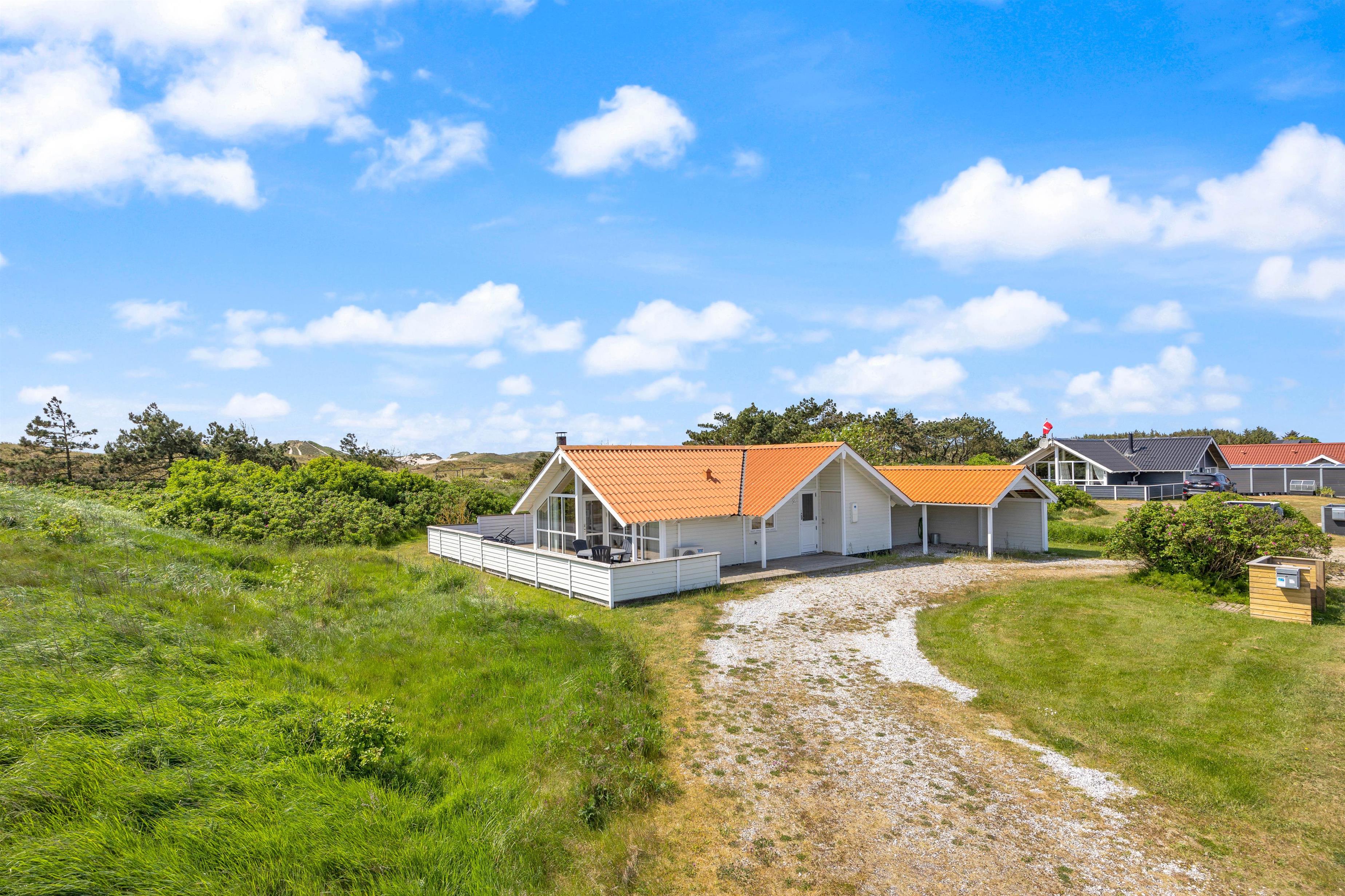 Sommerhuset er indrettet med tre soverum og plads til 7 overnattende gæster. Feriehuset er i en fin standard med gode, komfortable møbler og med både spabad og sauna. Til feriehuset hører desuden en carport. Et perfekt valg for dig, der ønsker et godt og veludstyret sommerhus i flotte omgivelser.
