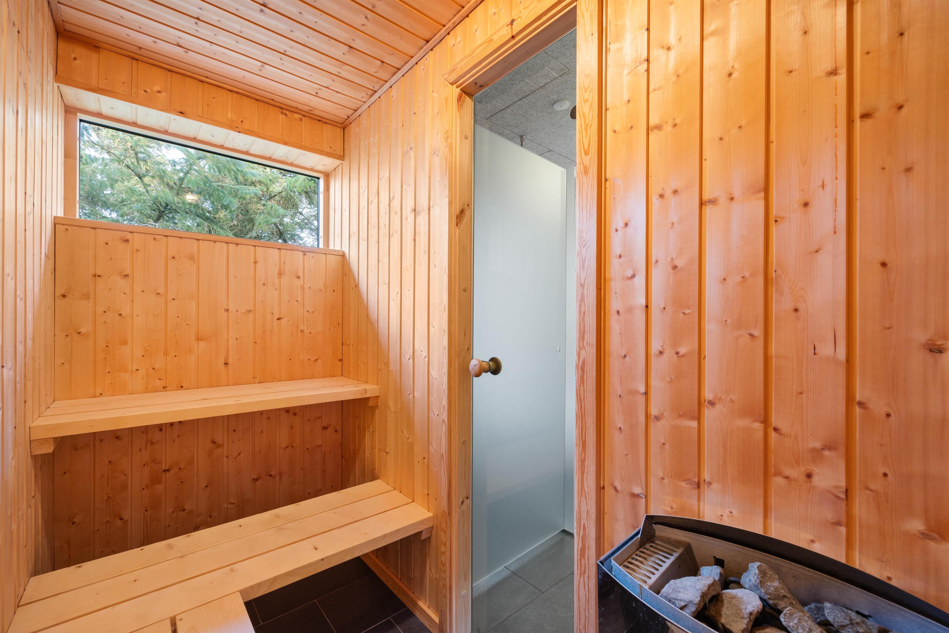 I et af sommerhusets 2 badeværelser finder I en skøn sauna, som indbyder til total afslapning. Her kan I blive varmet godt igennem efter en lang gåtur på stranden i den friske havluft eller nyde stilheden efter børnene er blevet lagt i seng, godt trætte efter dagens mange nye indtryk.