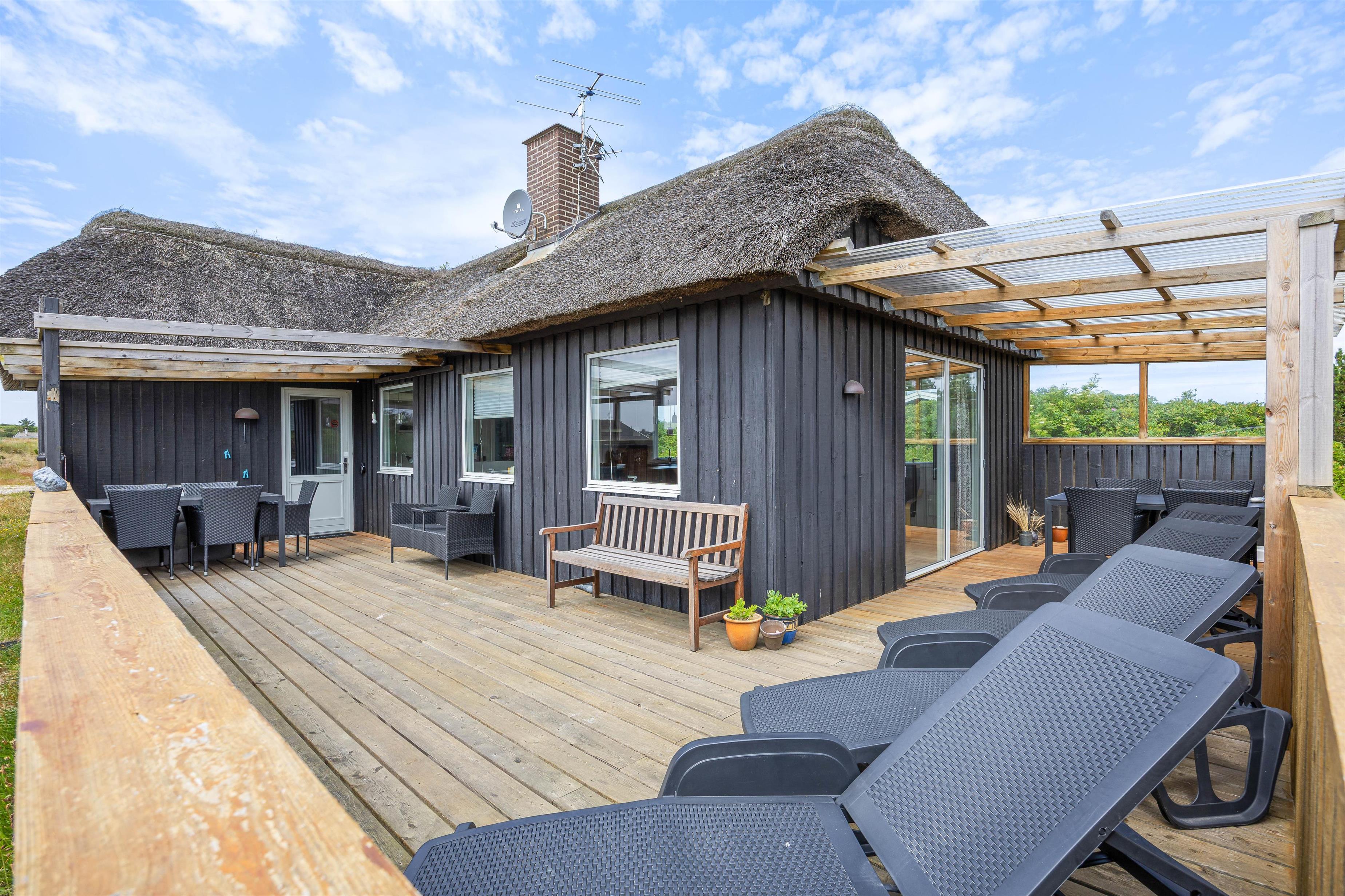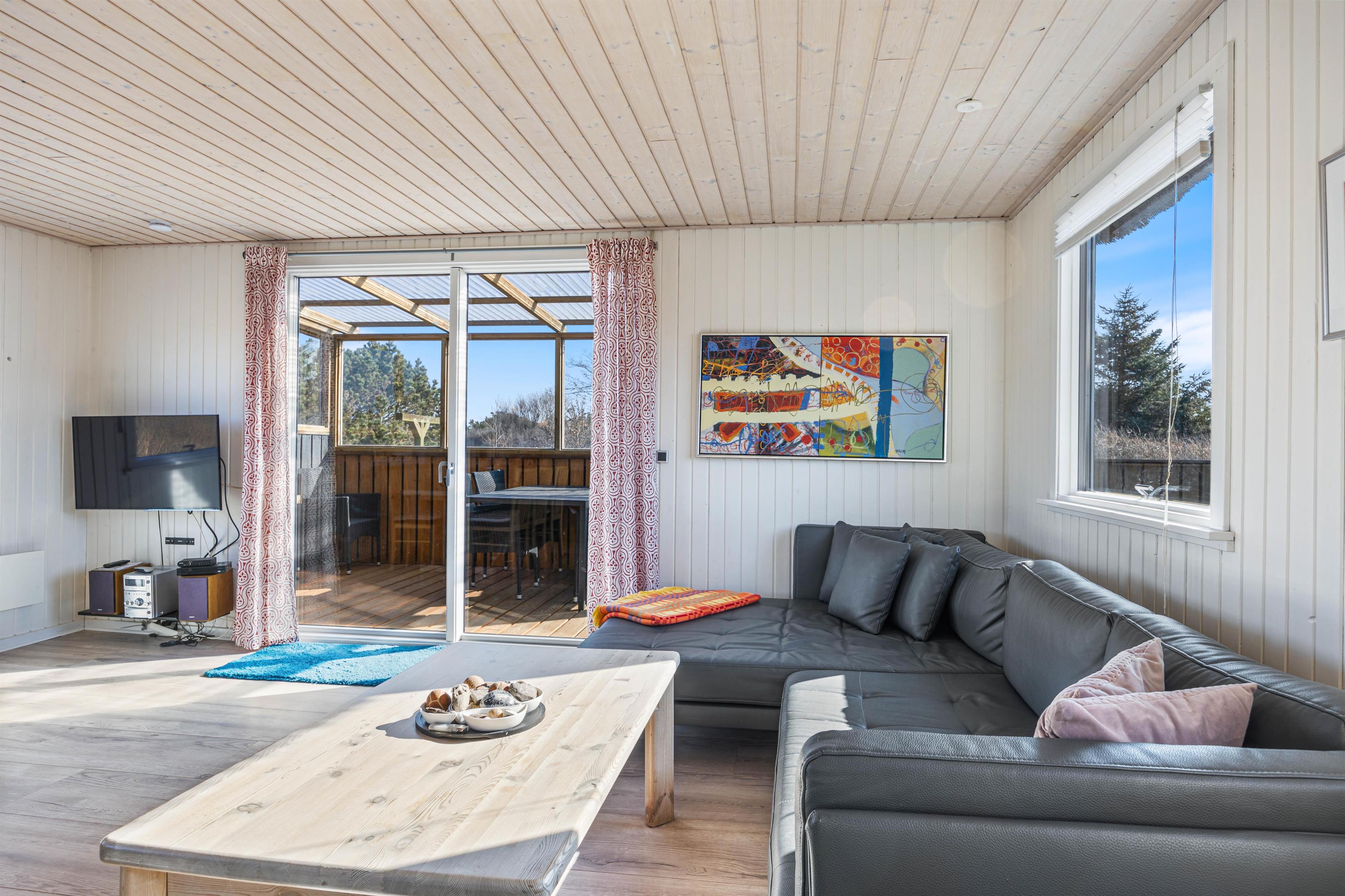 Med kun 400 meter til Vesterhavet kan I her holde en dejlig par-ferie, eventuelt sammen med et par venner i Haurvig. På den delvist overdækkede terrasse, er der mange kroge, hvor man kan finde læ og nyde lyset og landskabet. Hunden er også velkommen, og sammen kan I slappe af med gåture til stranden og langs Vesterhavet.