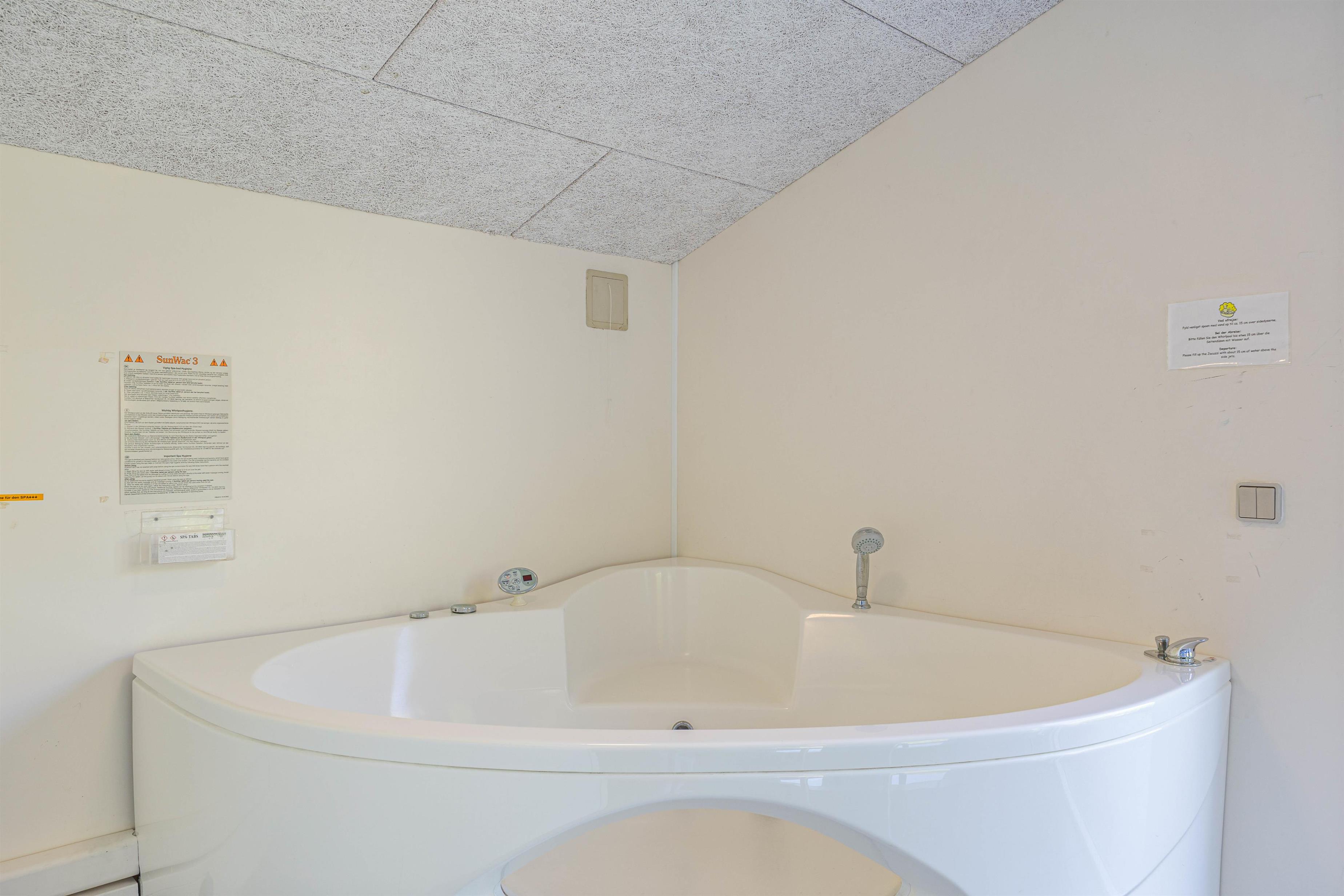 Feriehuset opvarmes vha. en energibesparende varmepumpe, og på ene badeværelse har I vaskemaskine og tørretumbler til rådighed.
