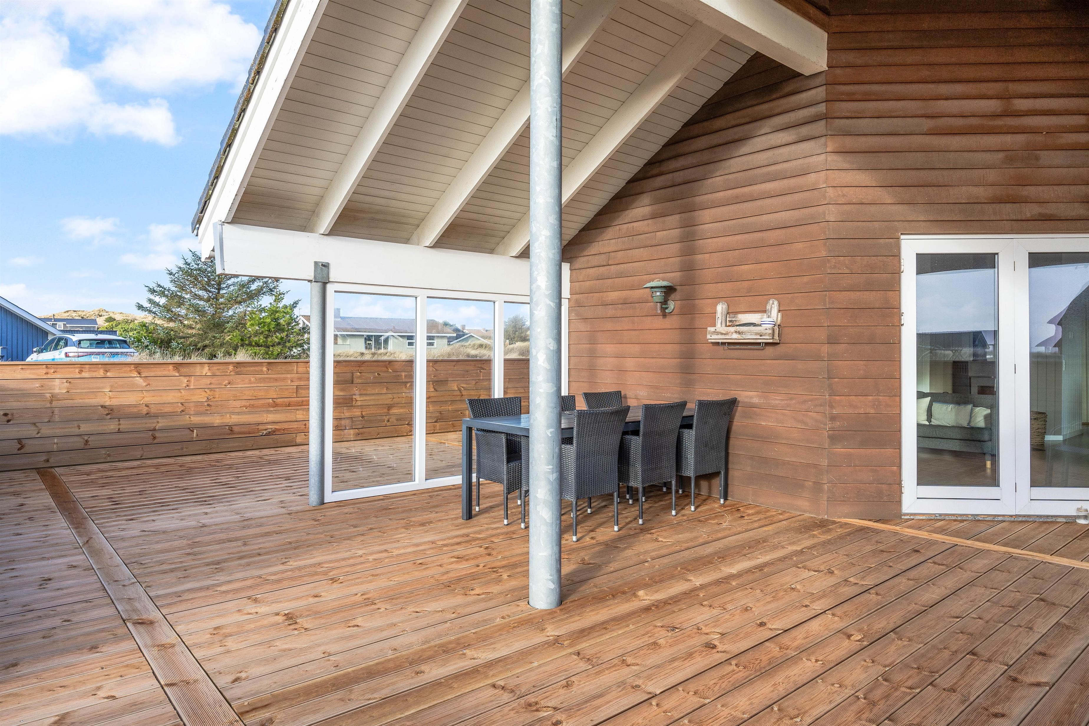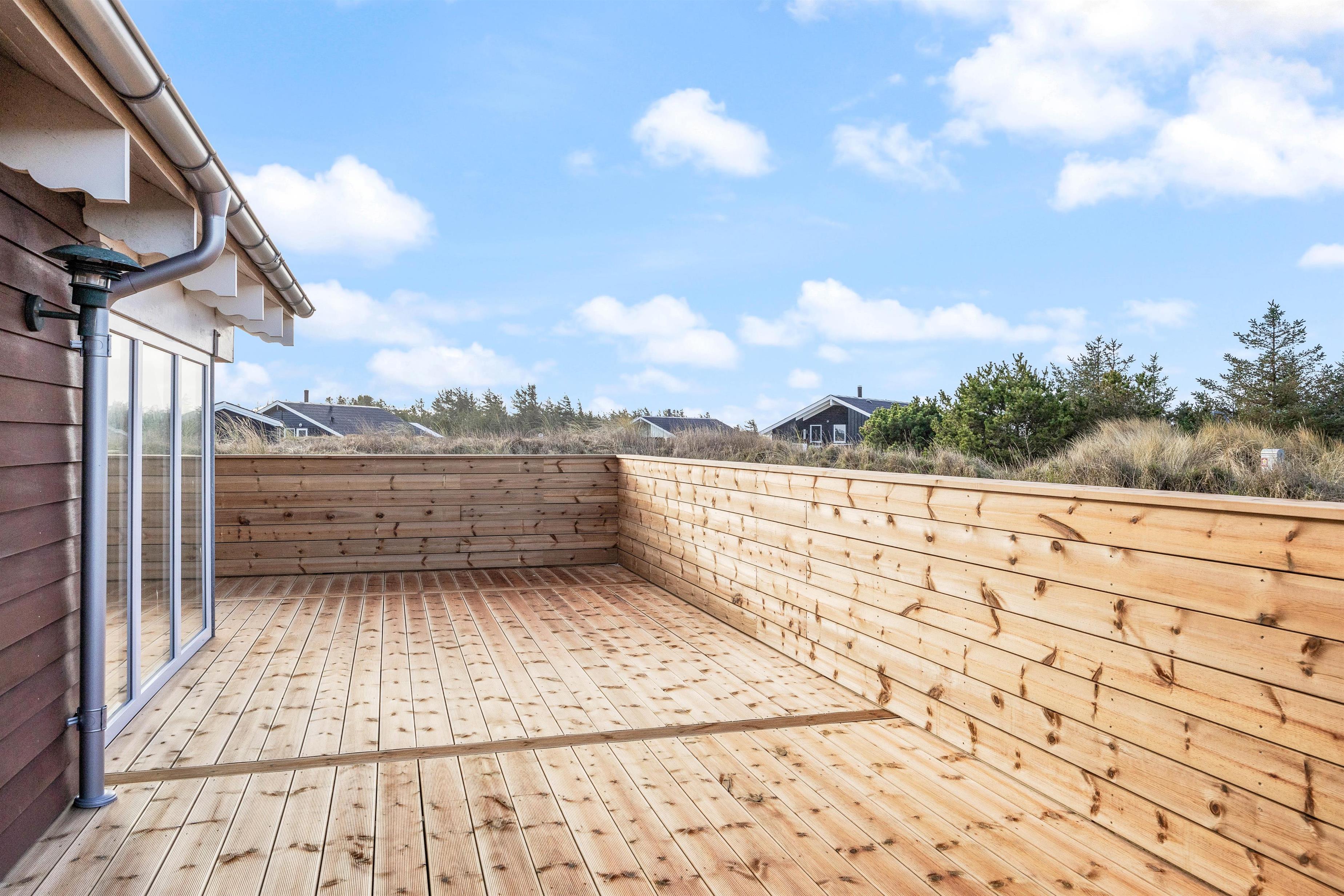 På en varm sommerdag indbyder udearealet til masser af afslapning. Lig jer godt til rette med en god bog på liggestolene, mens børnene leger ved gyngestativet. Terrassen på 110 m2 er lukket og delvist overdækket, så I kan sidde i ly for en lille byge, og hunden kan få lov at gå frit rundt.