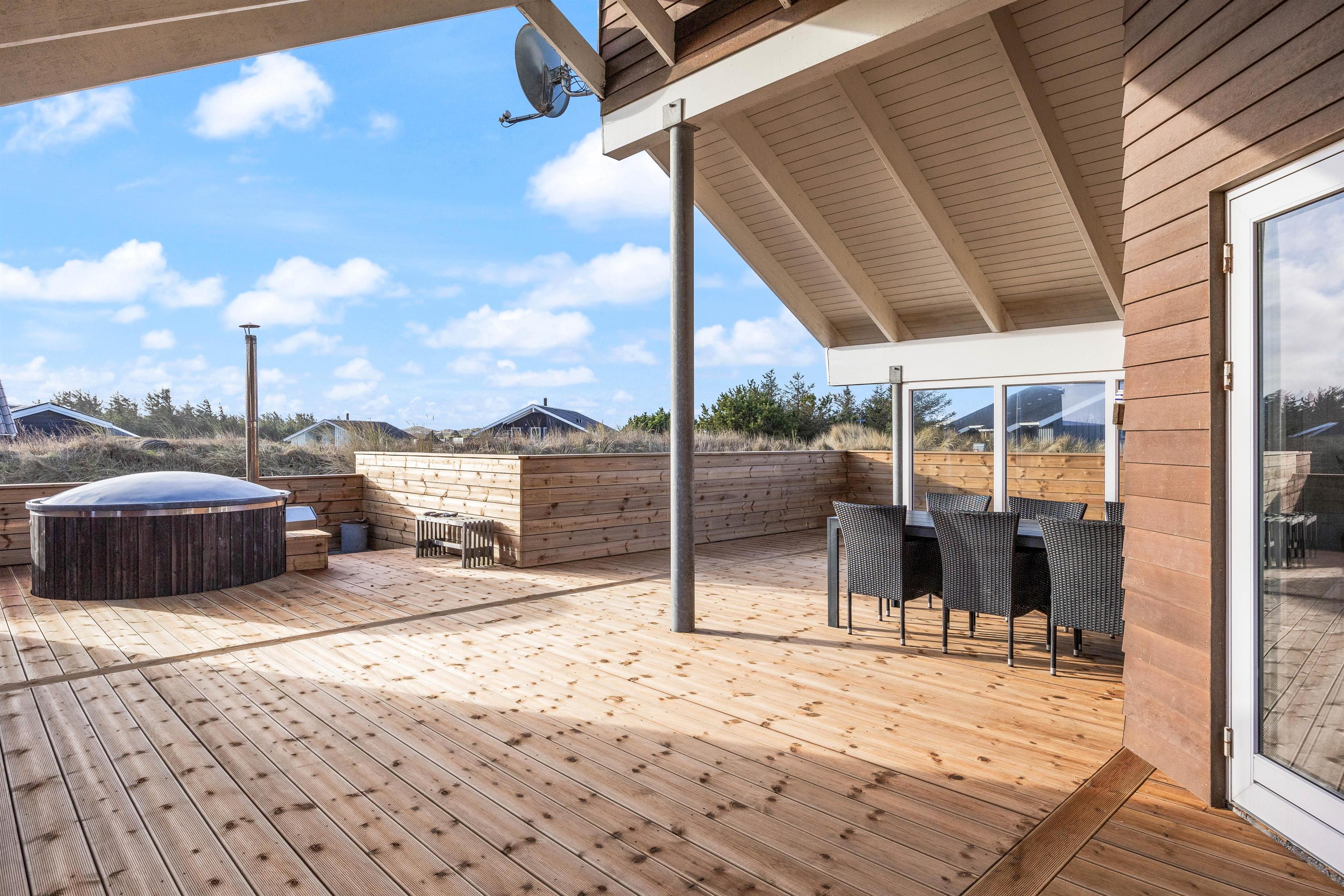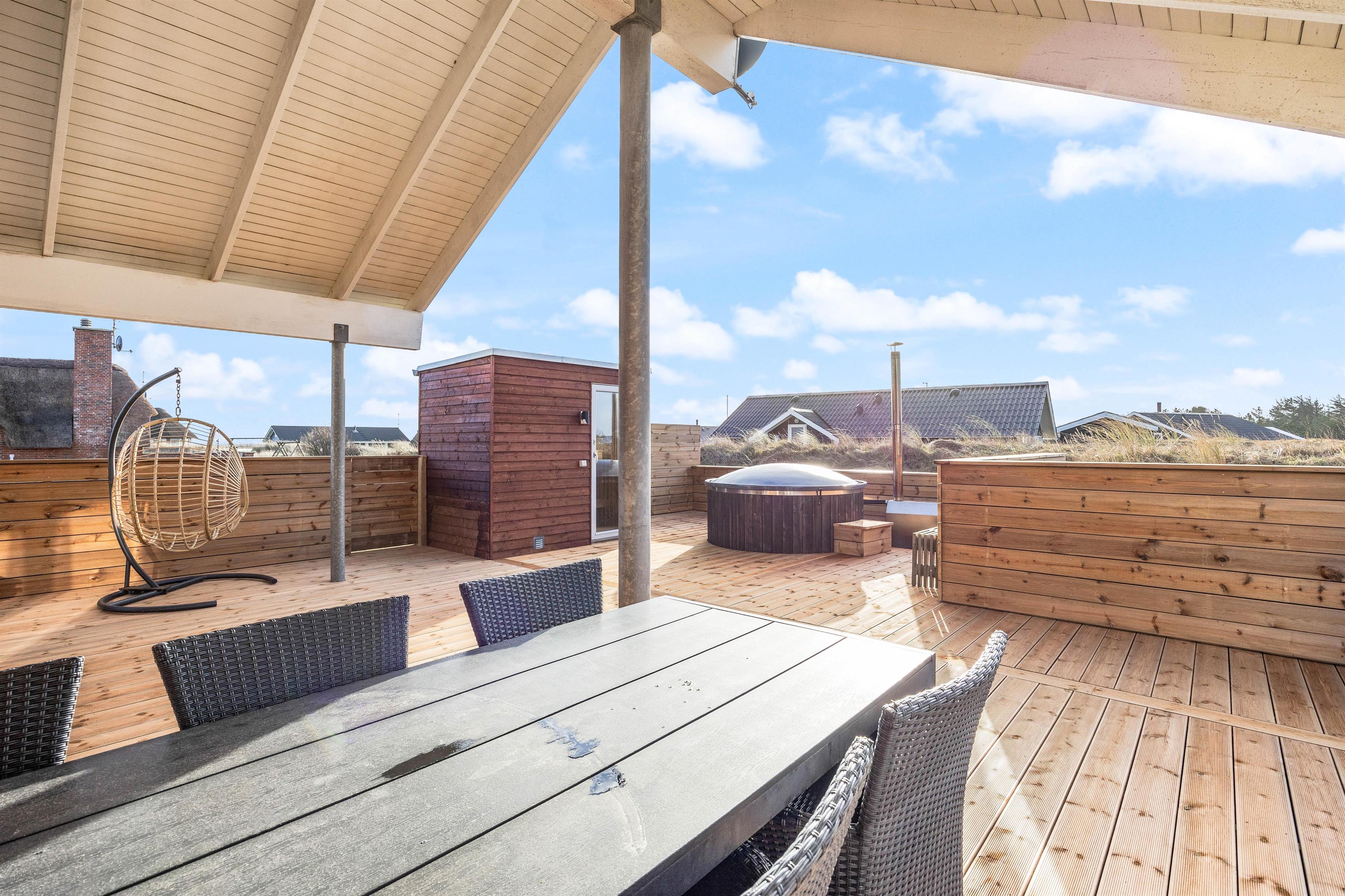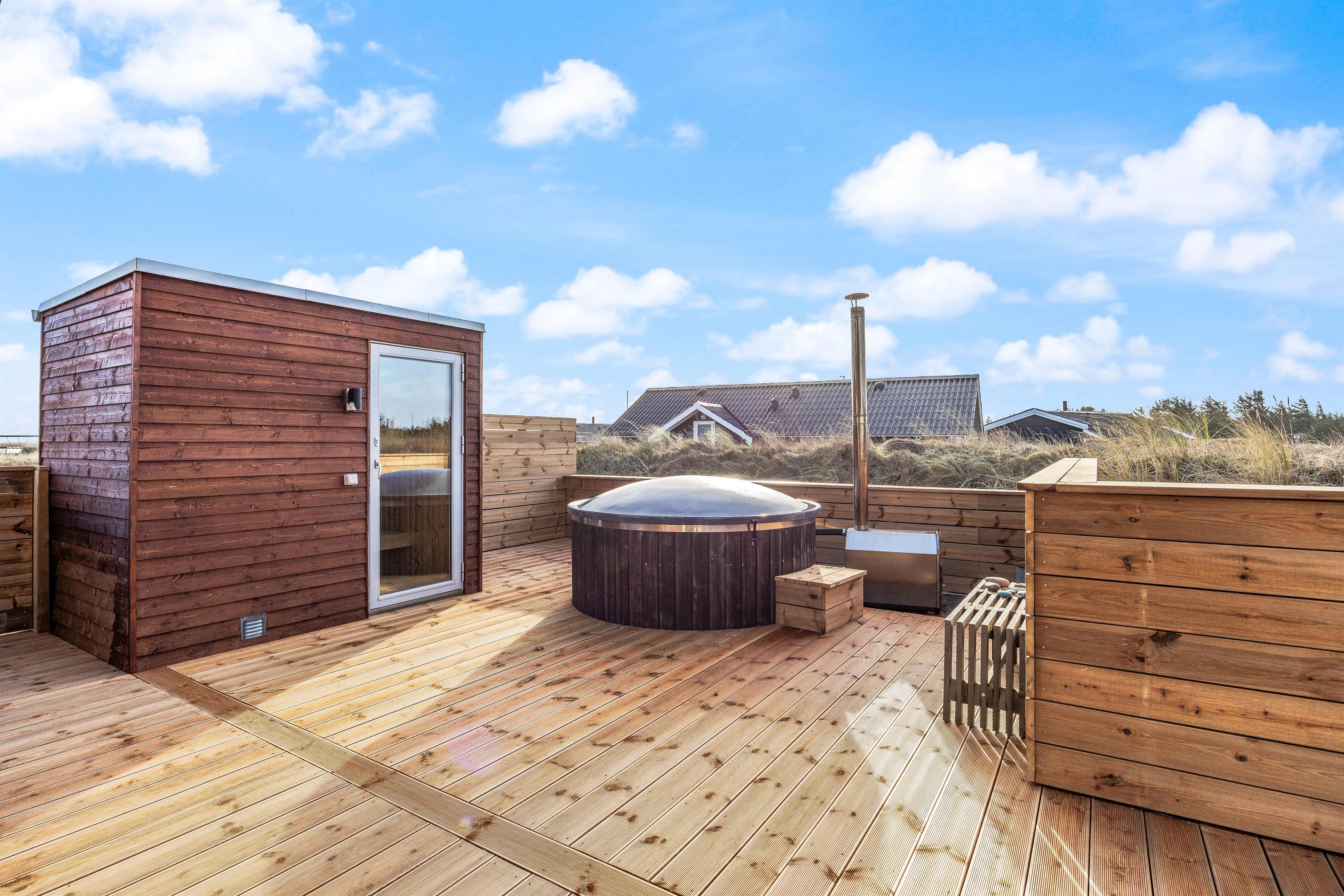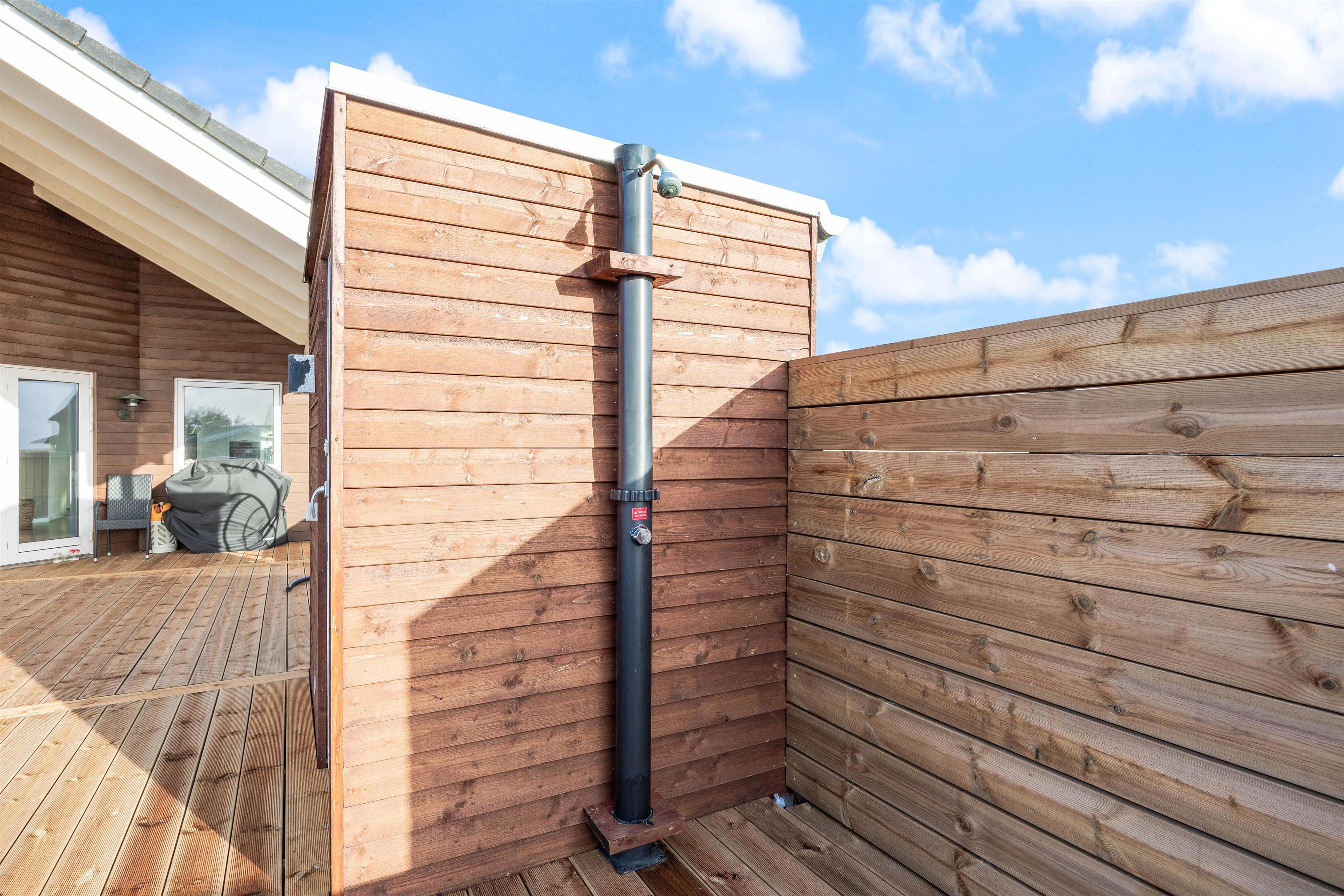 Har I været en tur på stranden kan I skylle jer under udebruseren, inden I hopper i det varme vildmarksbad efterfulgt af en tur i udesaunaen. Her er altså rig mulighed for afslapning og velvære. Udebruseren kan benyttes fra april til november.