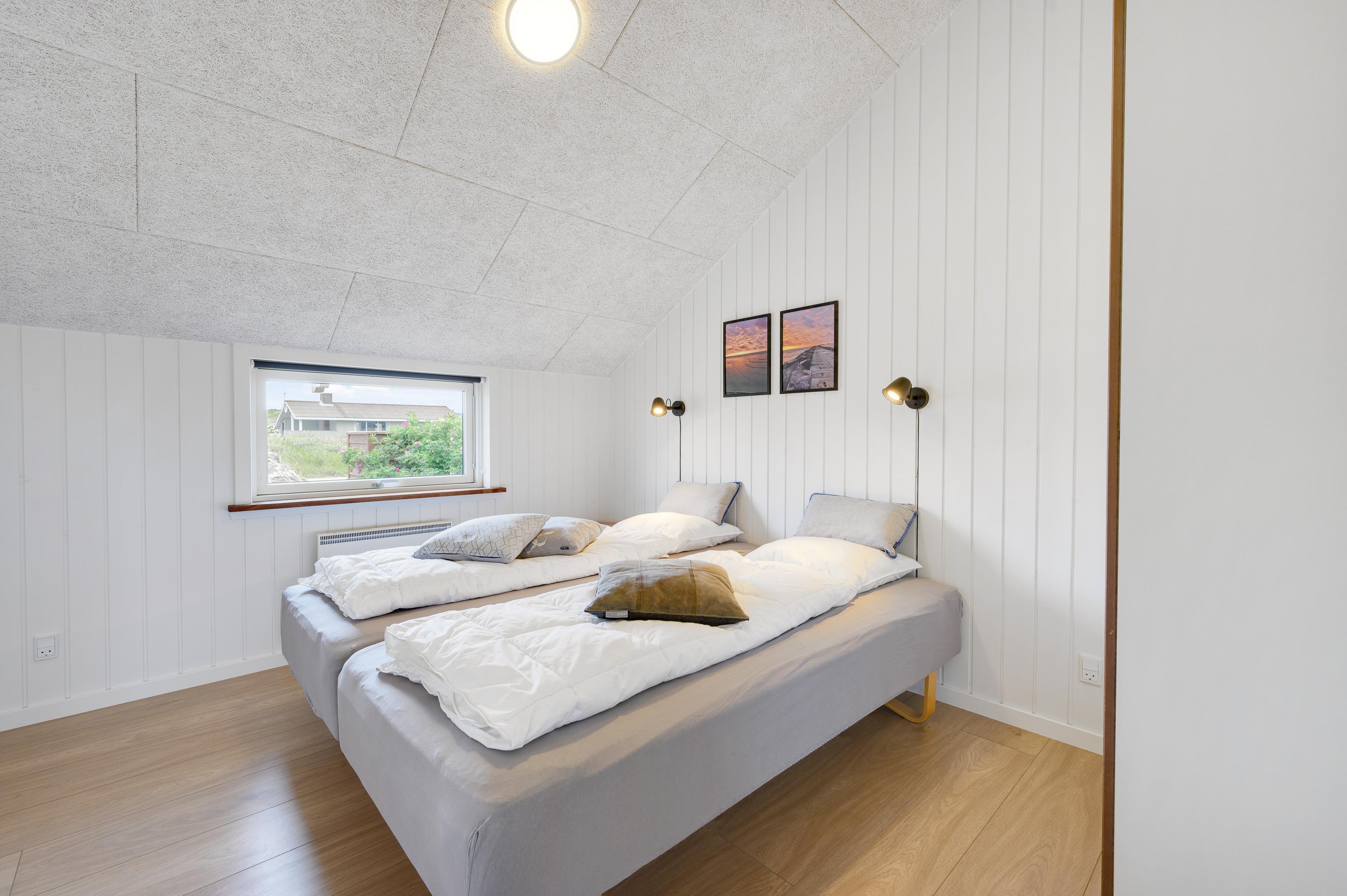 Til en god nats søvn venter jer 3 soveværelser, hvoraf der er 2 med dobbeltsenge. Det sidste soveværelse er indrettet med 2 komfortable enkeltsenge. De sidste sovepladser finder I på den hyggelige hems, som især er et hit blandt børnene.