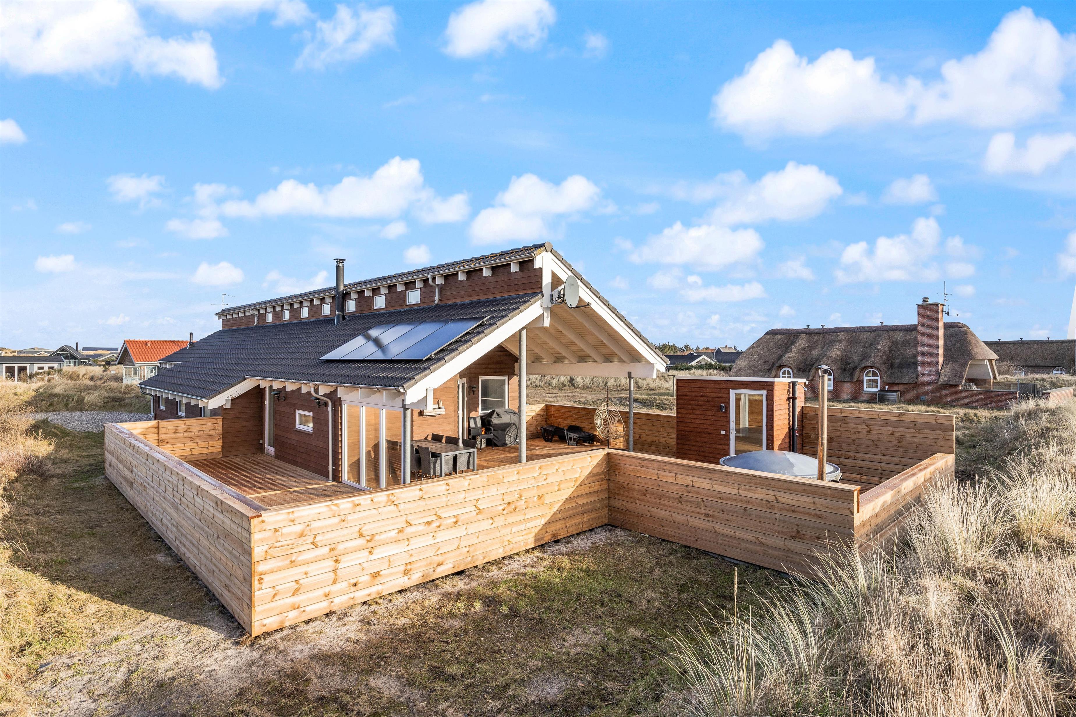 Er I på udkig efter et meget energivenligt sommerhus med solceller hvor der er plads til både sjov og leg samt afslapning og velvære? Så er dette sommerhus et oplagt valg til jeres næste familieferie. Sommerhuset har plads til 8 personer, som kan nyde en skøn ferie i sommerhuset, der både har spabad, udesauna, vildmarksbad og aktivitetsrum med billard. Op til 2 hunde er desuden hjerteligt velkomne i feriehuset på Baunebjergvej 6.