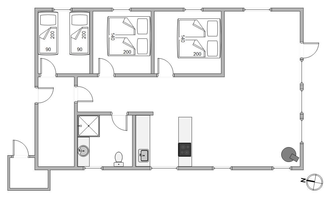 I sommerhuset er der plads til 6 personer i 3 soveværelser, der alle er udstyret med gode boksmadrasser.