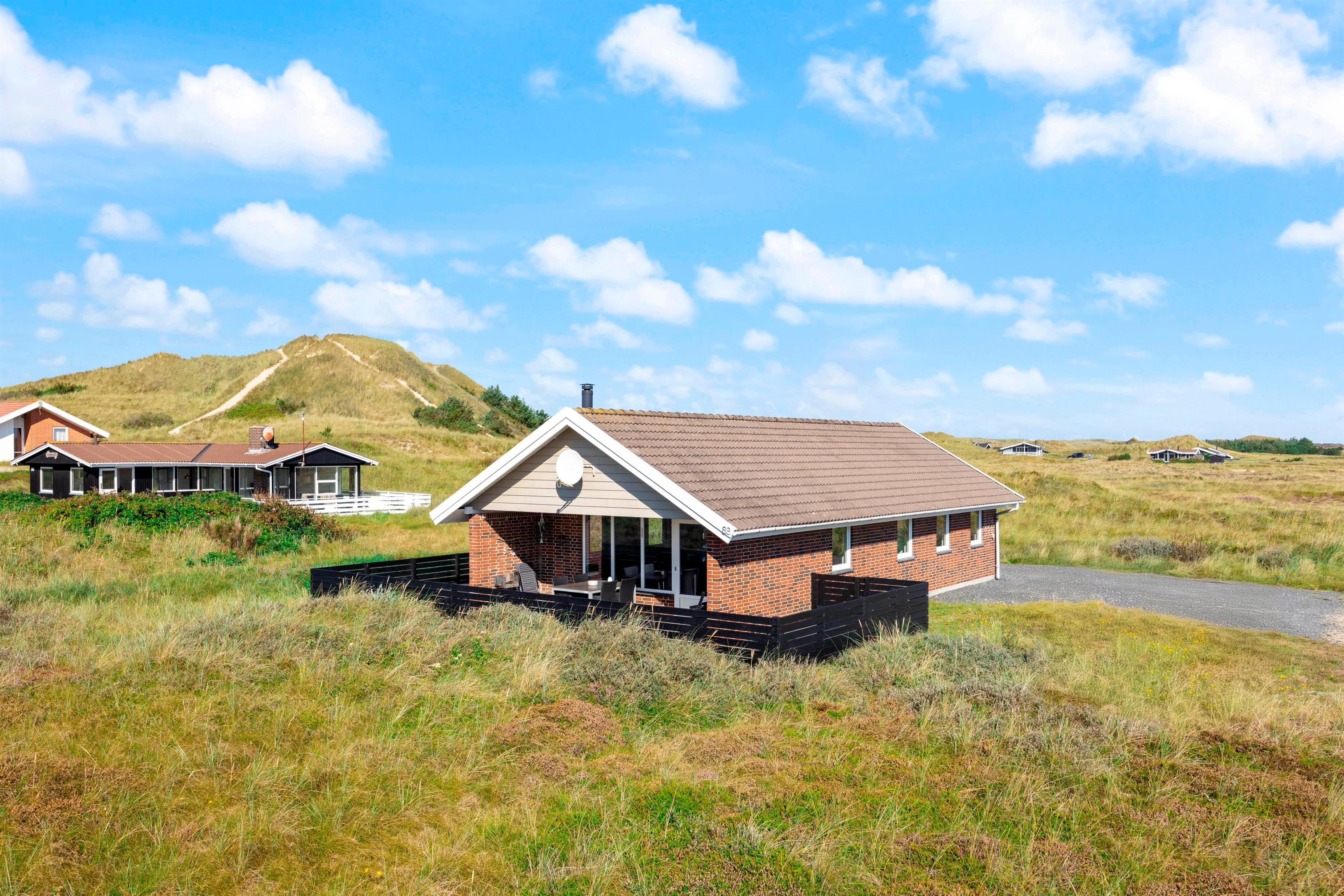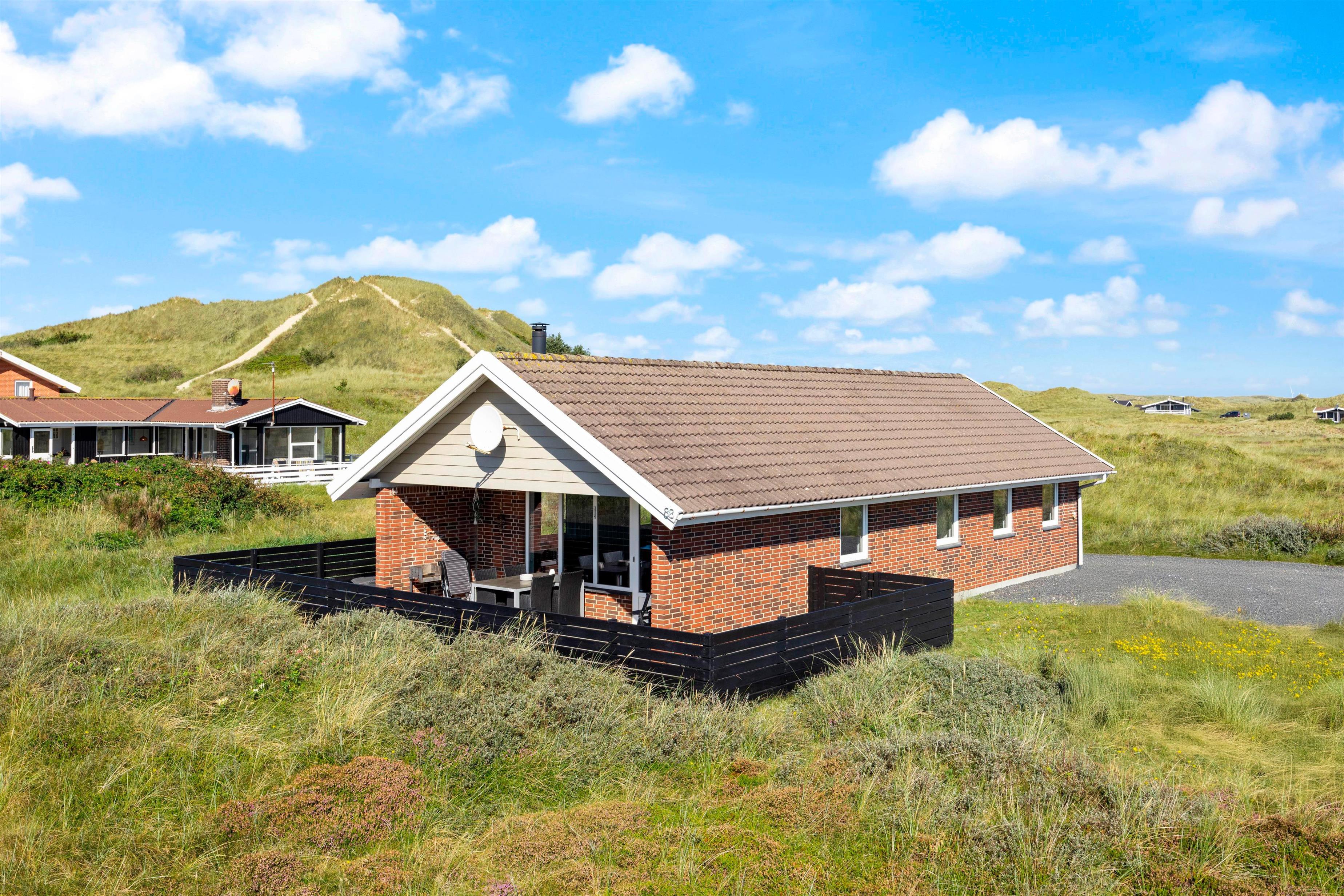 På en flot og rolig naturgrund ligger dette hyggelige feriehus. Sommerhuset har en skøn beliggenhed i et attraktivt og naturskønt område lige ud til et fredet klitområde. Feriehuset er derfor ideelt til en familieferie eller parferie, hvor der bare skal slappes af med gå- og cykelture i den smukke natur.