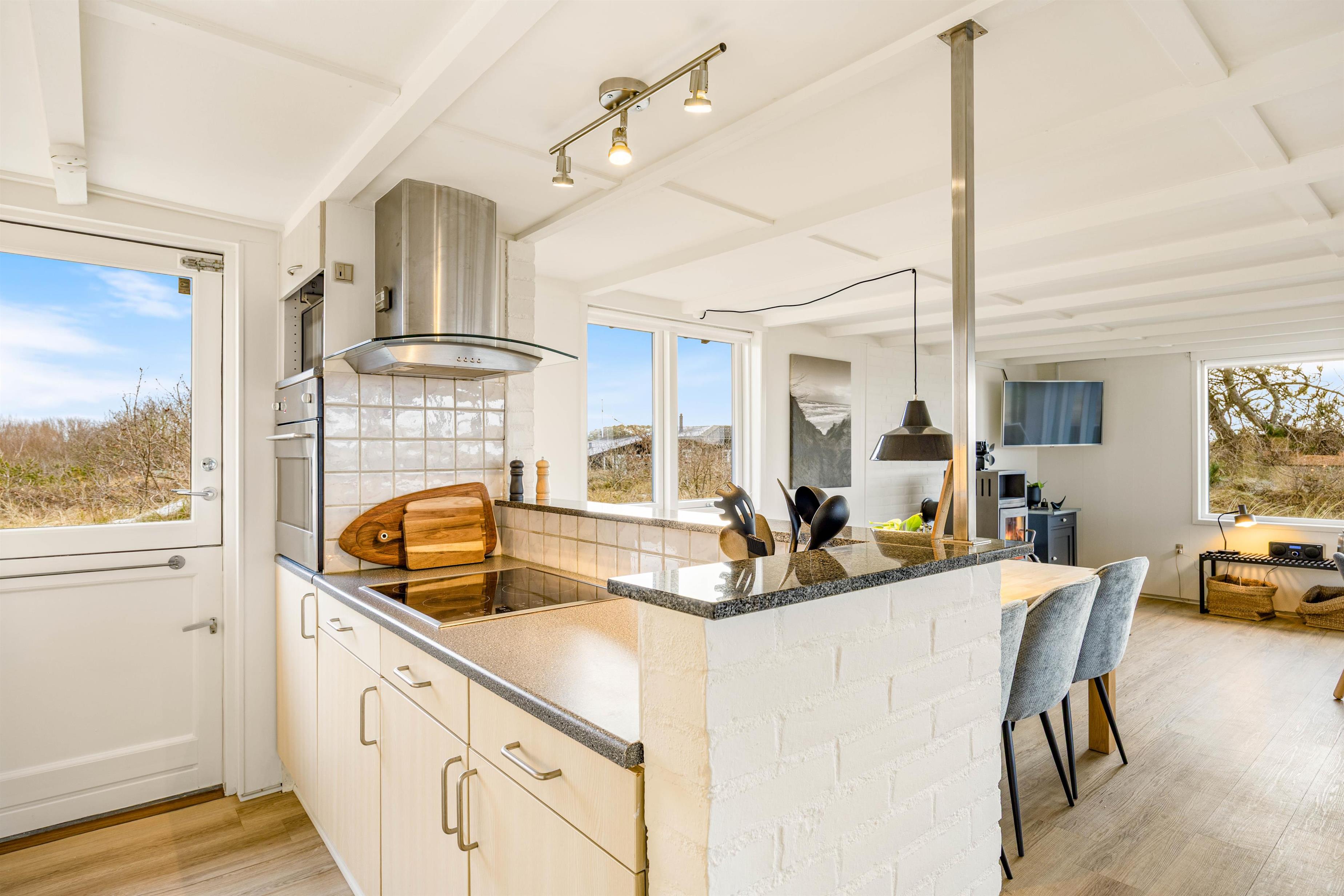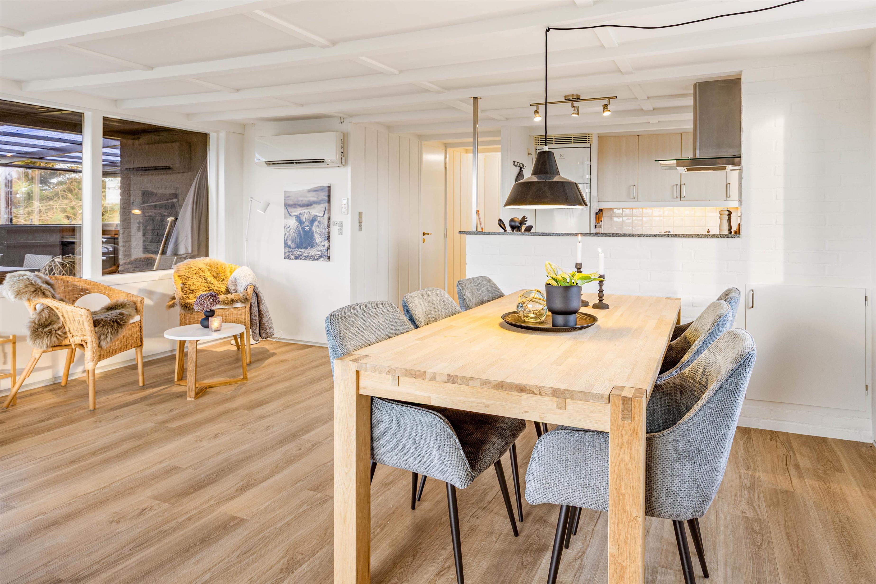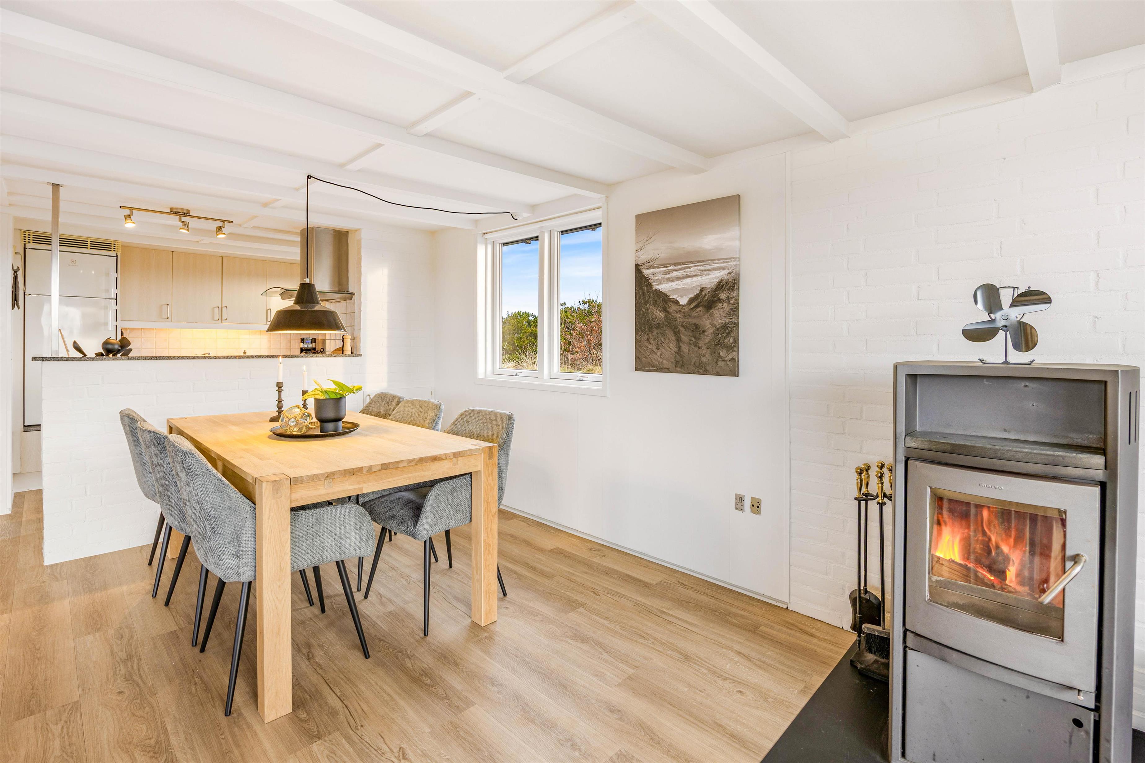 Sommerhuset på 85 m² er indrettet med plads til op til 6 personer og har 3 hyggelige soveværelser med komfortable dobbeltsenge. Den lyse stue med store vinduer byder på masser af naturligt lys og skaber en behagelig atmosfære, hvor I kan samles til hyggelige stunder. Feriehuset er udstyret med alt, hvad I behøver for en bekymringsfri ferie. Det åbne køkken har opvaskemaskine, så I kan bruge mere tid på hinanden og mindre på opvasken. Vaskemaskinen gør det nemt at rejse let, uden at bekymre jer om tøjvask under opholdet. Badeværelset er renoveret i 2025 og er med gulvvarme og brusekabine samt smagfuld indretning bidrager til, at ferien bliver både komfortabel og afslappende. Feriehuset byder på både funktionalitet og hygge, så hele familien kan nyde dagene uden stress.