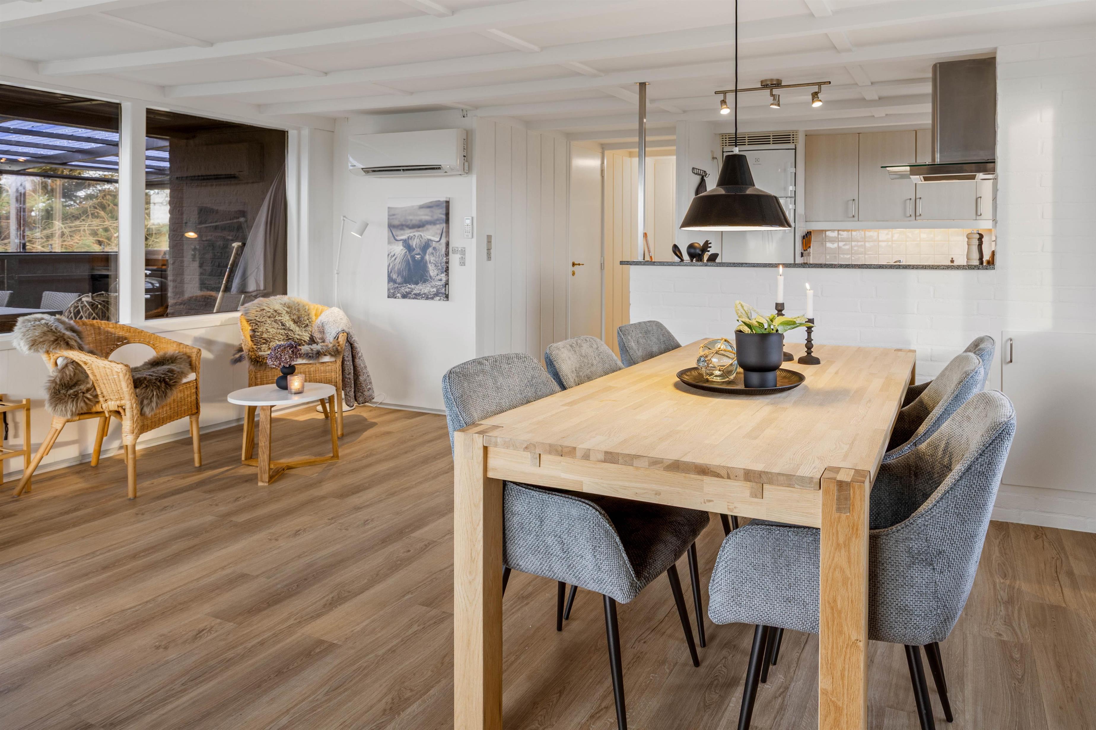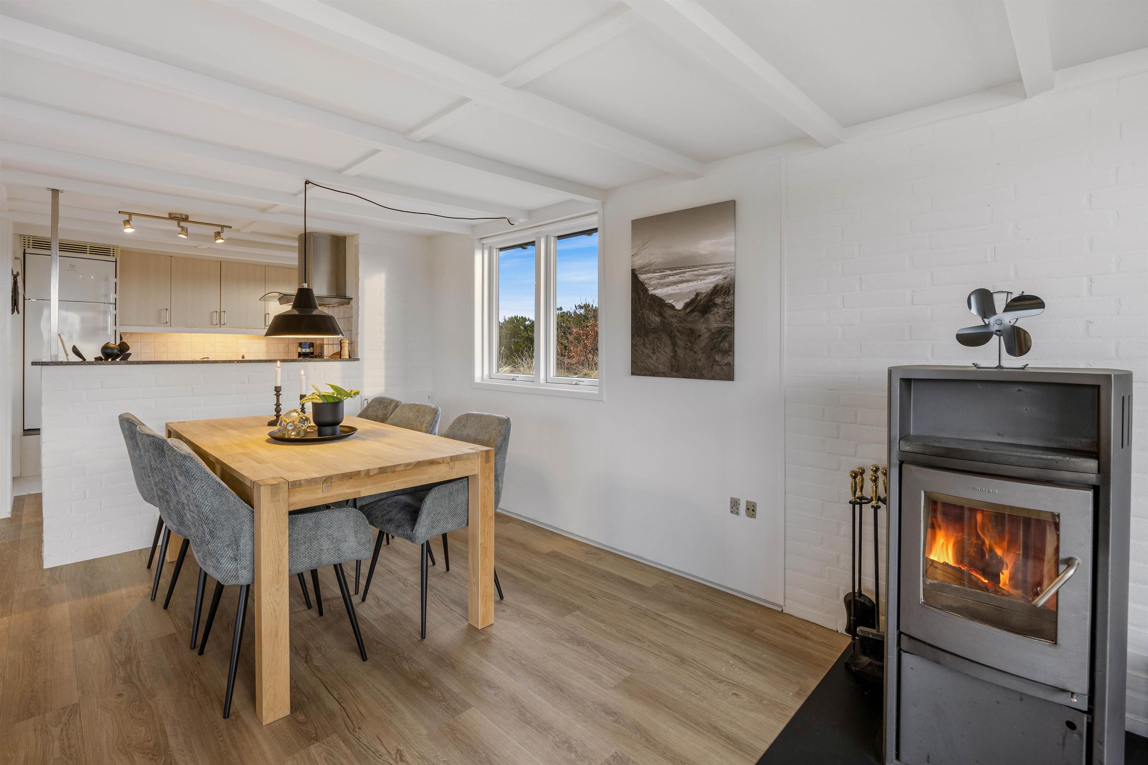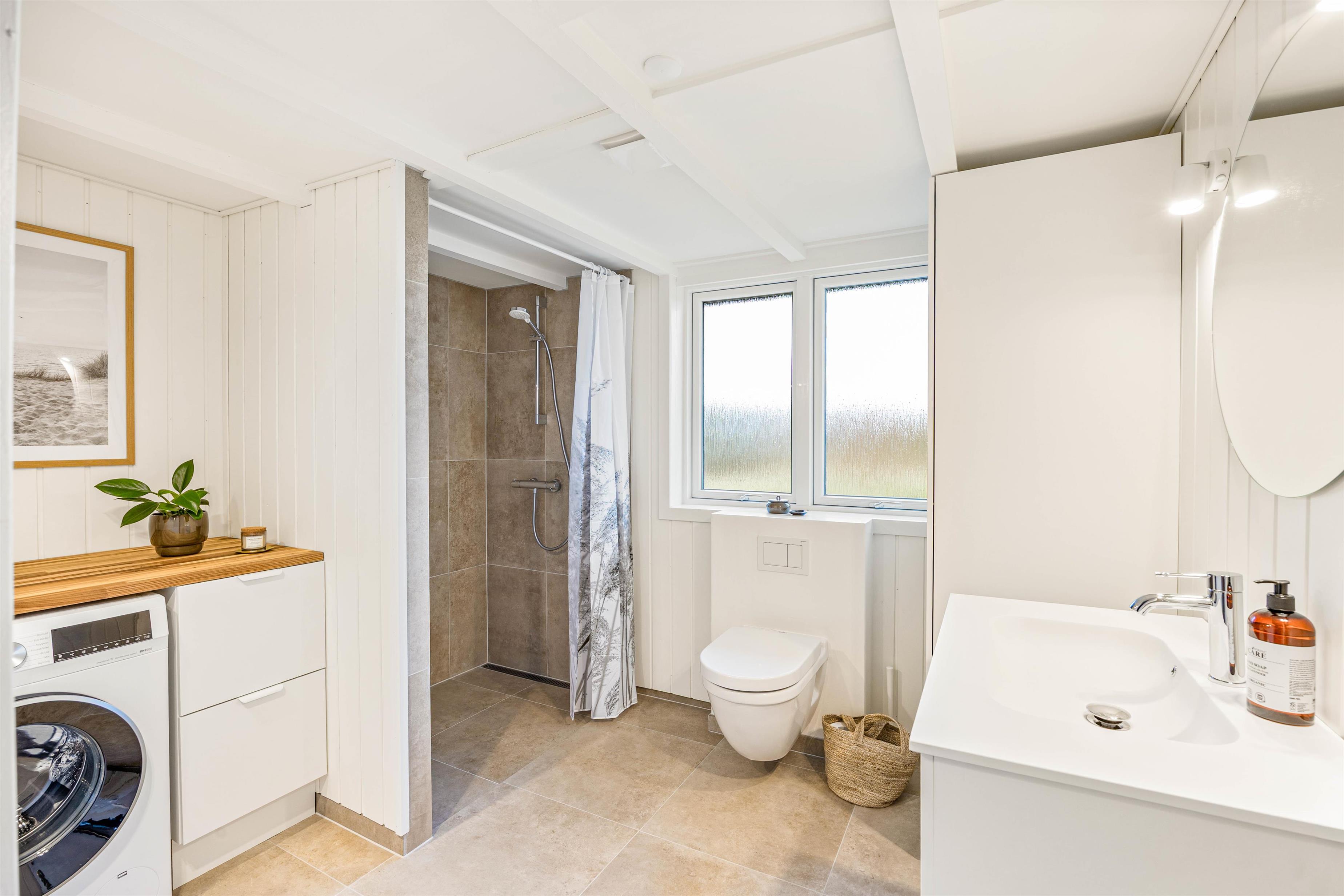 Feriehuset er udstyret med alt, hvad I behøver for en bekymringsfri ferie. Det åbne køkken har opvaskemaskine, så I kan bruge mere tid på hinanden og mindre på opvasken. Vaskemaskinen gør det nemt at rejse let, uden at bekymre jer om tøjvask under opholdet. Badeværelset er renoveret i 2025 og bidrager med gulvvarme og brusekabine samt smagfuld indretning til, at ferien bliver både komfortabel og afslappende. Feriehuset byder på både funktionalitet og hygge, så hele familien kan nyde dagene uden stress.